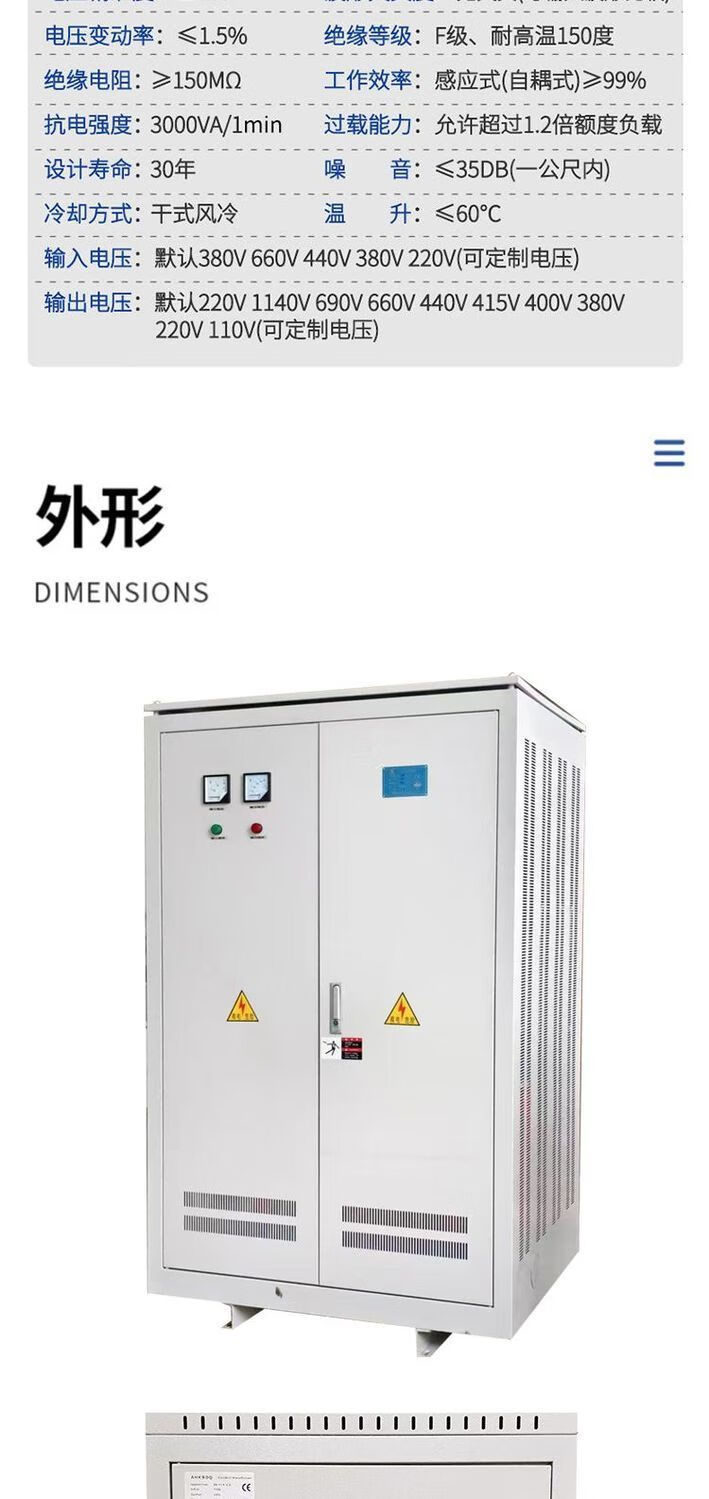 660V480V440 to 380V to 220V200 three-phase dry isolation transformer 50KVA step-up 415V690 three-phase transformer SG-10KVA with chassis