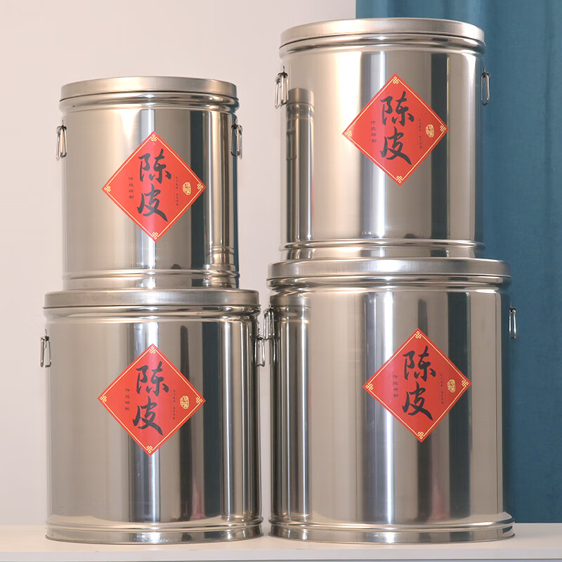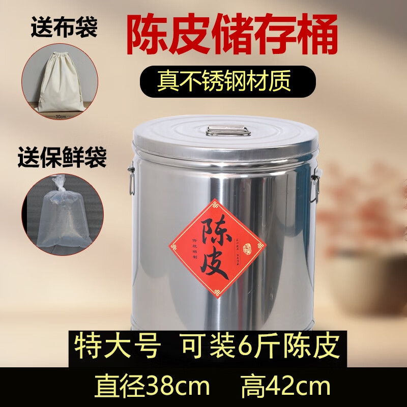 Mengjin tangerine peel storage tank, stainless steel sealed barrel, rice tea moisture-proof household large thickened storage special delivery bag, width 38cm, height 42cm, about 6Jin Jin is equal to 0.5kg tangerine peel bucket, order delivery cloth bag + fresh-keeping transparent bag + tangerine peel sticker