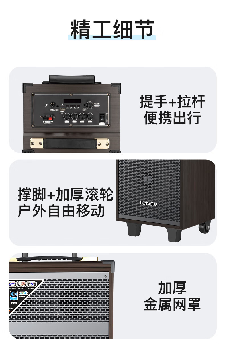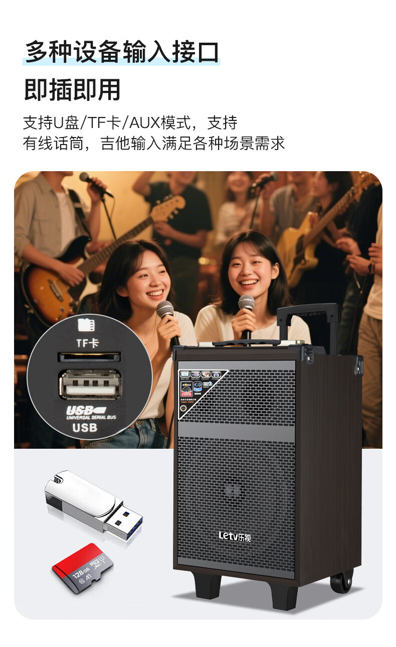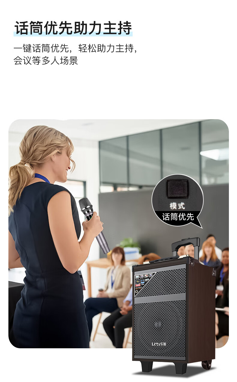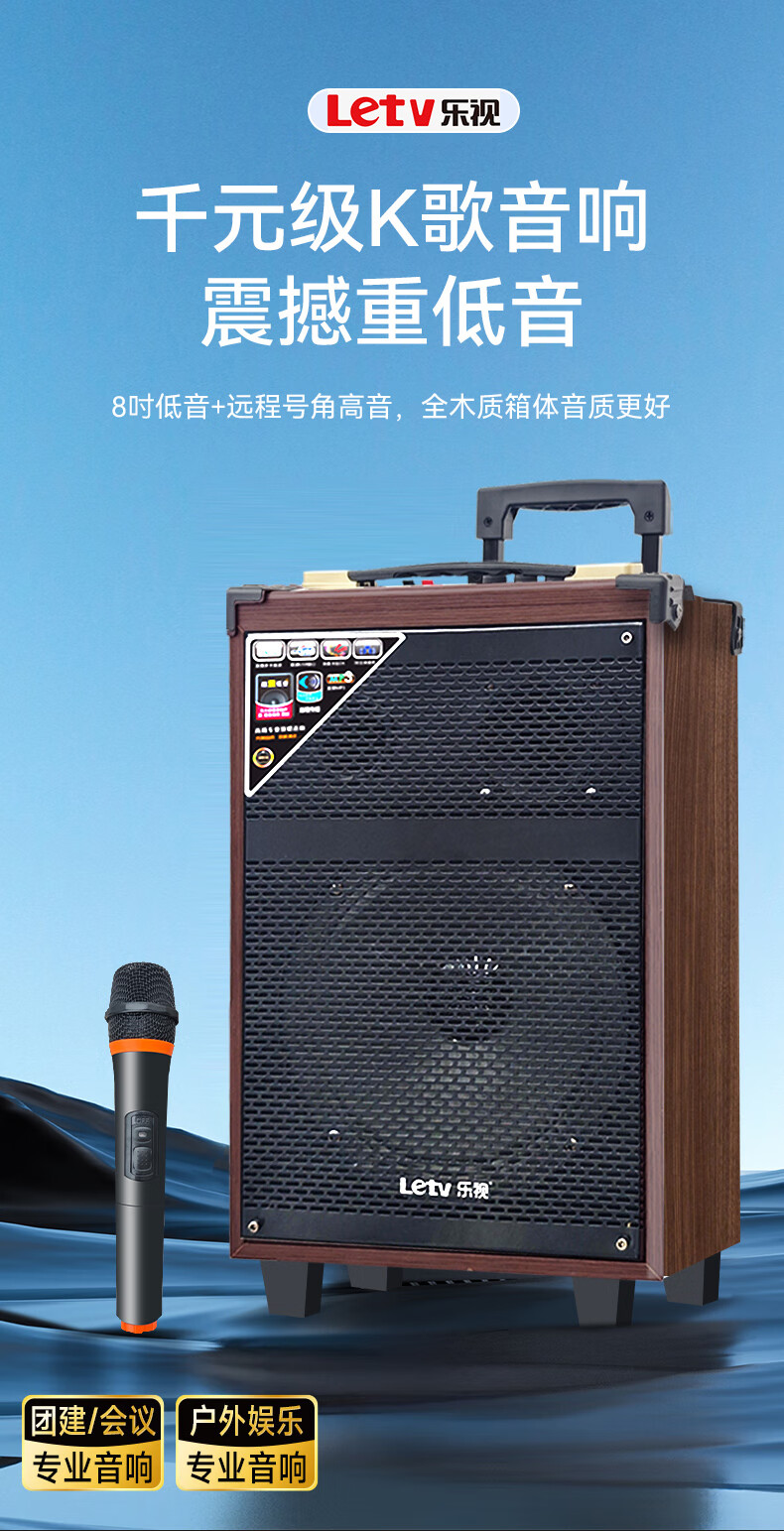 LeTV Square Dance Speaker 15-inch Subwoofer Mobile Outdoor Karaoke Trolley Speaker Wireless Microphone Stall Speaker Electric Acoustic Guitar Folk Instrument Speaker High Power 8-inch Subwoofer Single Wireless Microphone