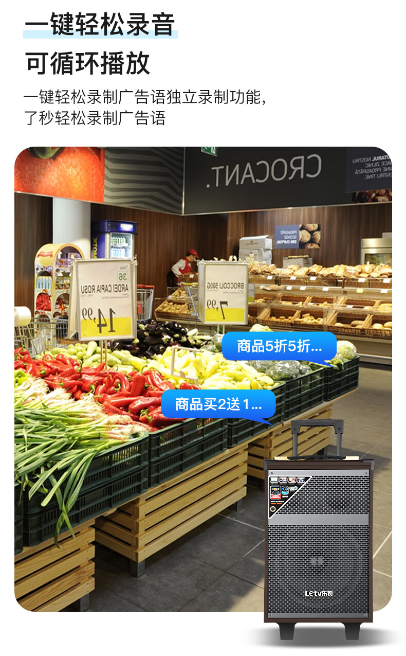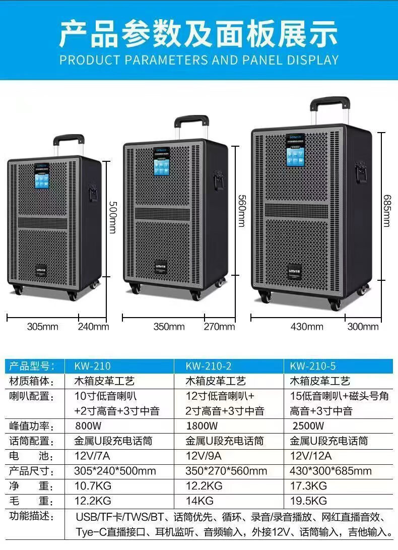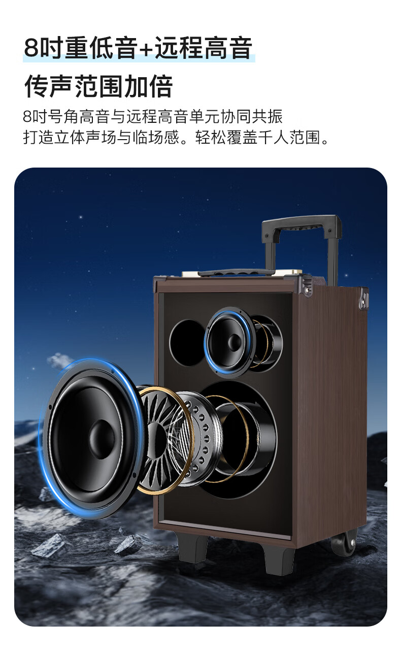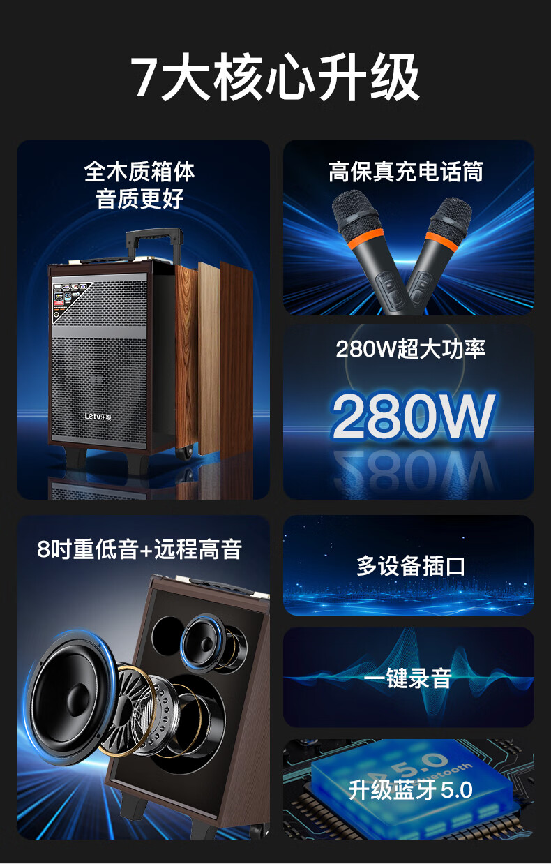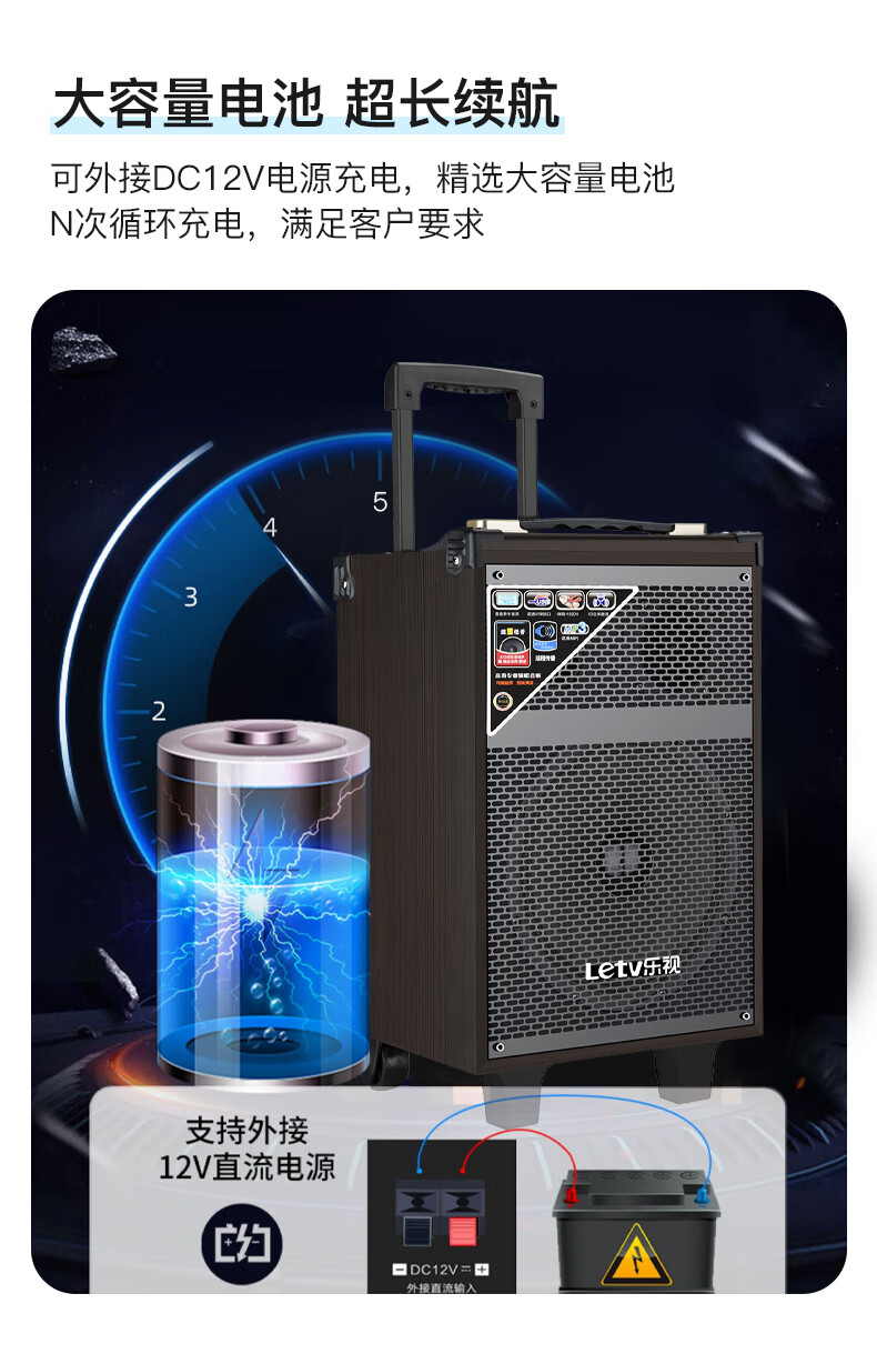 LeTV Square Dance Speaker 15-inch Subwoofer Mobile Outdoor Karaoke Trolley Speaker Wireless Microphone Stall Speaker Electric Acoustic Guitar Folk Instrument Speaker High Power 8-inch Subwoofer Single Wireless Microphone