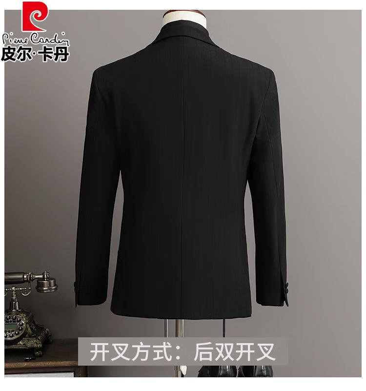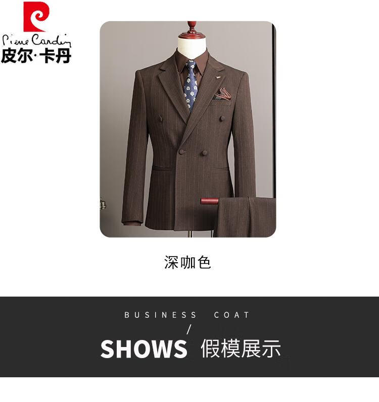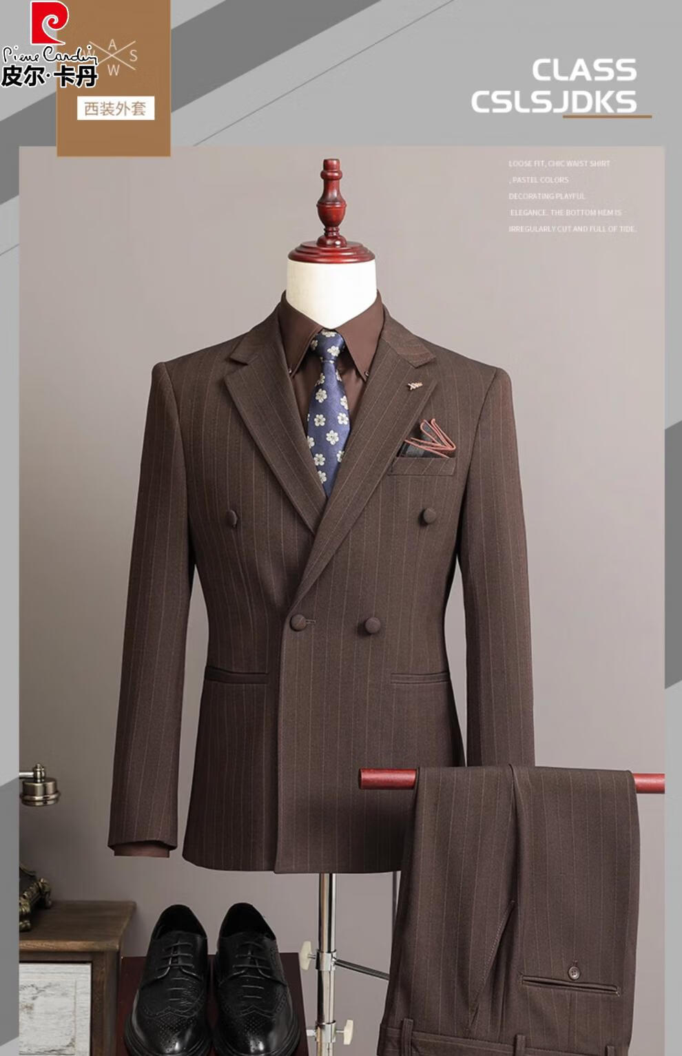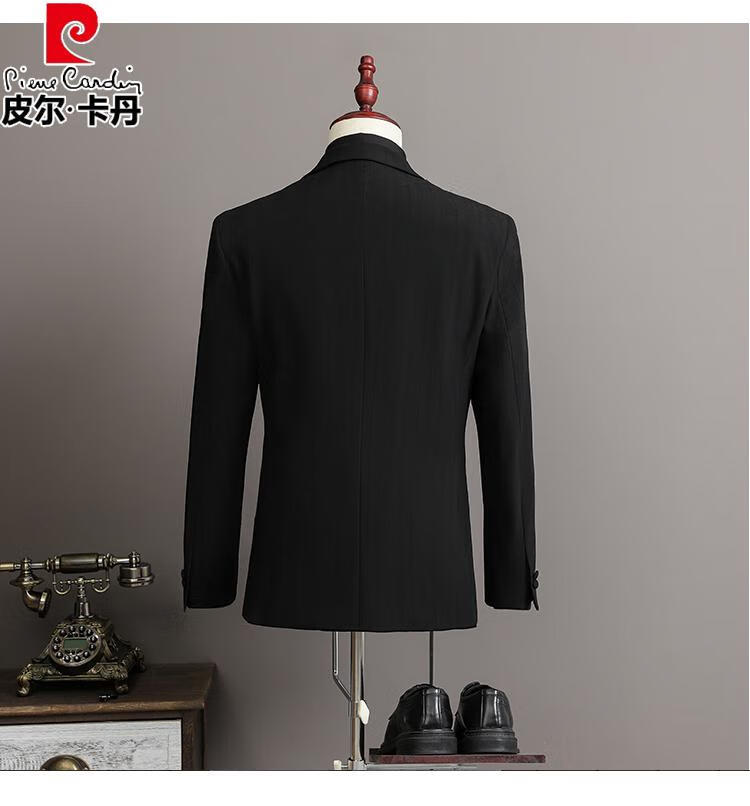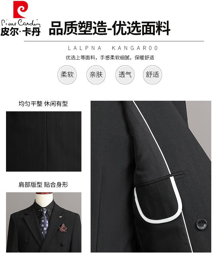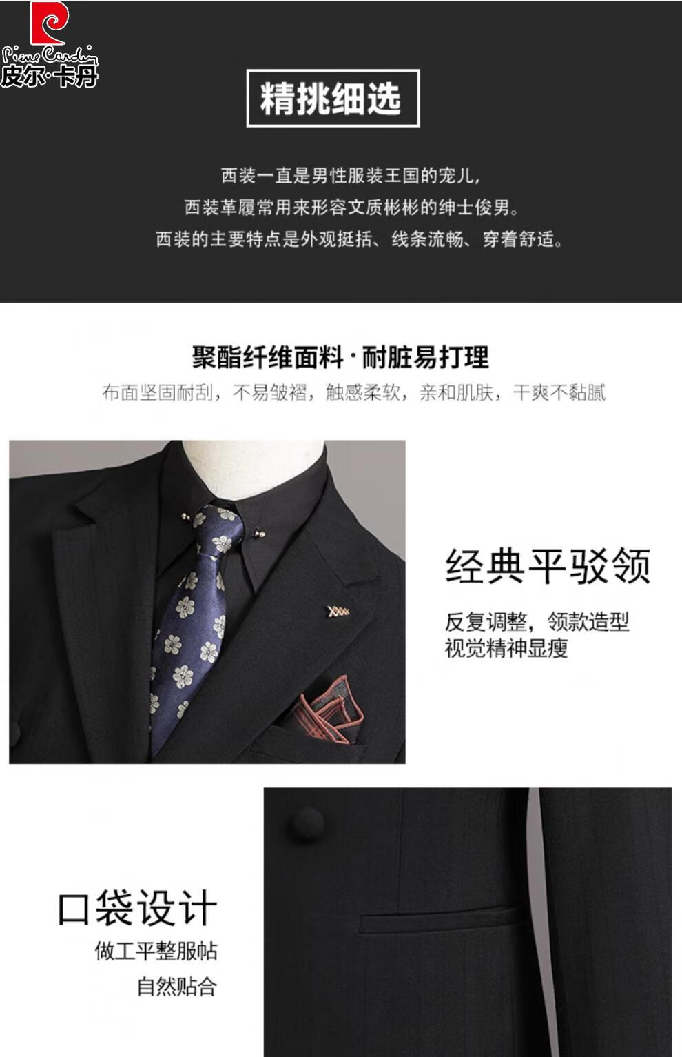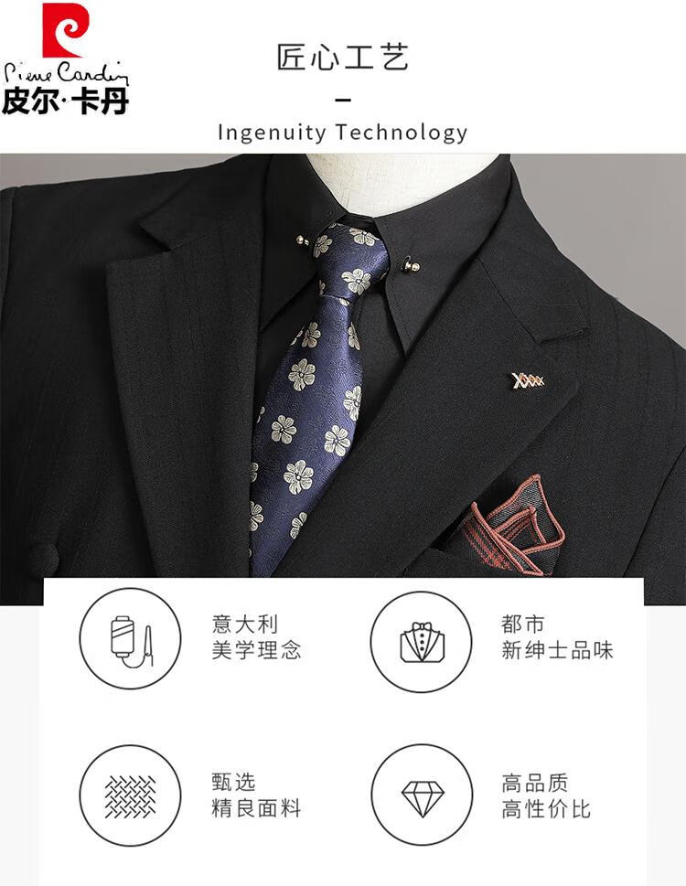 Pierre Cardin double-breasted striped suit suit men's three-piece high-end business casual formal groom's wedding dress navy blue three-piece suit L 50 105-120Jin Jin equals 0.5 kg to wear
