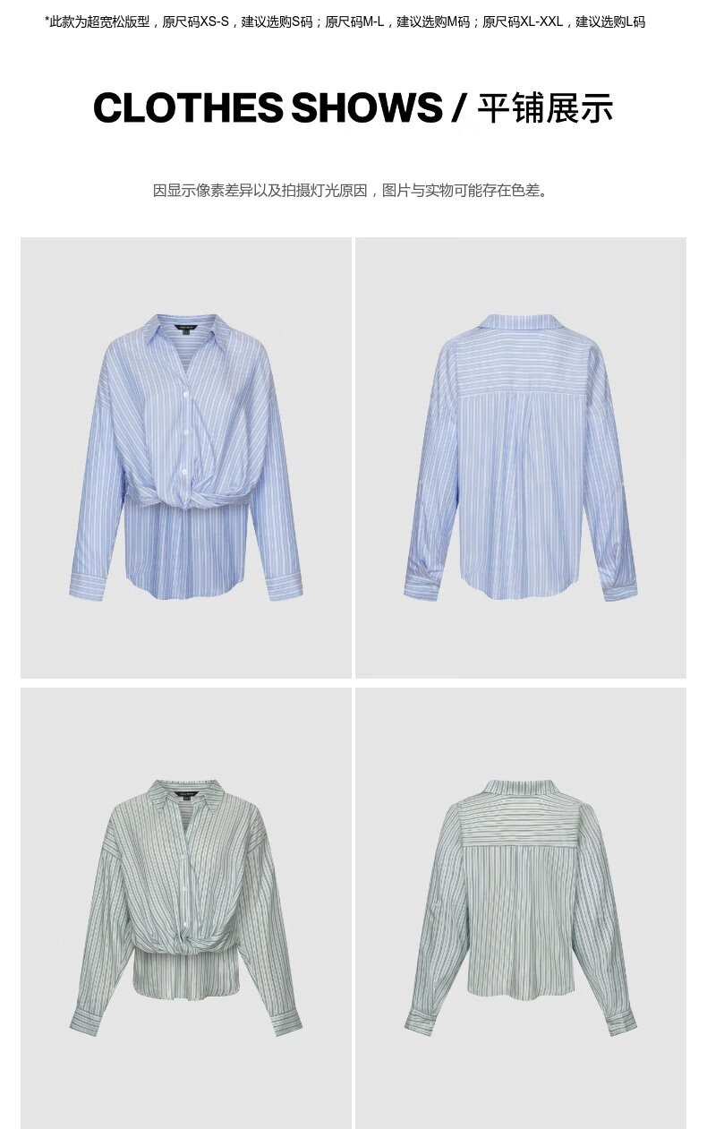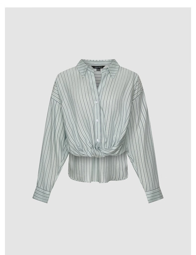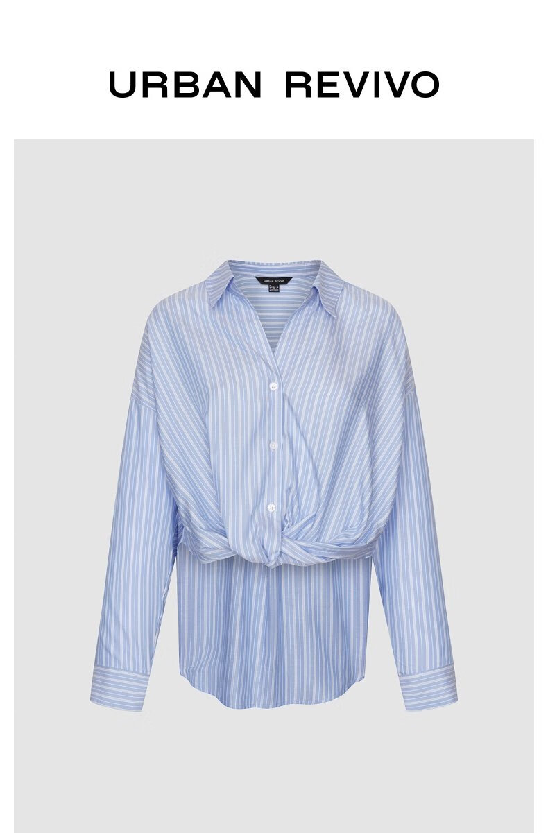 UR2026 Spring New Women's Temperament Contrast Color Striped Twist Blouse Shirt UWM250144 Blue Stripes S (XS-S)