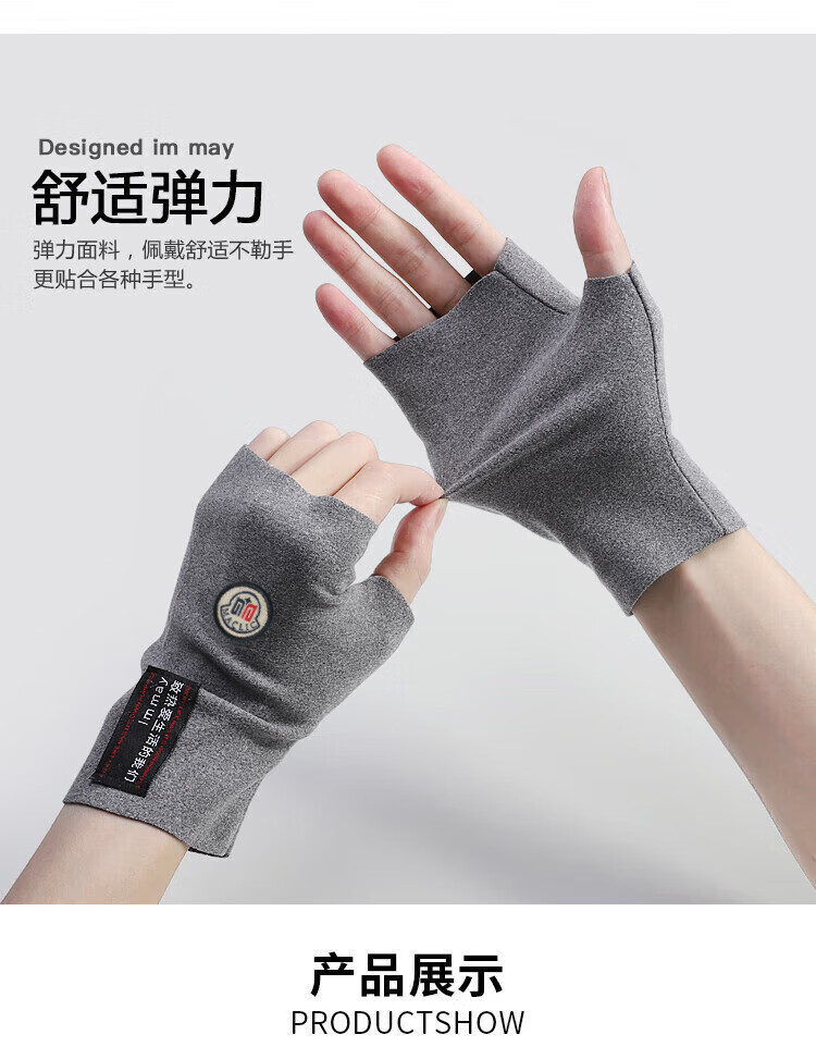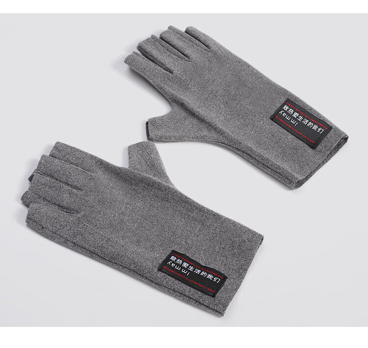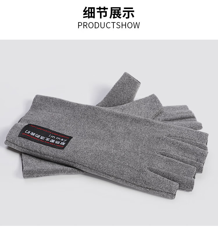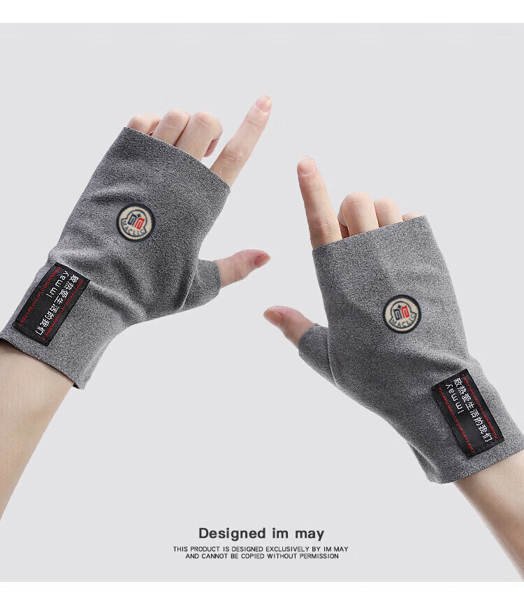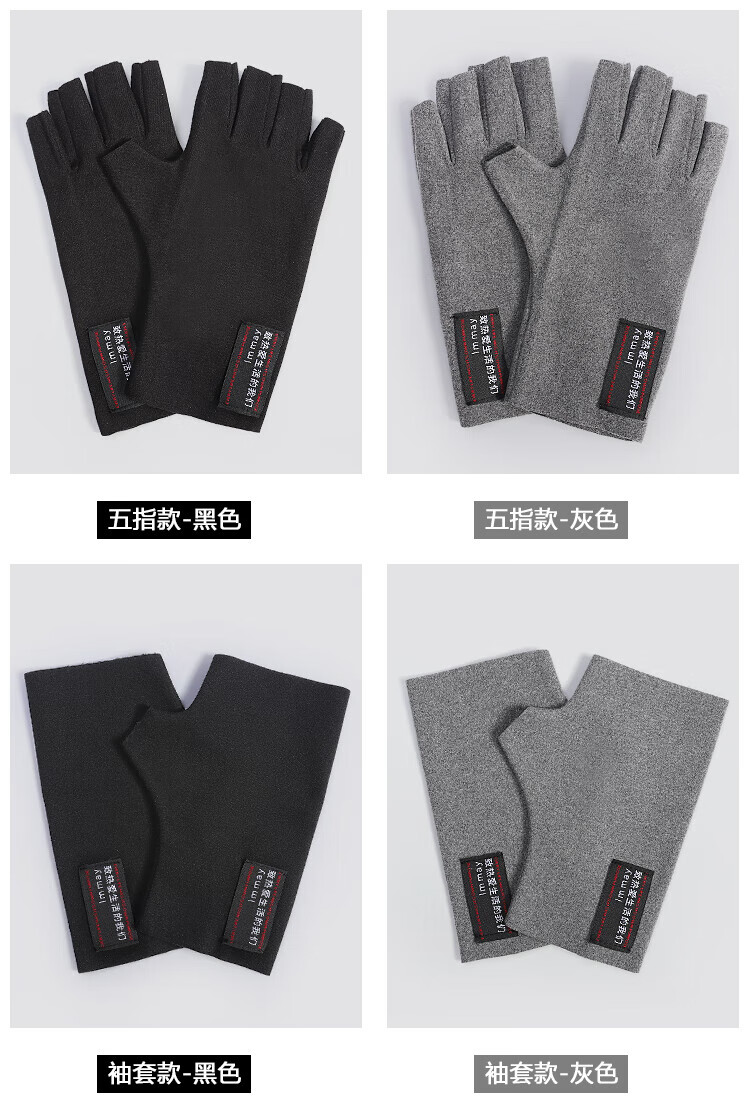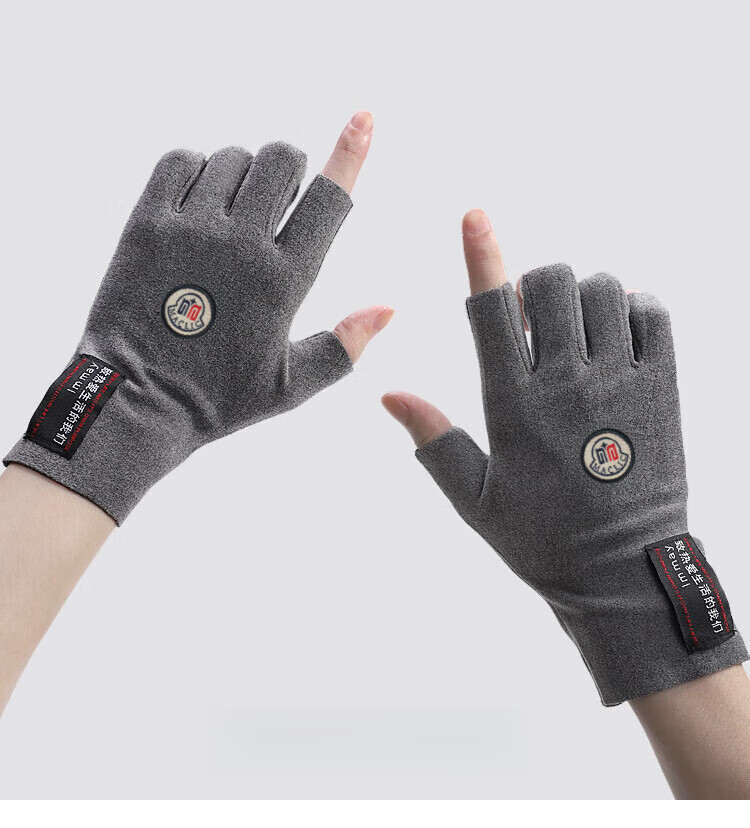Mengkou Bilin original design autumn and winter German velvet warm tactical gloves half-fingerless men's fishing gloves motorcycle riding women high elasticity black five-finger style (leaved five fingers) one size fits all
