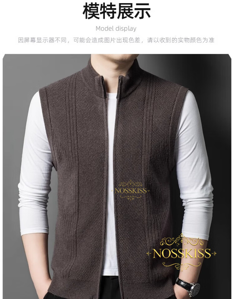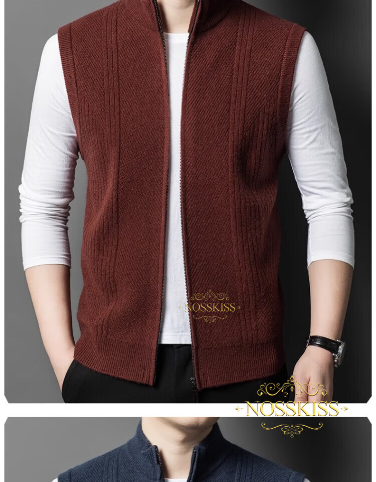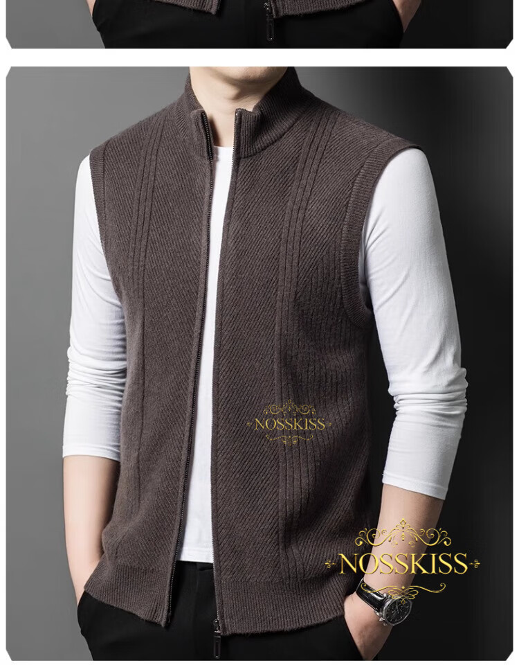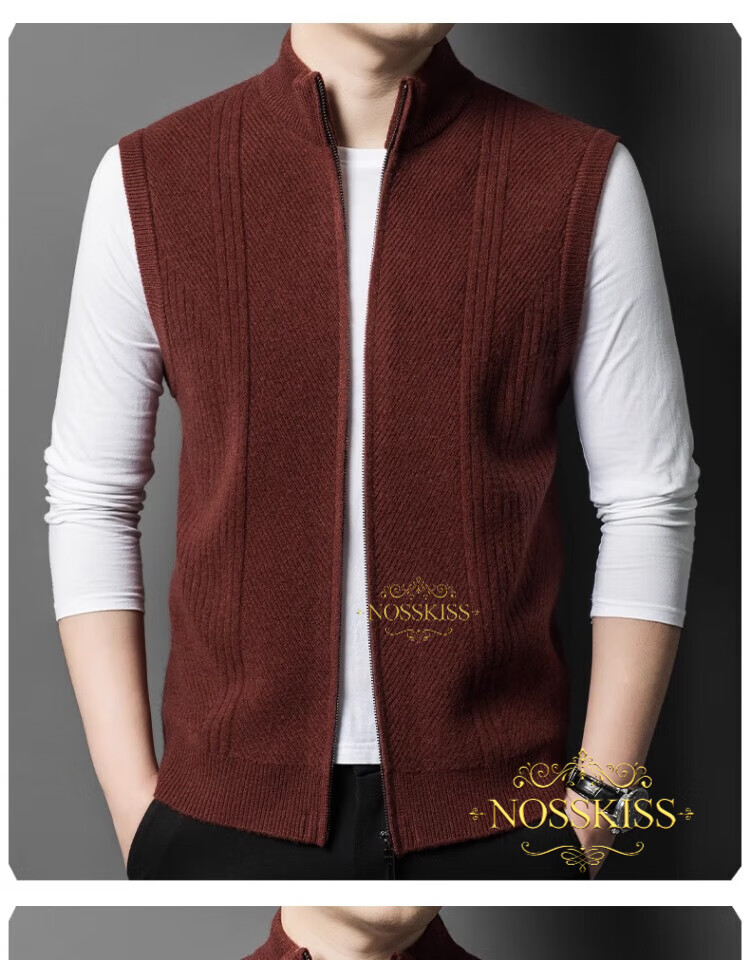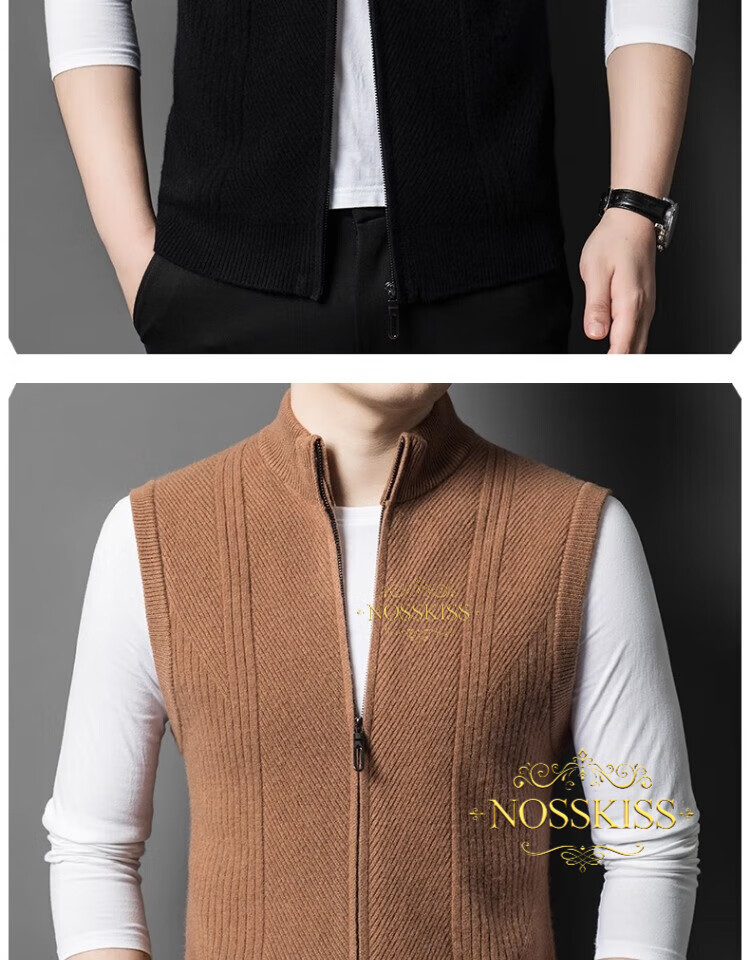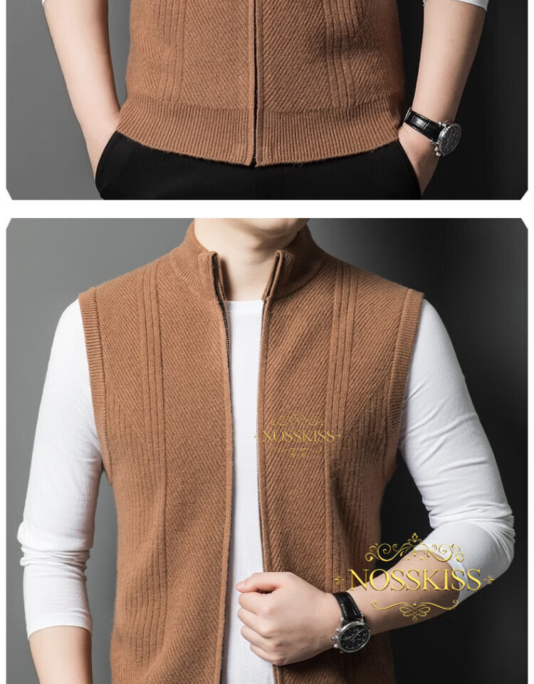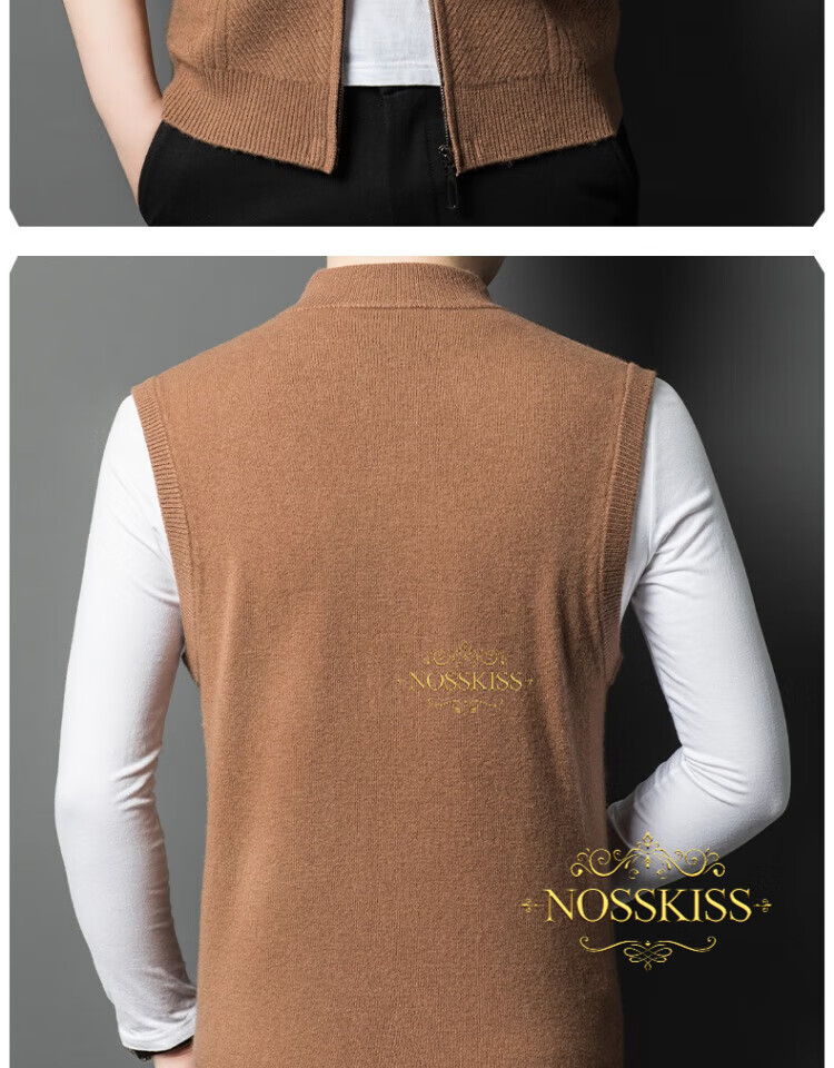 NOSSKISS international luxury brand high-end pure wool sweater men's cardigan vest spring and autumn stand-up collar sweater sleeveless vest camel one size 170/M suitable for 120-135Jin Jin equals 0.5 kg