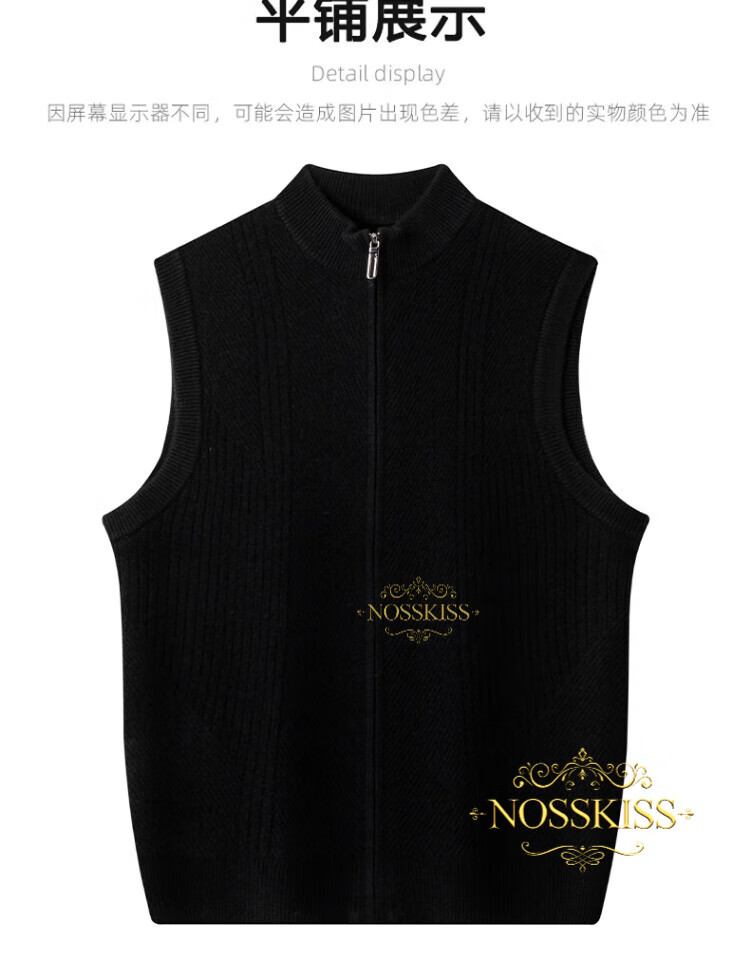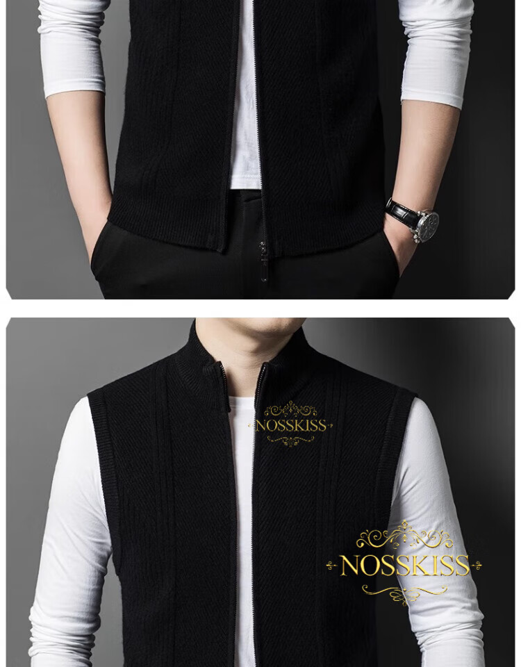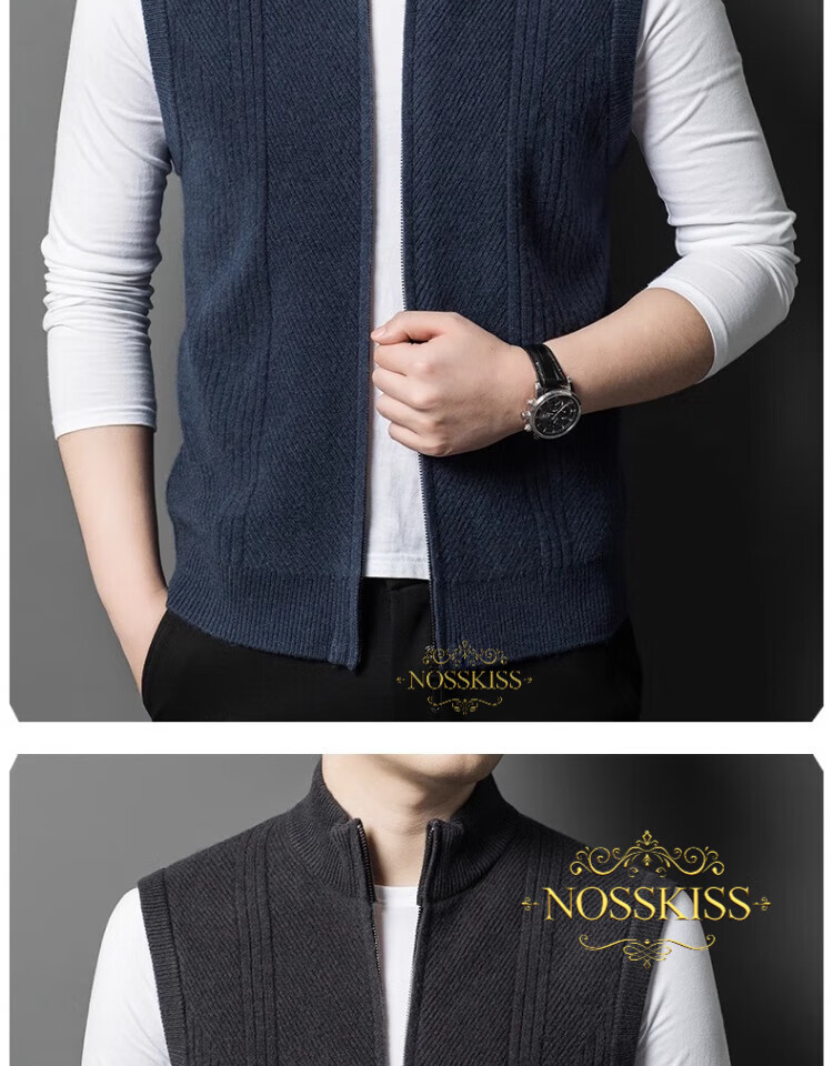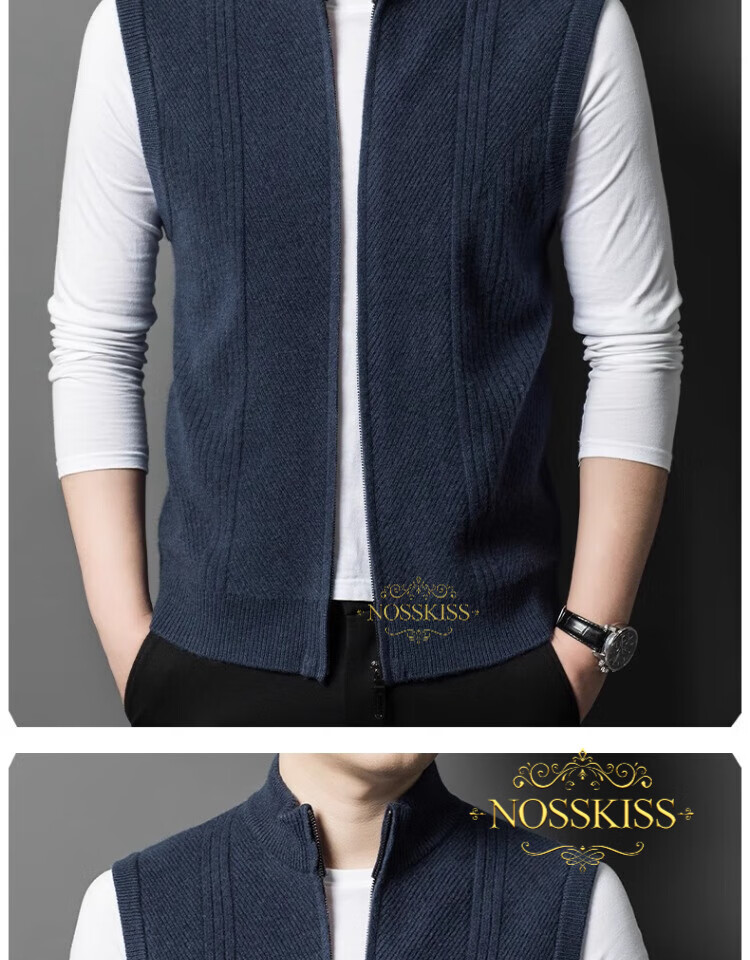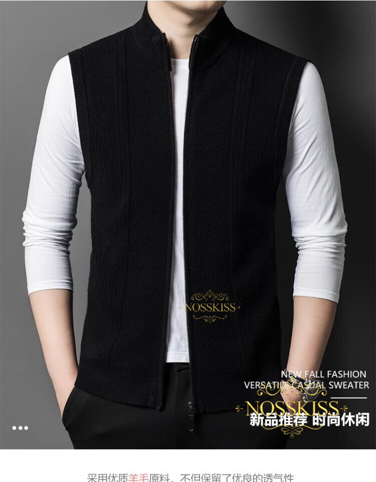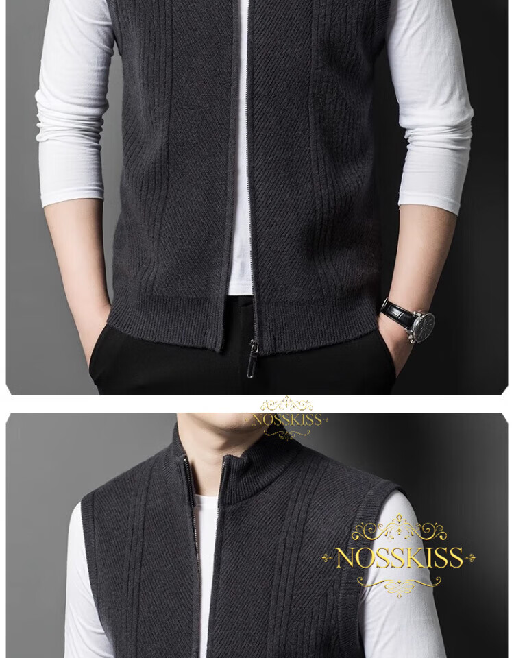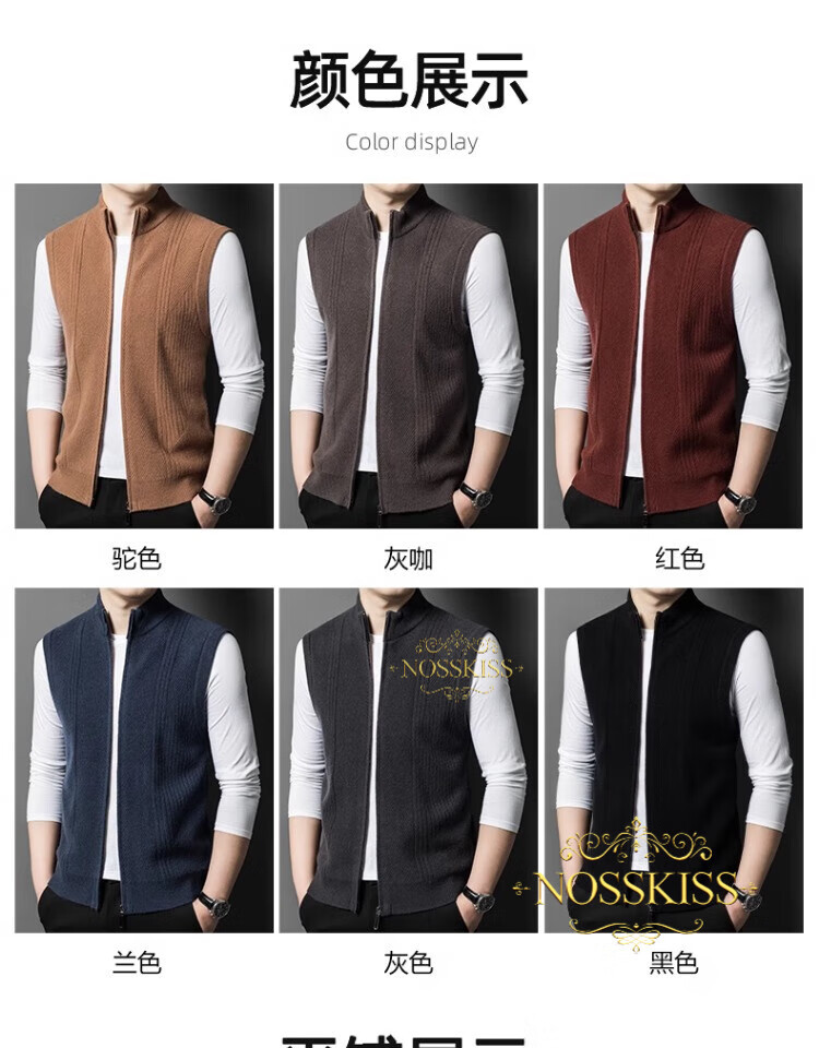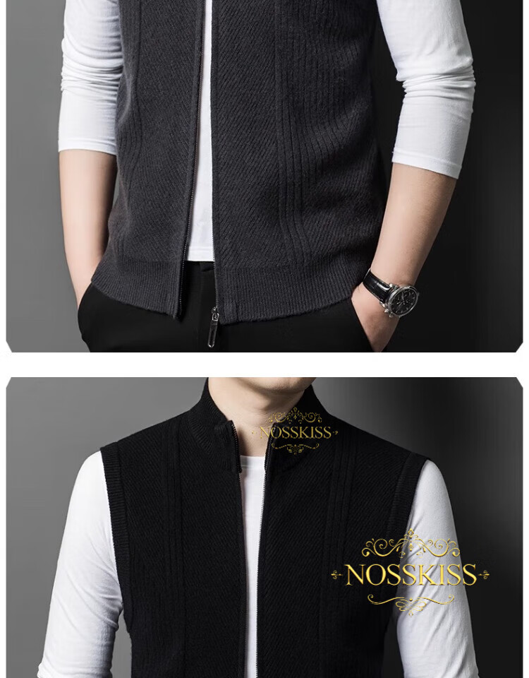 NOSSKISS international luxury brand high-end pure wool sweater men's cardigan vest spring and autumn stand-up collar sweater sleeveless vest camel one size 170/M suitable for 120-135Jin Jin equals 0.5 kg