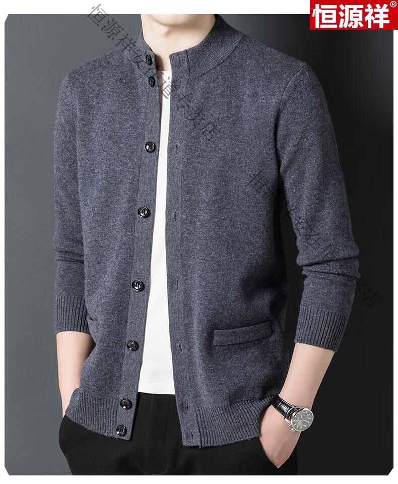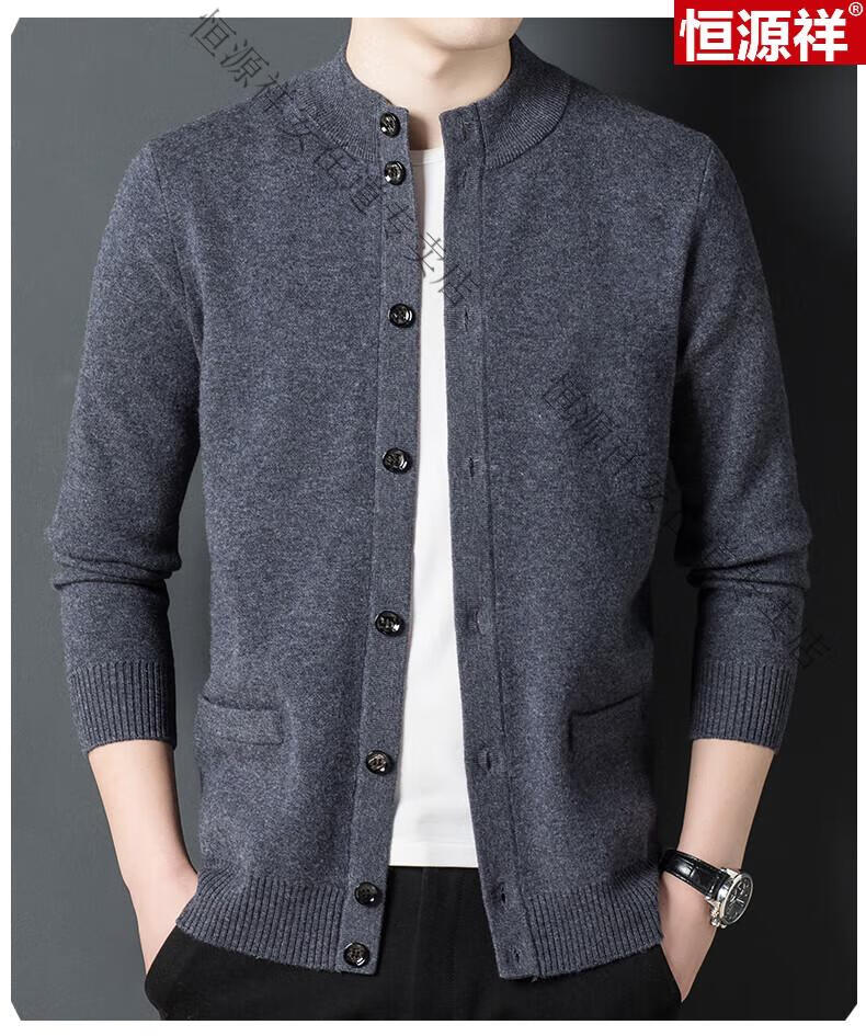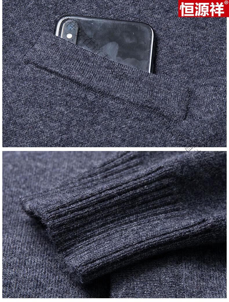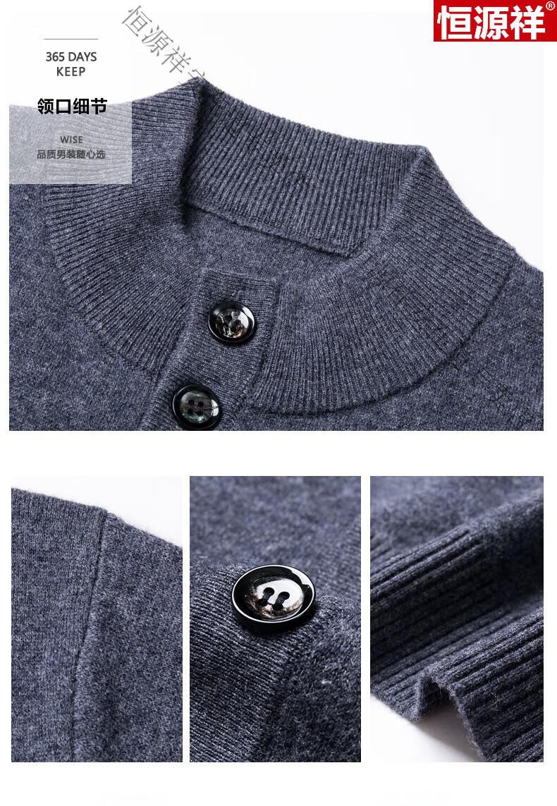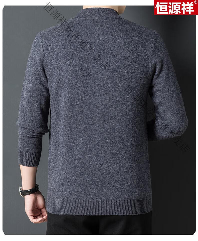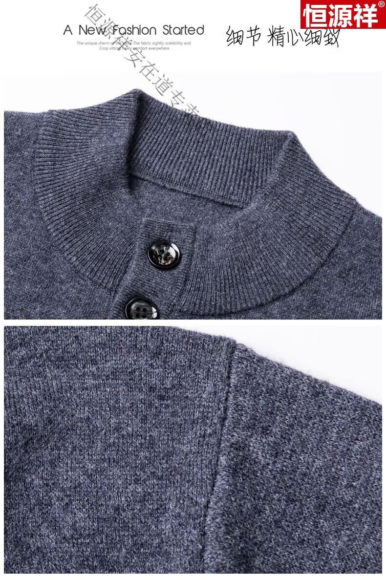 Hengyuanxiang 100% wool sweater men's pure wool cardigan autumn and winter knitted flip button half turtleneck stand-up sweater winter men's medium gray L 170 120-135Jin Jin equals 0.5 kg
