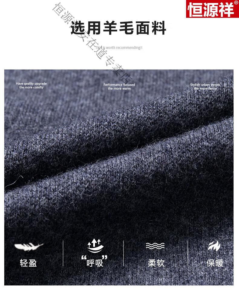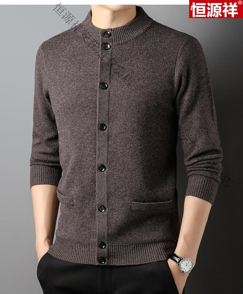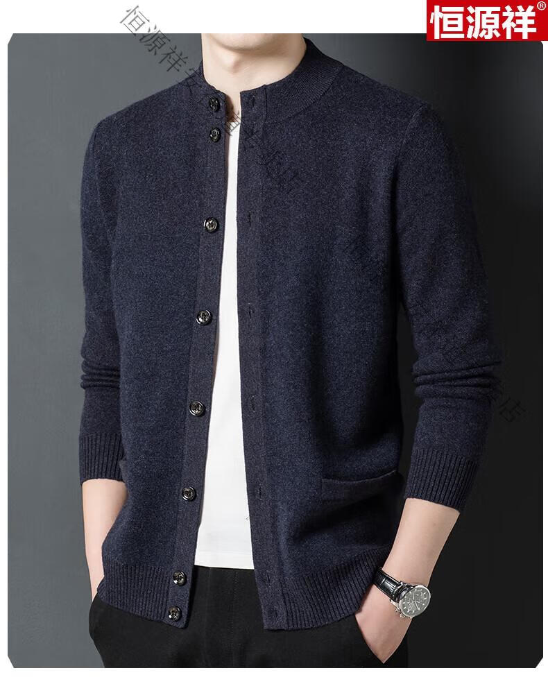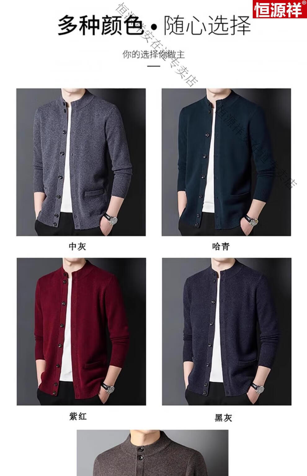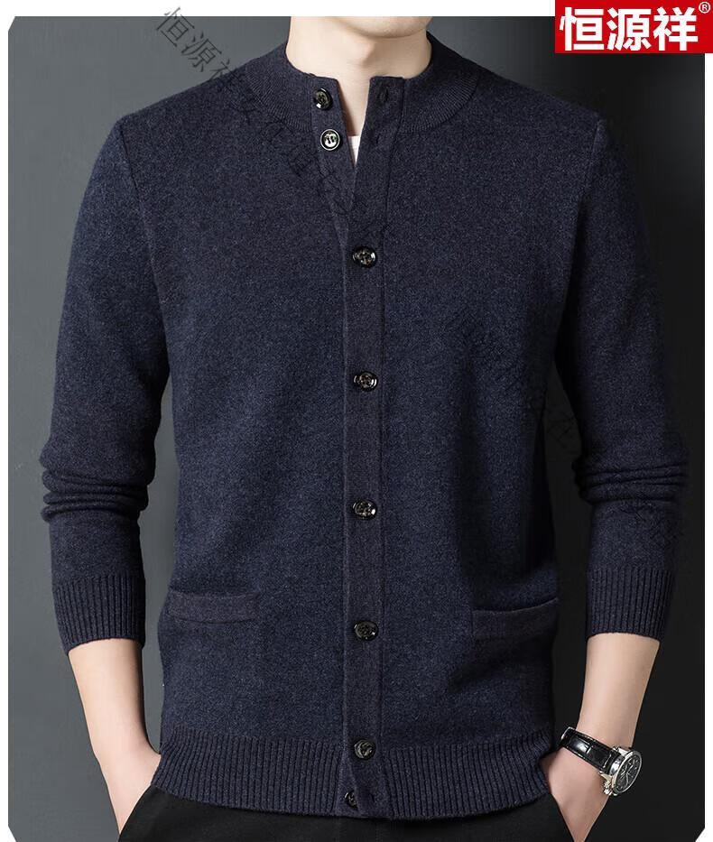 Hengyuanxiang 100% wool sweater men's pure wool cardigan autumn and winter knitted flip button half turtleneck stand-up sweater winter men's medium gray L 170 120-135Jin Jin equals 0.5 kg