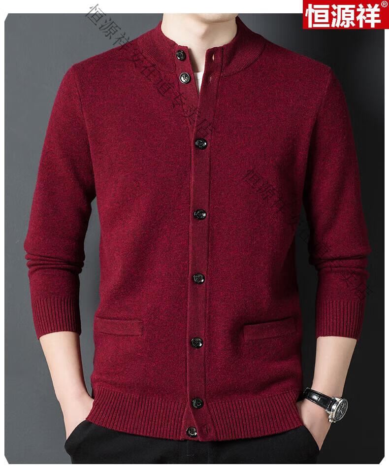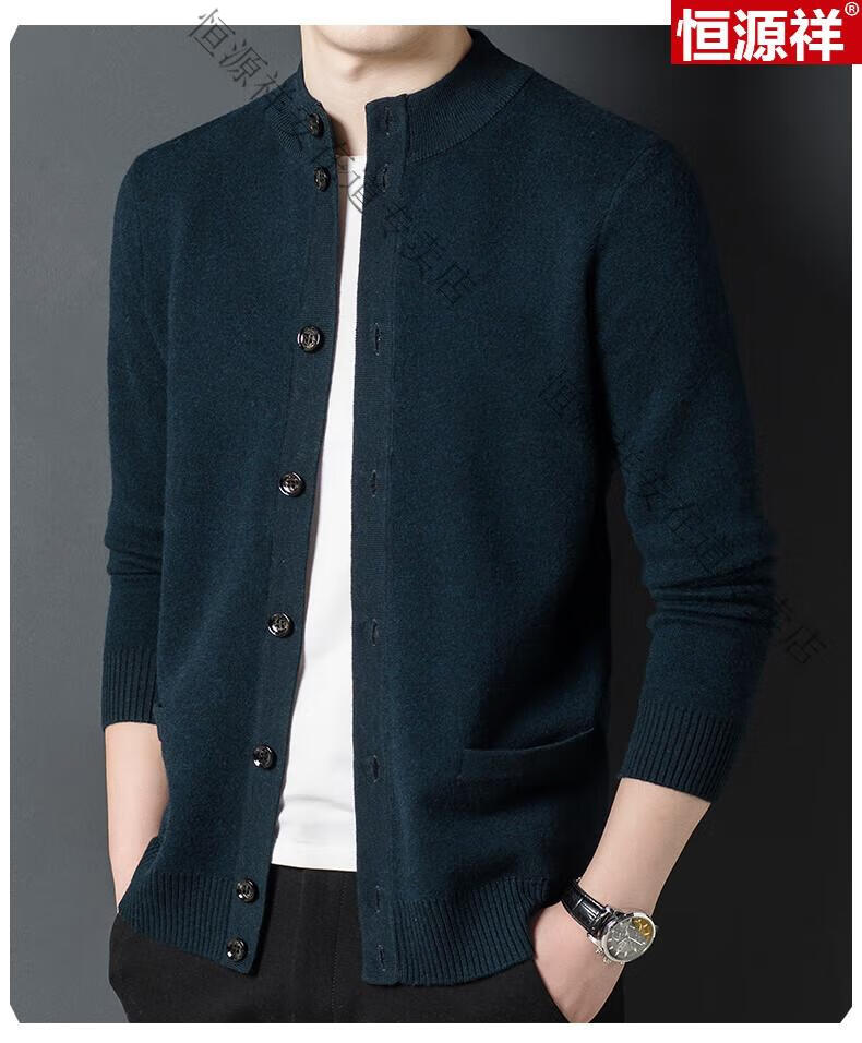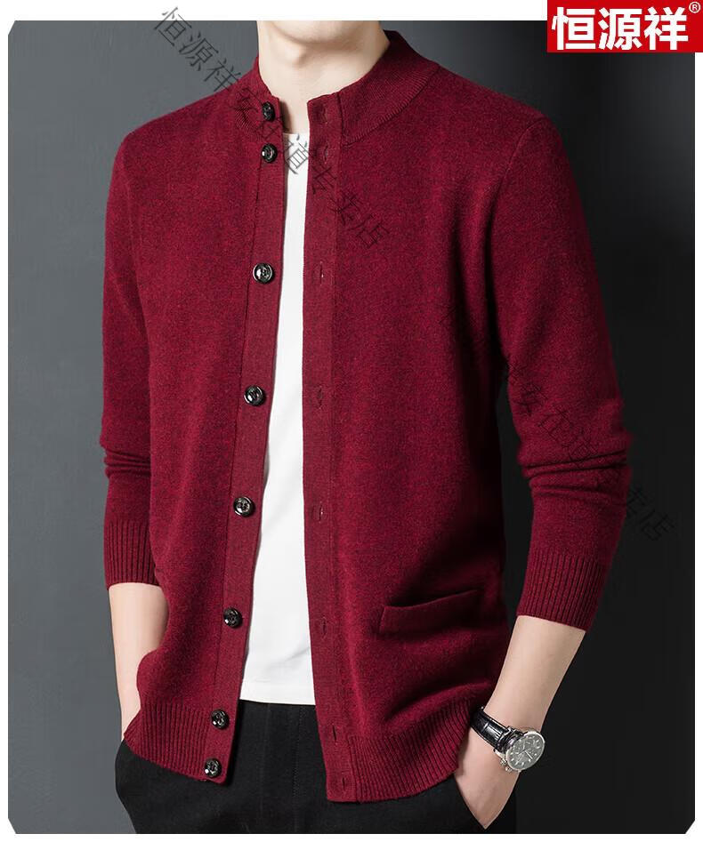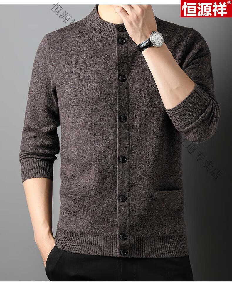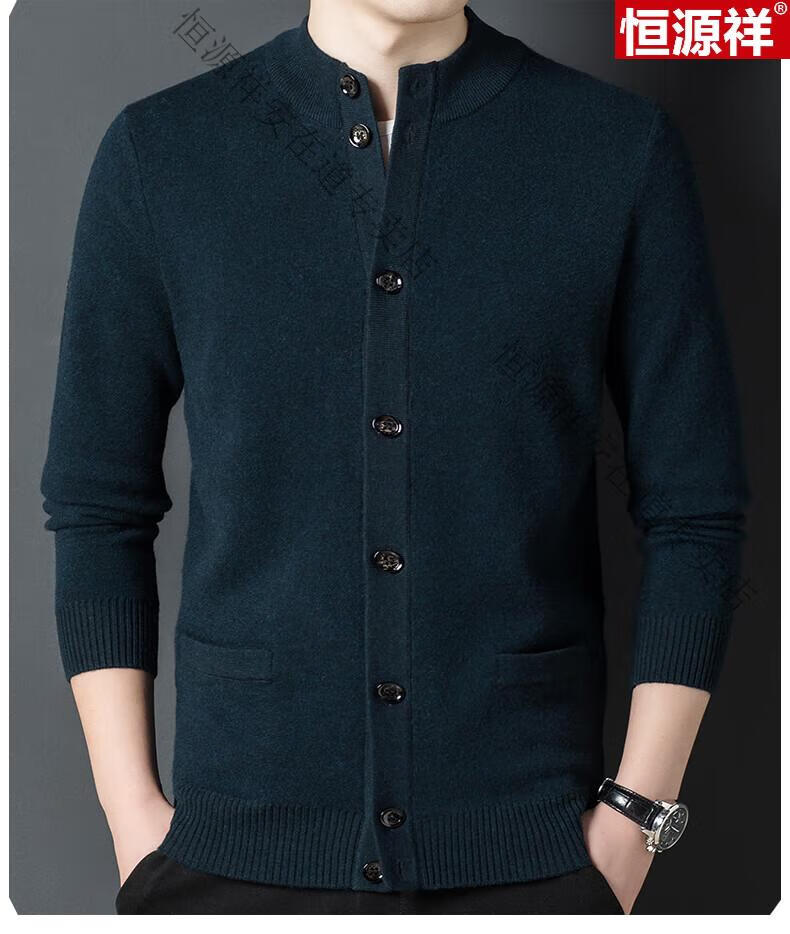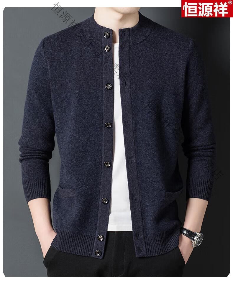 Hengyuanxiang 100% wool sweater men's pure wool cardigan autumn and winter knitted flip button half turtleneck stand-up sweater winter men's medium gray L 170 120-135Jin Jin equals 0.5 kg