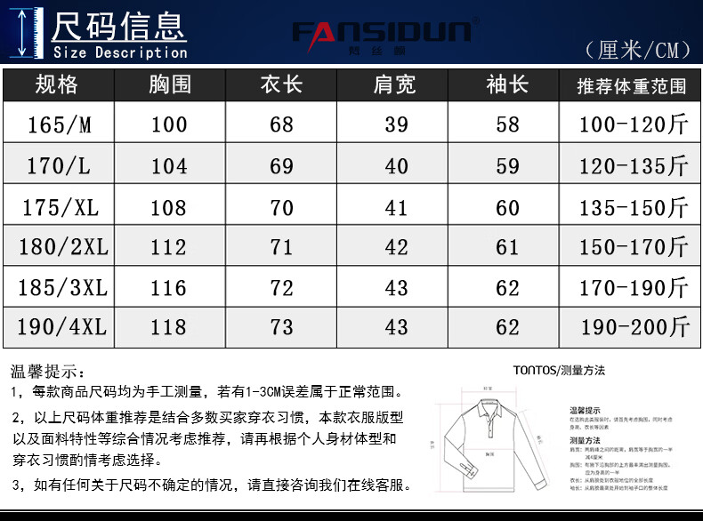 China (cm) 165 / 88-90 170 / 96-98 175 / 108-110 180 / 118-122 185 / 126-130