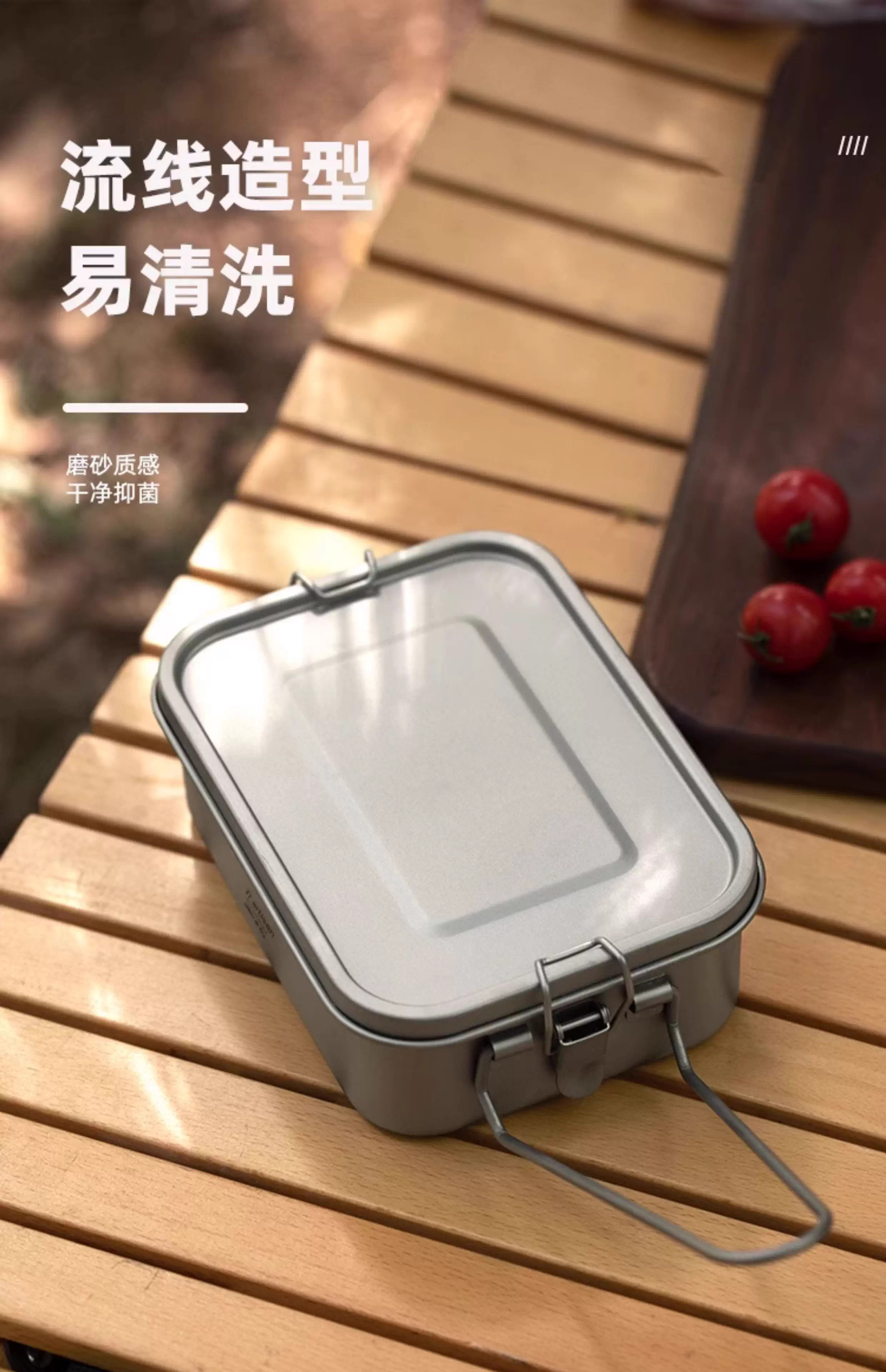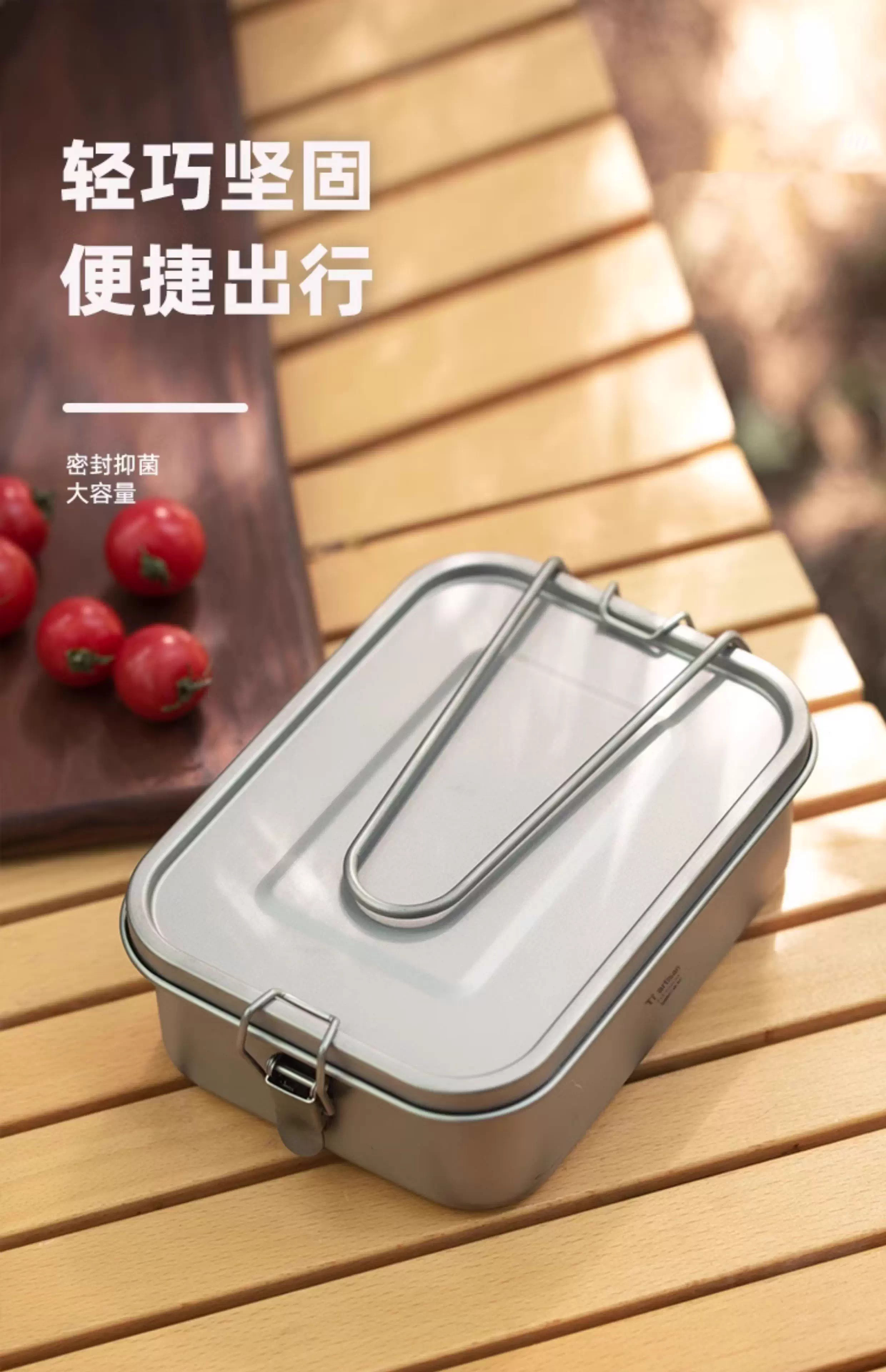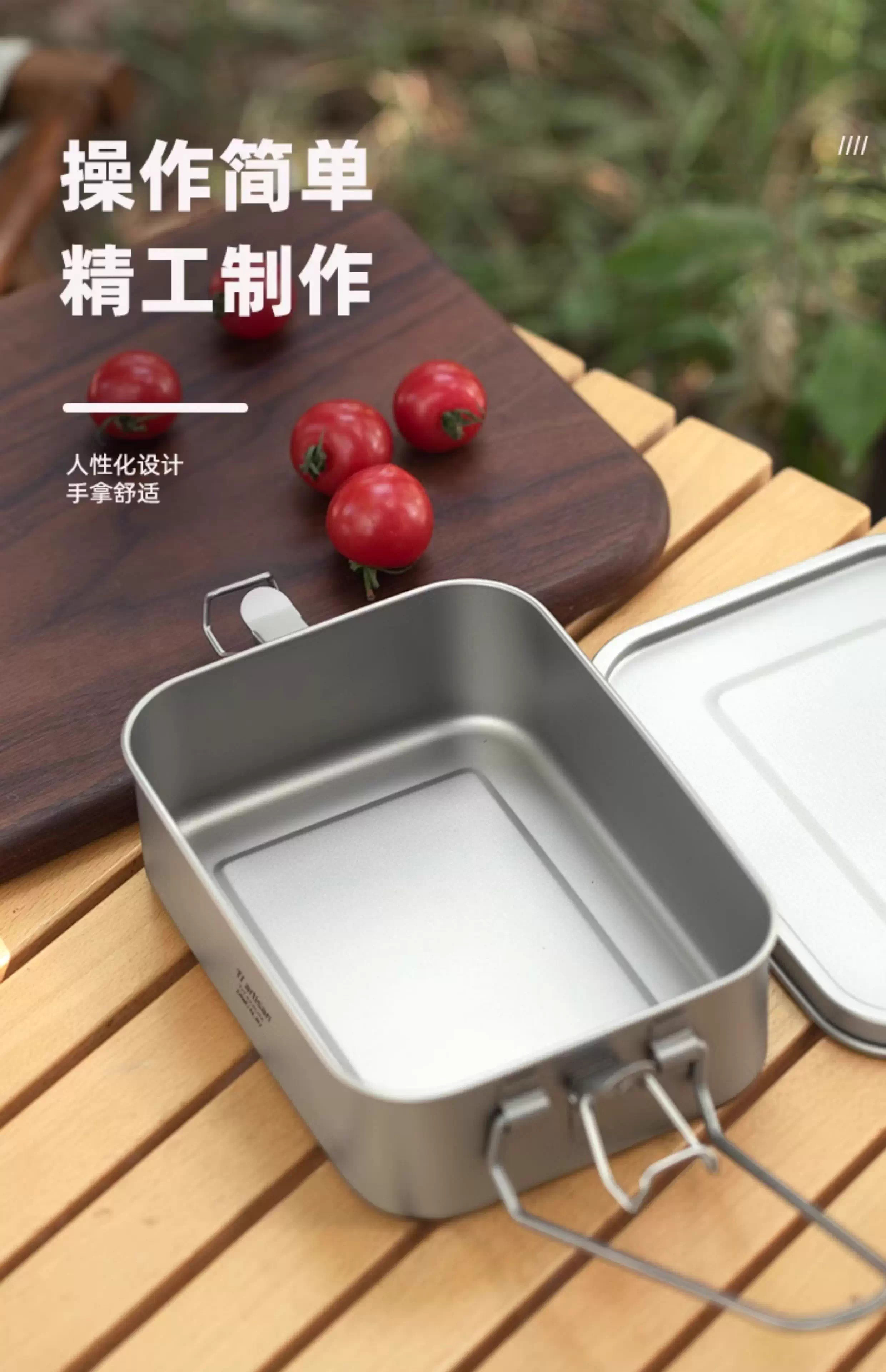304 Titanium Coated Square Lunch Box Convenient Outdoor Camping Lunch Box Office Worker Canteen Lunch Box with Handle Titanium Purification Square Lunch Box - 1 Pack