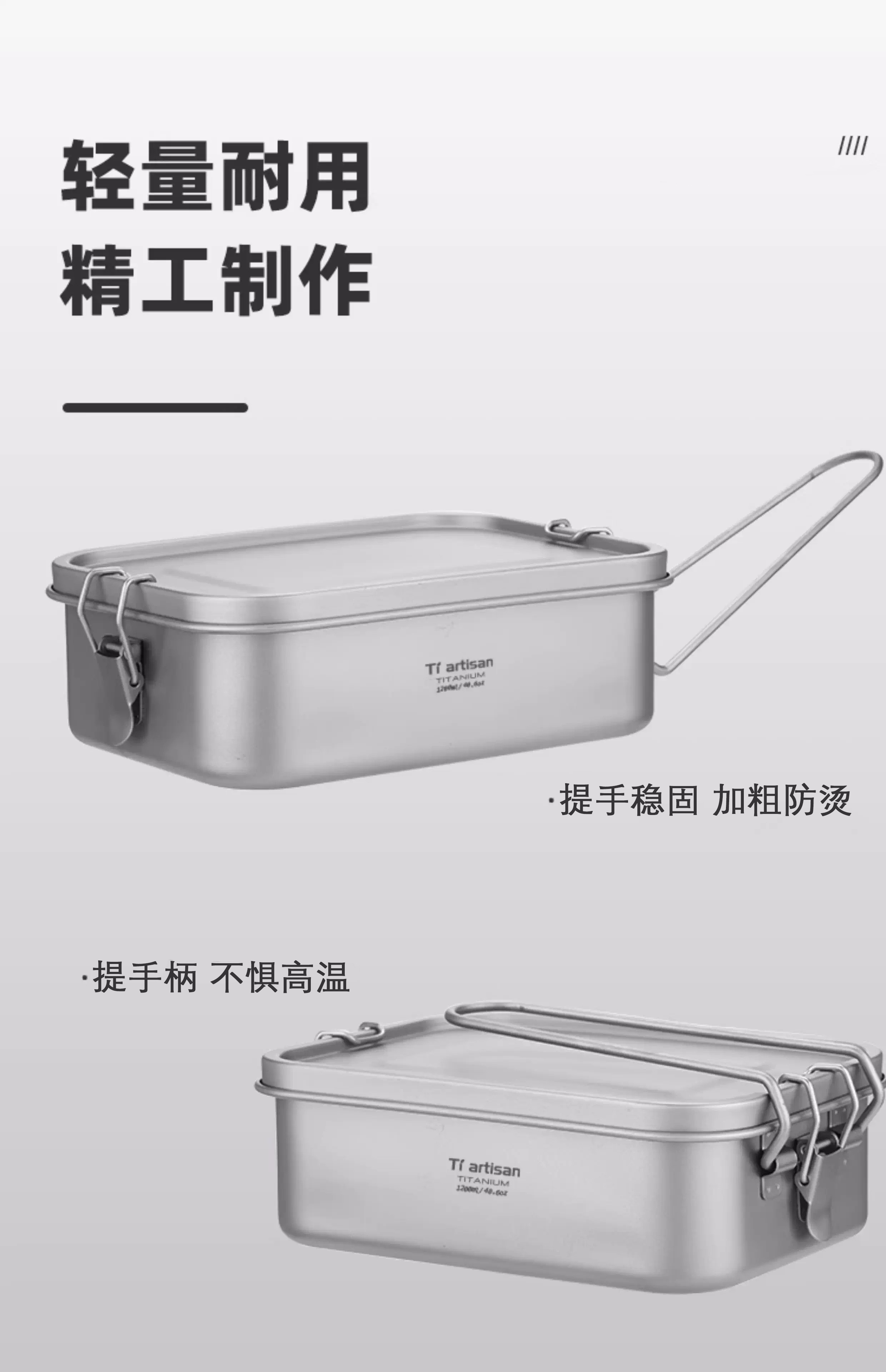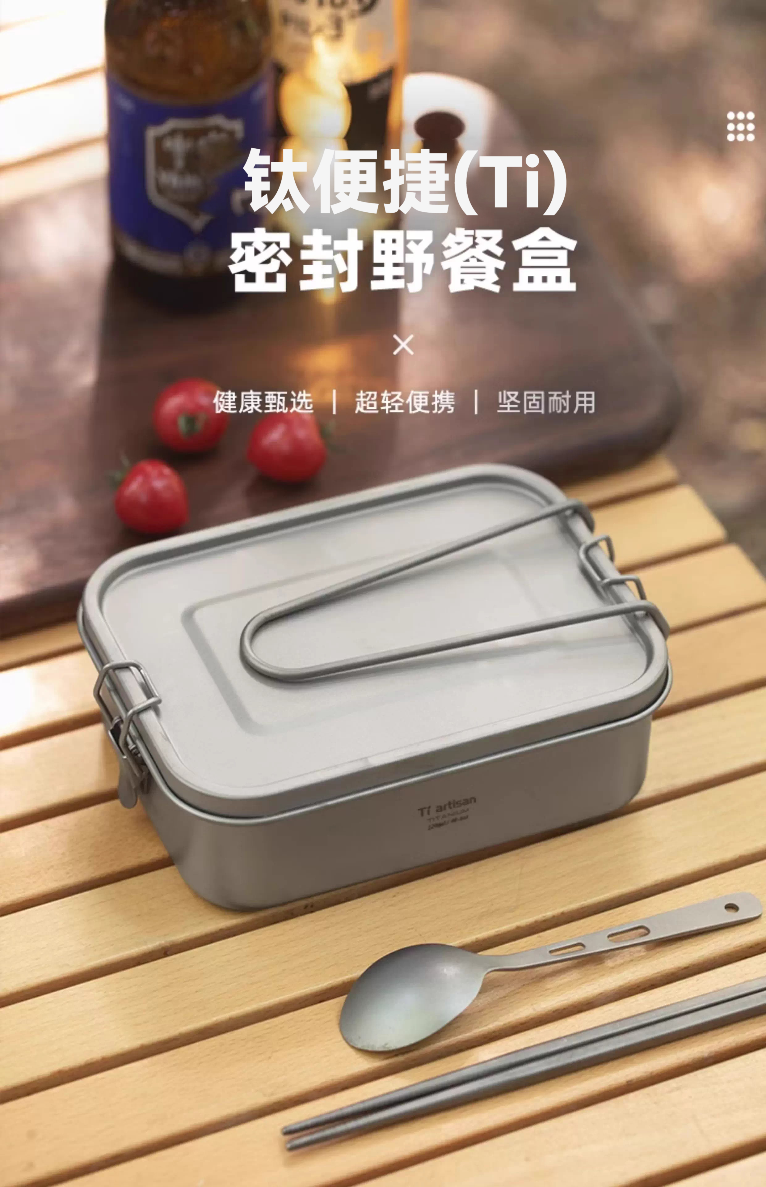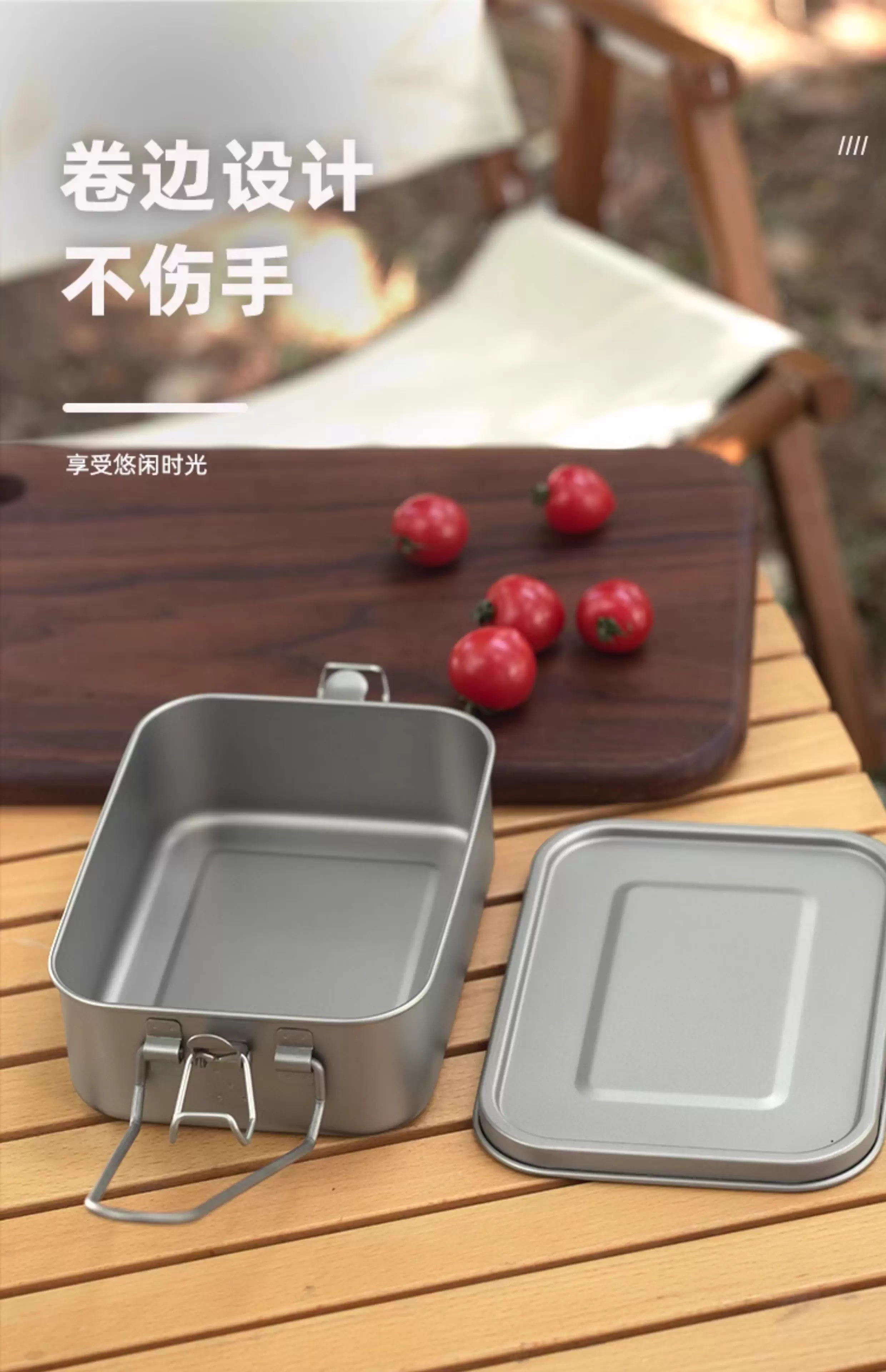304 Titanium Coated Square Lunch Box Convenient Outdoor Camping Lunch Box Office Worker Canteen Lunch Box with Handle Titanium Purification Square Lunch Box - 1 Pack