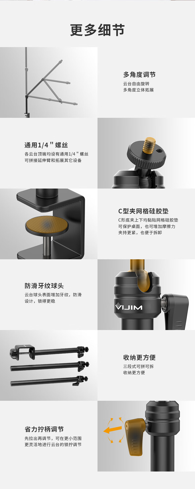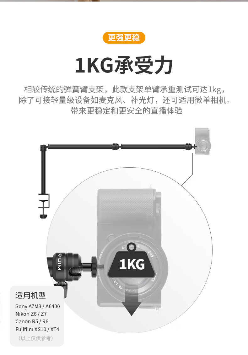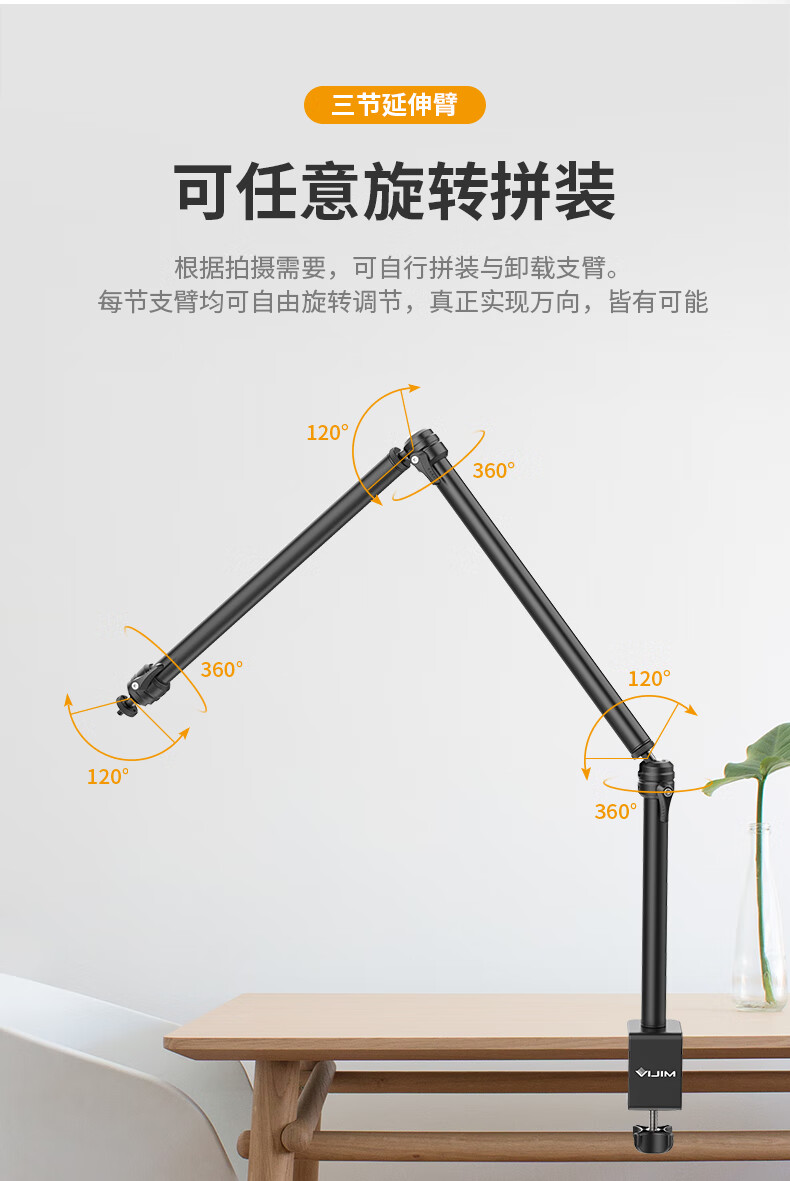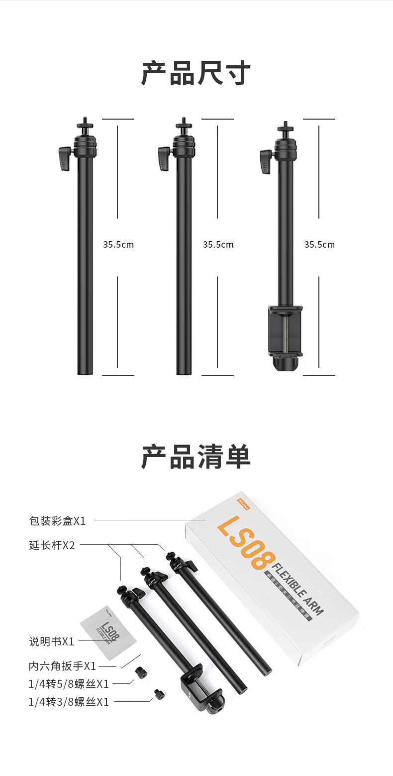 UlanziLS08 overhead shot stand desktop universal extension arm cantilever microphone fill light microphone universal condenser microphone stand accessories game anchor live computer home office photo LS08 desktop C-type clip three-section extension arm with mobile phone clip