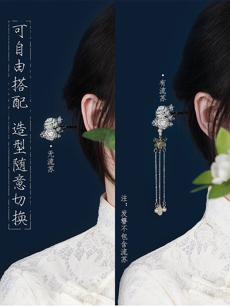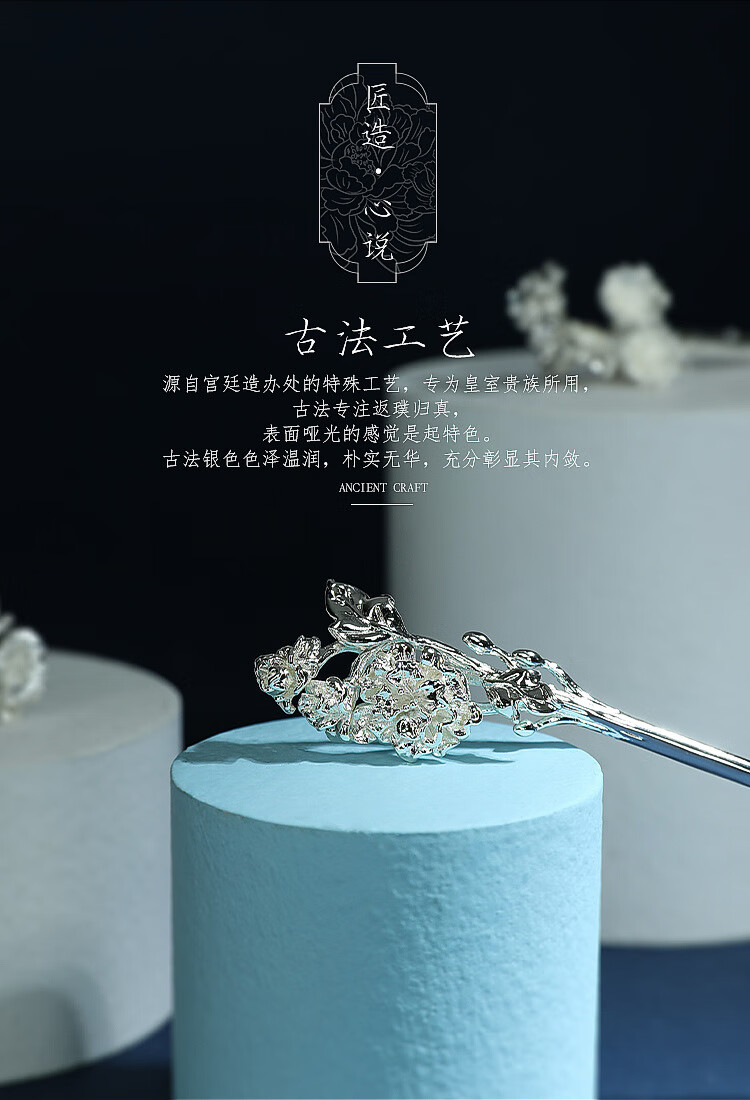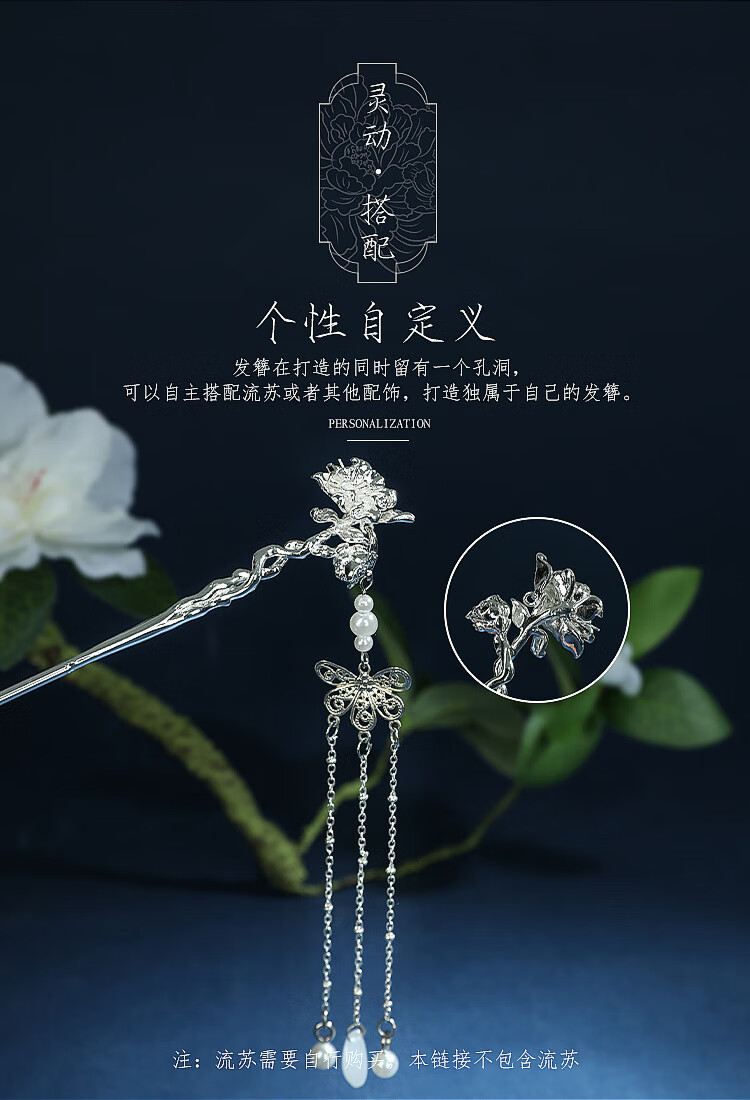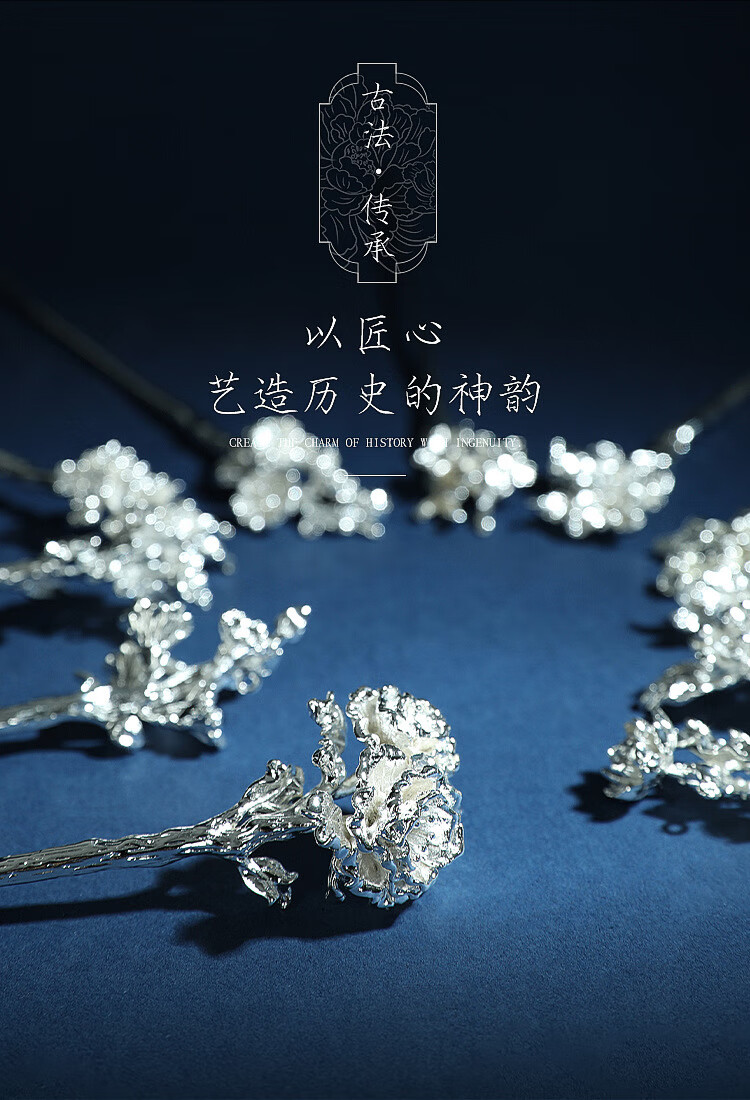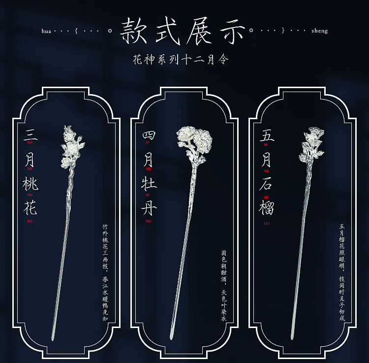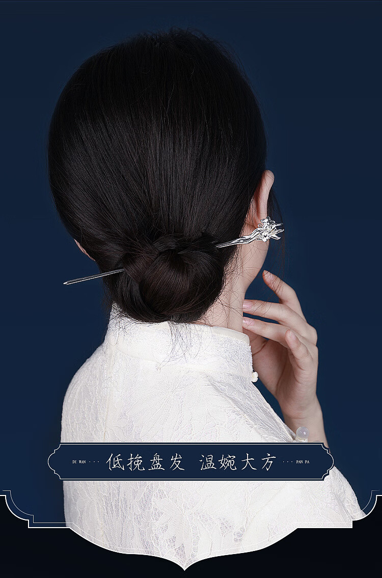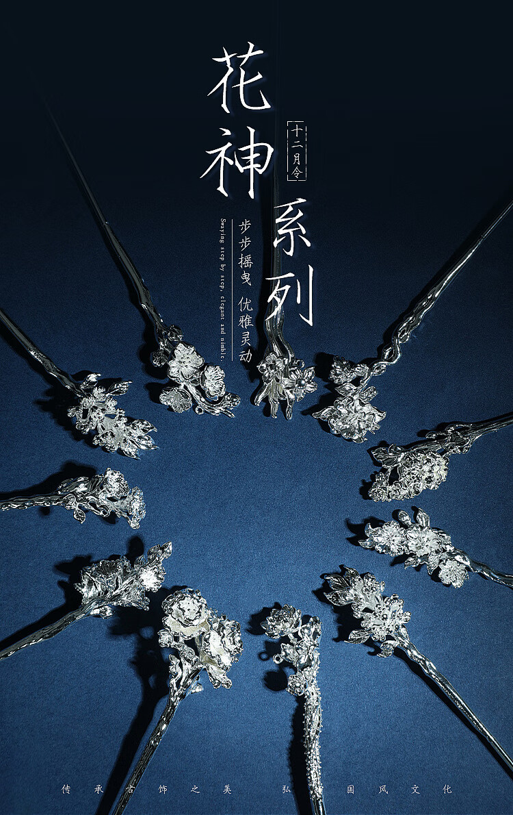 KZD Old Phoenix 999 Sterling Silver Twelve Flower Gods New Chinese Style Hairpin Simple Hairpin Disk Hair Hanfu Hair Accessories November Camellia (excluding tassels)