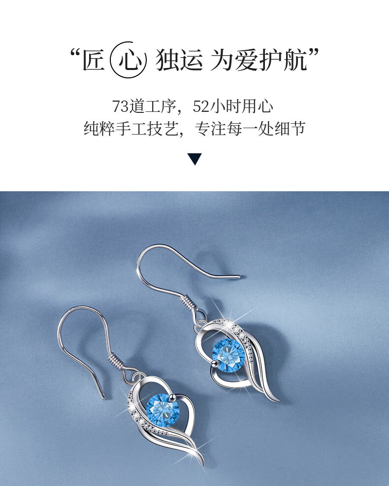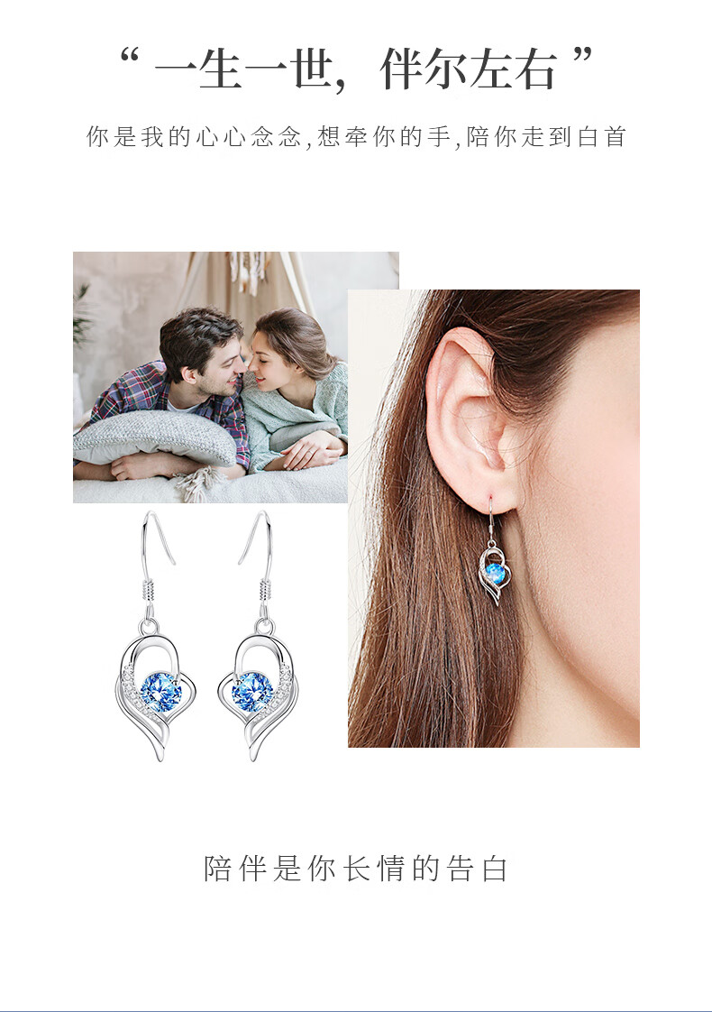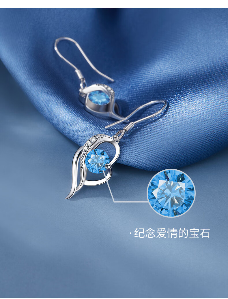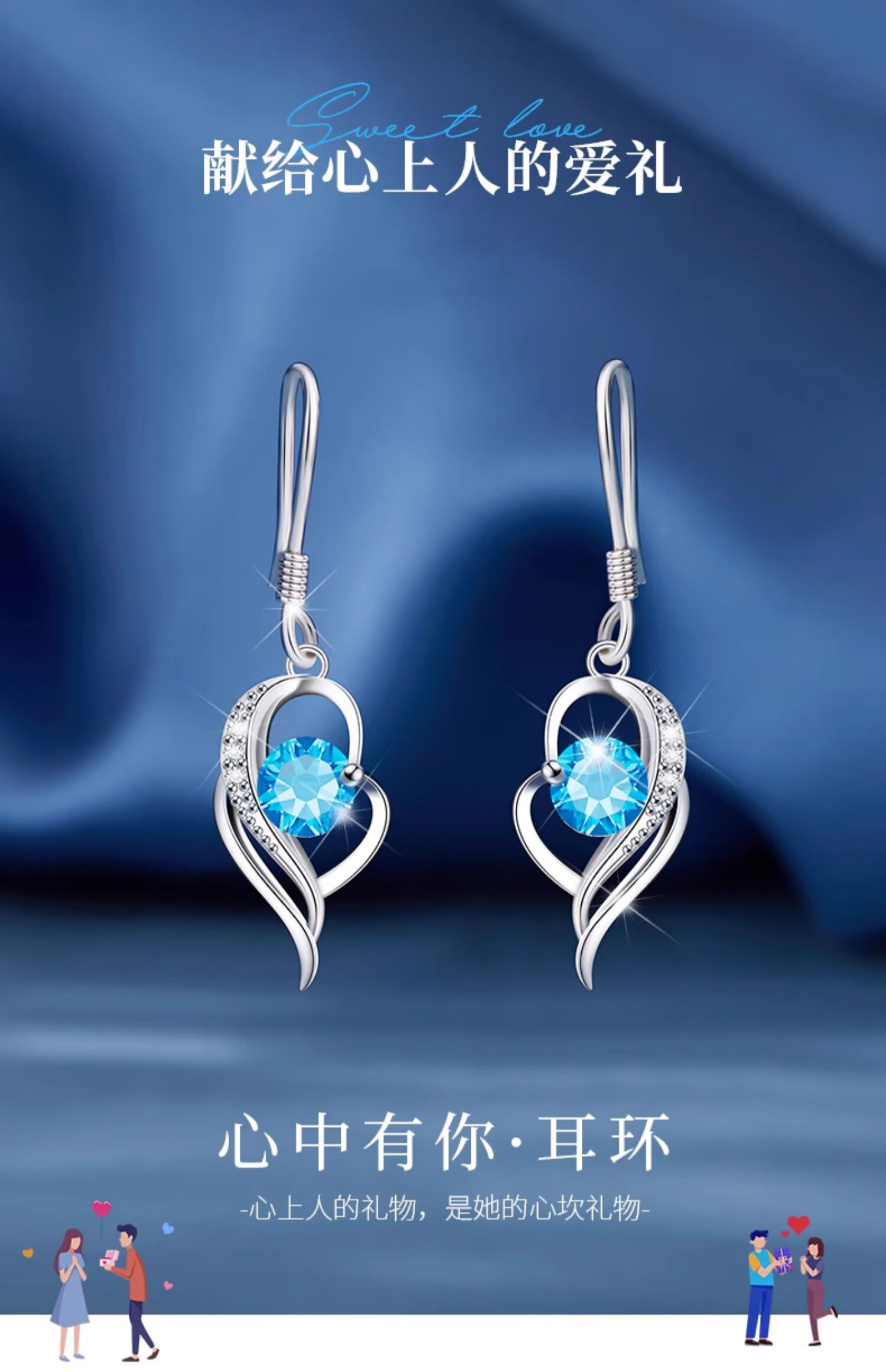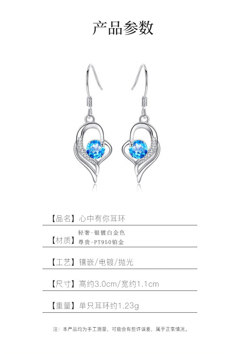 MZMZ platinum earrings for women pt950 platinum fashion earrings earrings Valentine's Day birthday gift for girlfriend and wife when/next day delivery - light luxury - I have you in my heart earrings blue