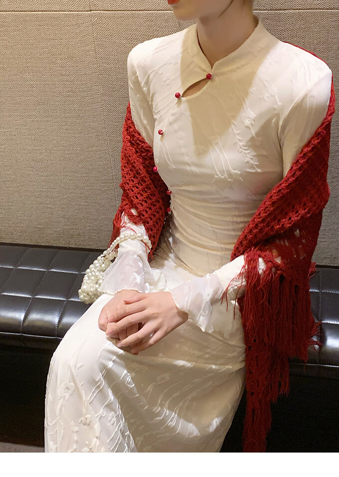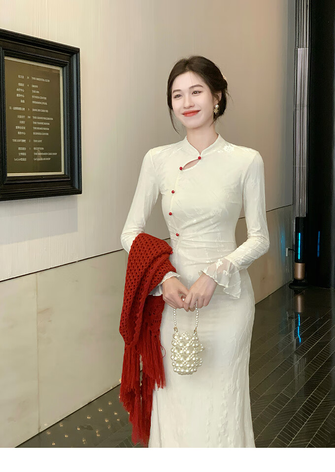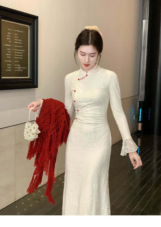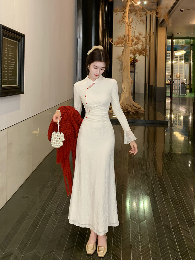 Jialong Mingxiu 2025 Autumn New Long Xingxue Zhiguang New Chinese Style Improved Cheongsam Women's Trumpet Sleeve Dress Qianmi Xing 2XL