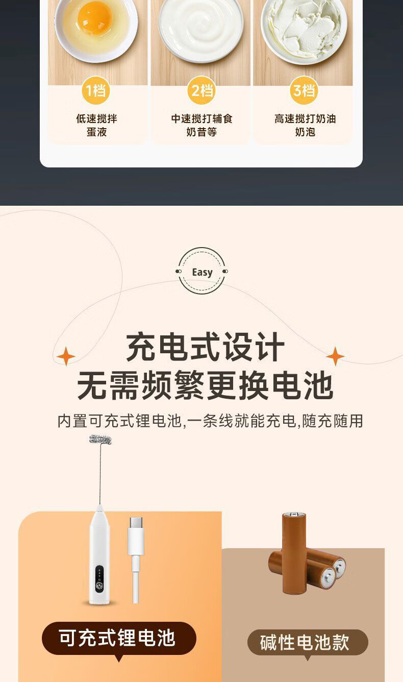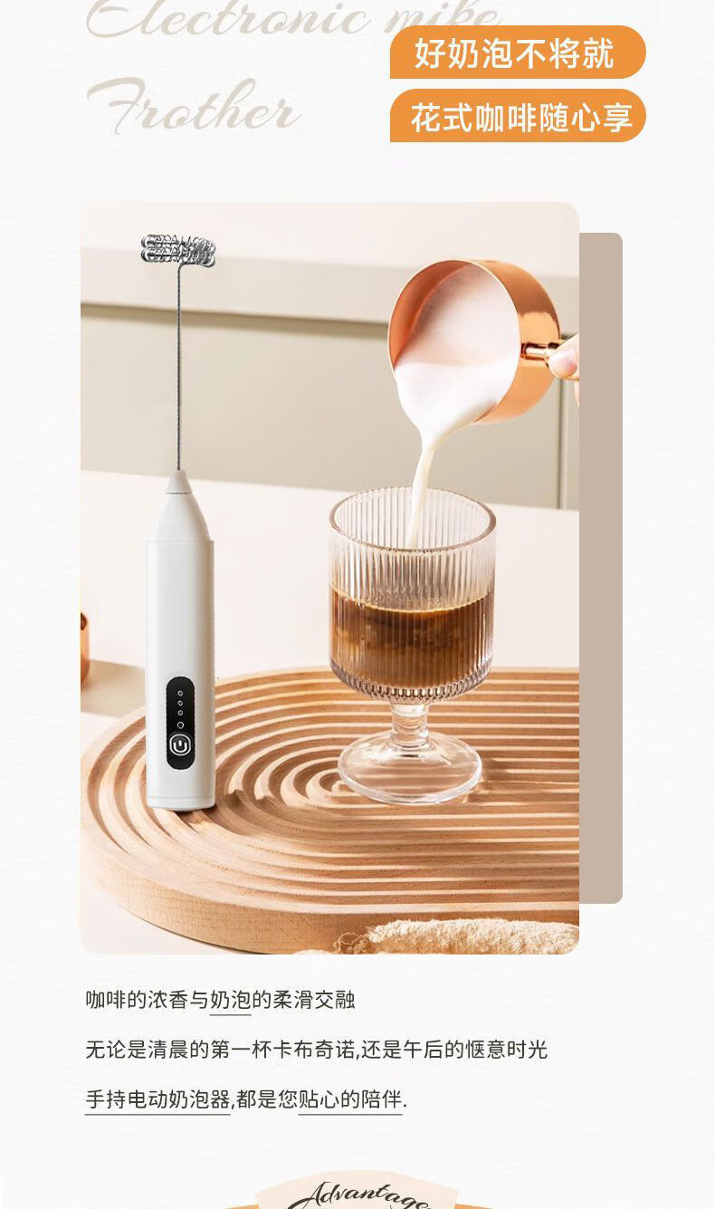 Electric milk frother milk froth egg beater handheld household whipping mini coffee milk stirrer milk white