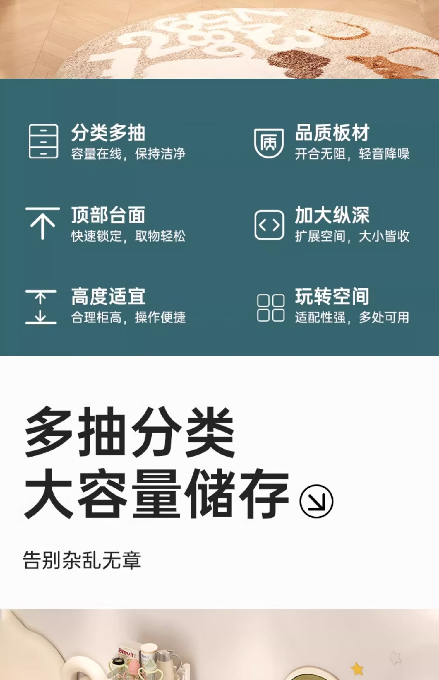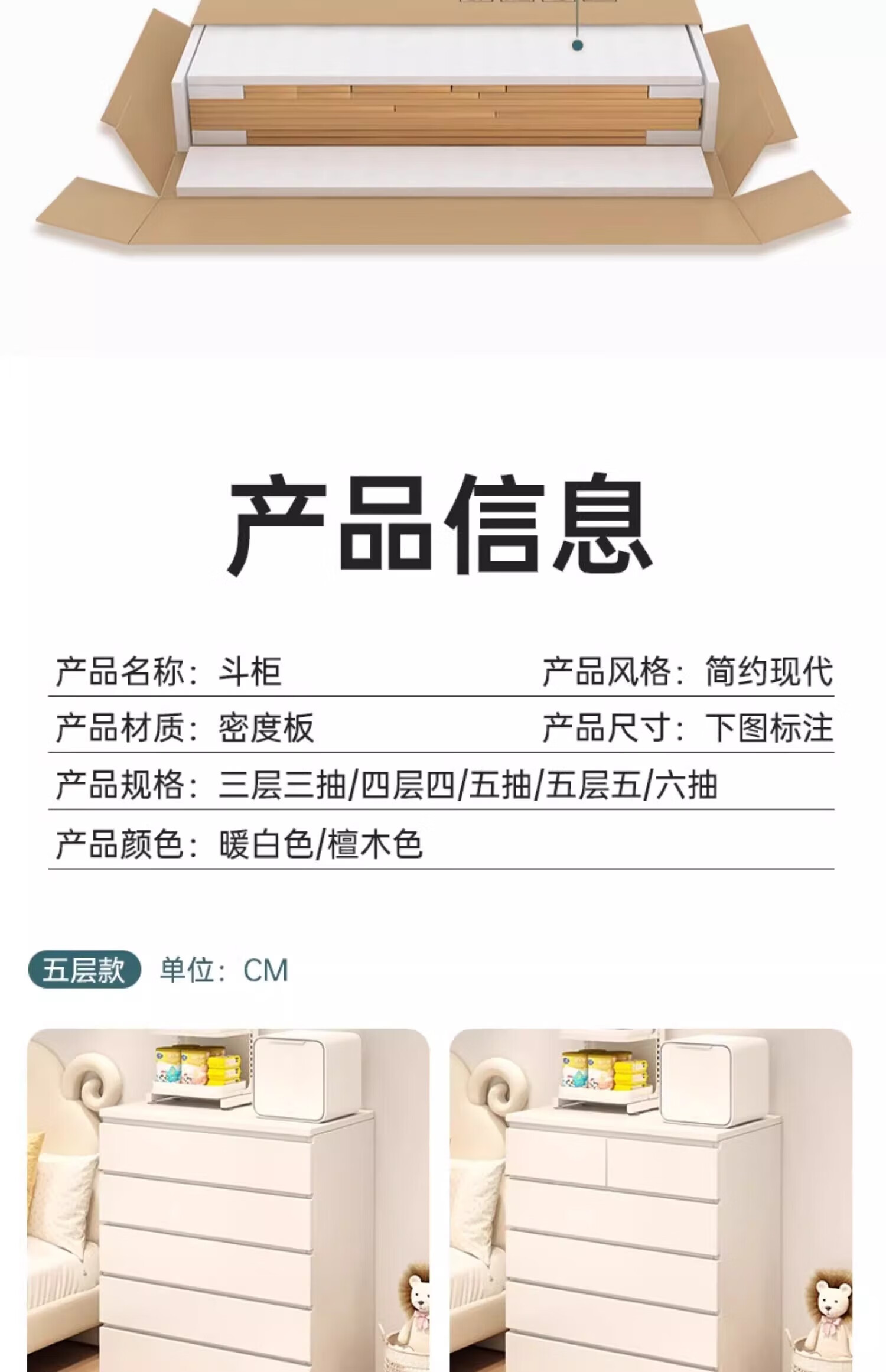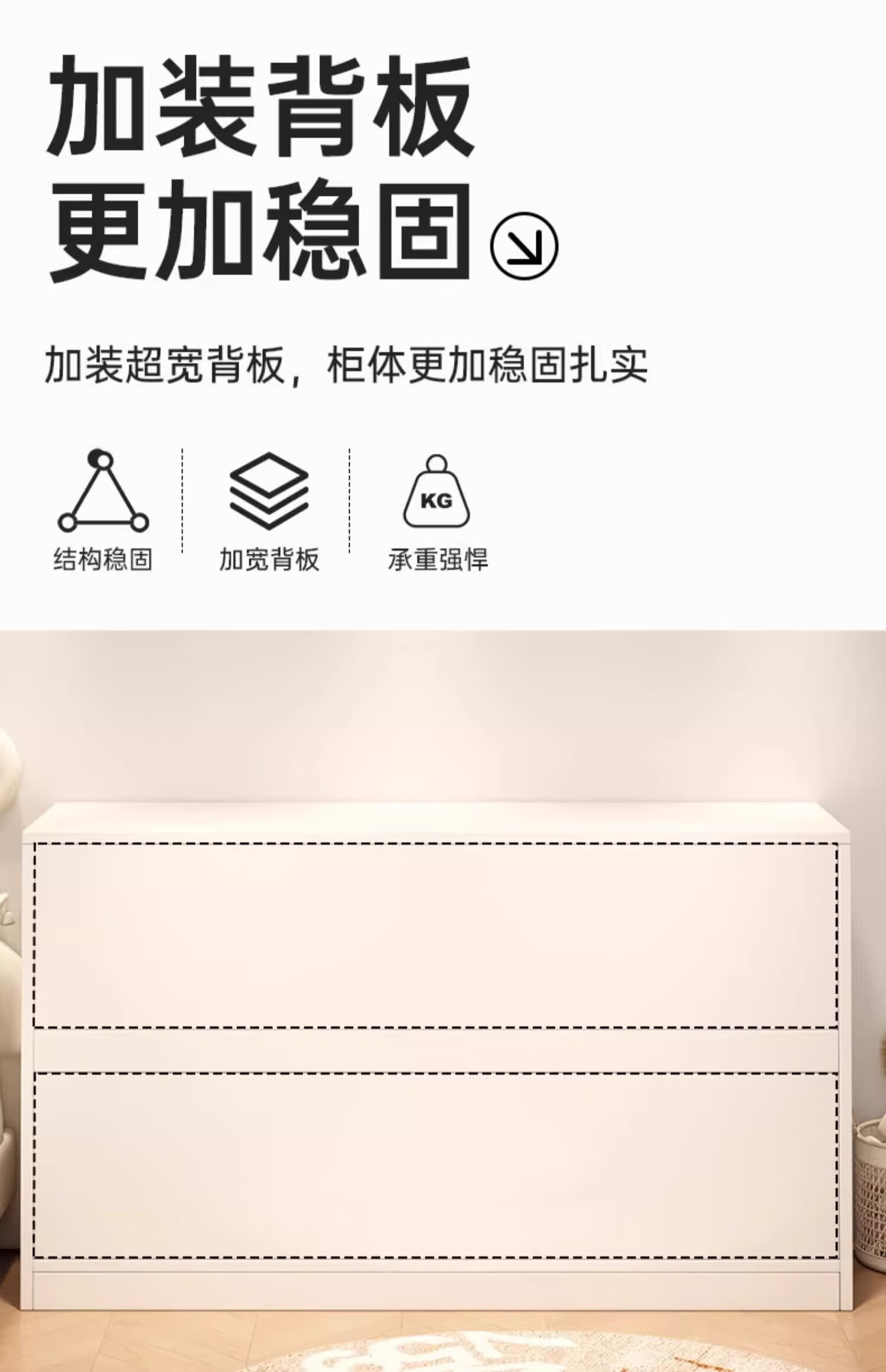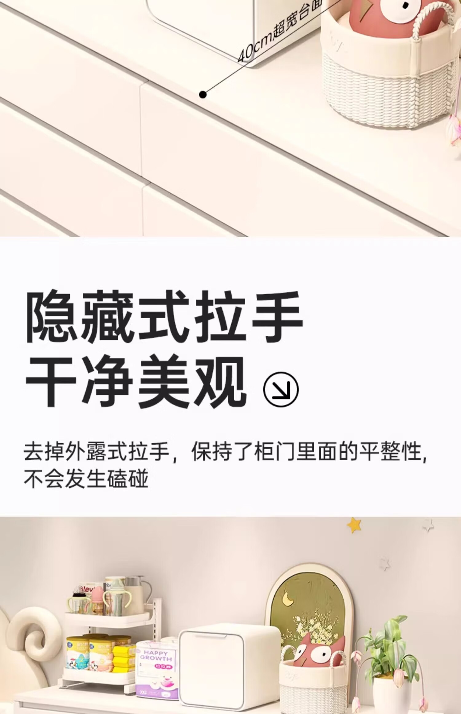 Drawer cabinet, living room, cream style bedside table, baby feeding table, bedroom storage storage cabinet, side cabinet, storage cabinet, chest of drawers, double rows and eight drawers, warm white, 120CM extended
