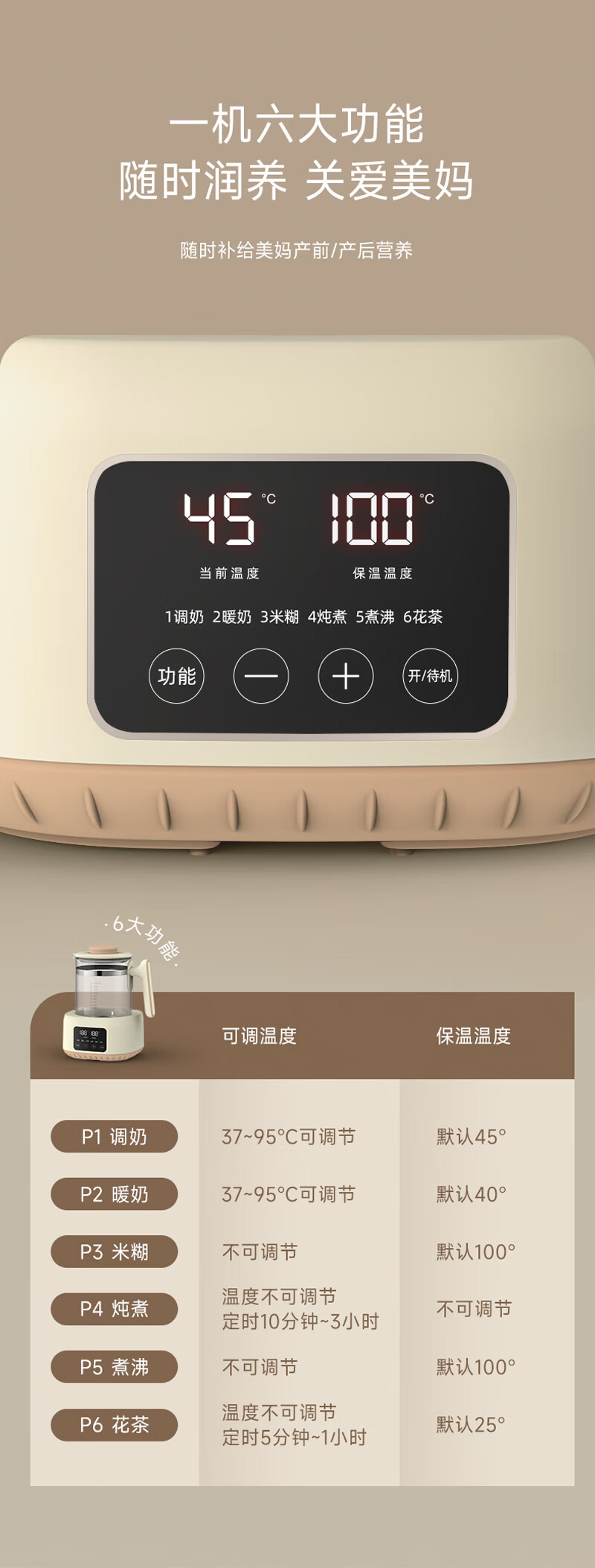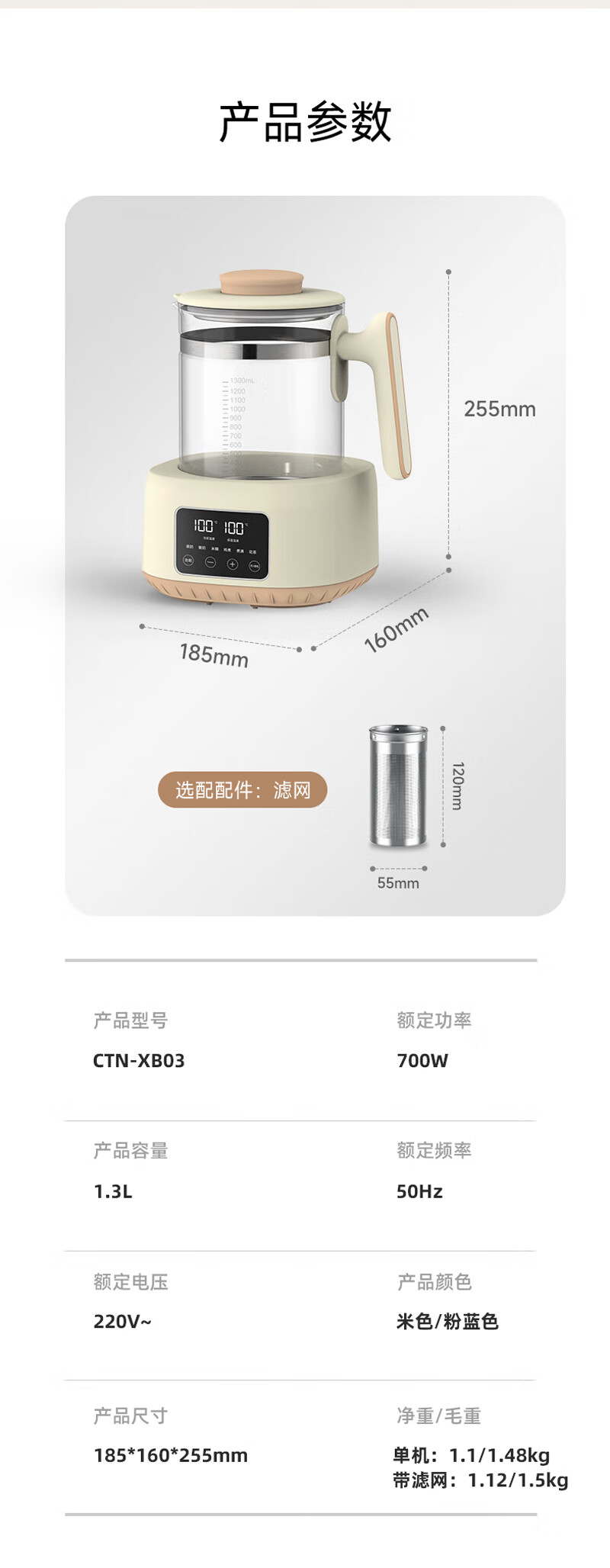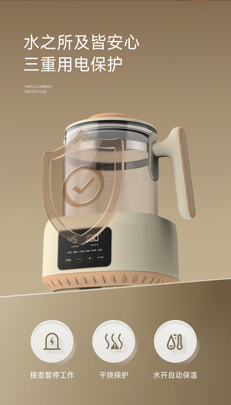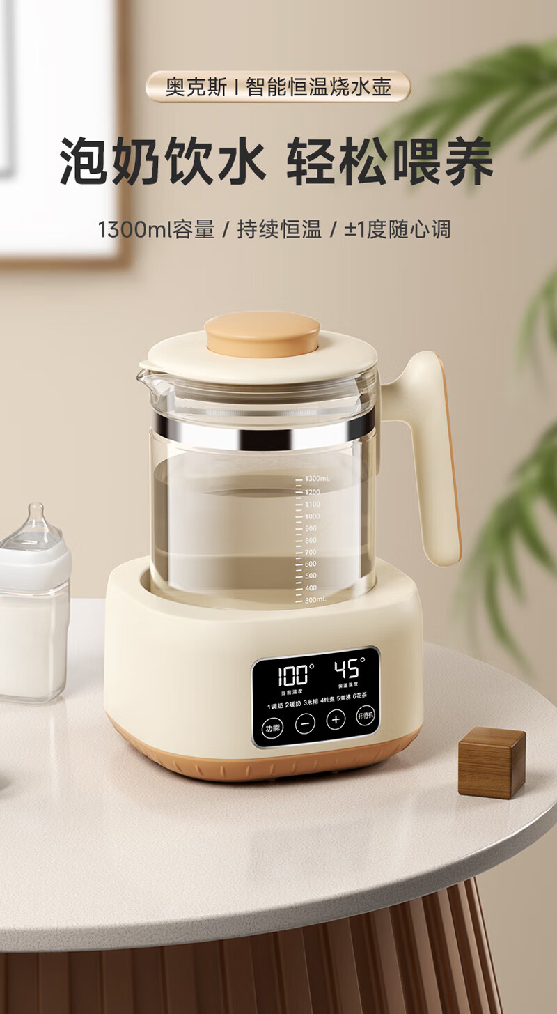 Oaks (AUX) health kettle, kettle, hot water kettle, constant temperature kettle, health kettle, teapot, teapot, teapot all-in-one machine, fully automatic glass insulation, small household 1.3L YSW141 milk mixer, off-white 304 standard model