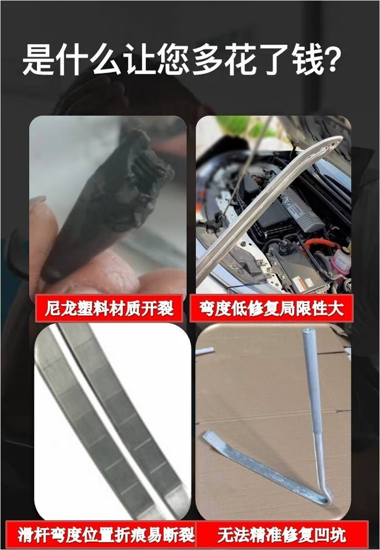 Special sliding rod for dent repair tool for construction vehicles. Paint-free sheet metal fender and fender repair tool for dents. One manganese steel slide rod with imported head and three corner elbows.