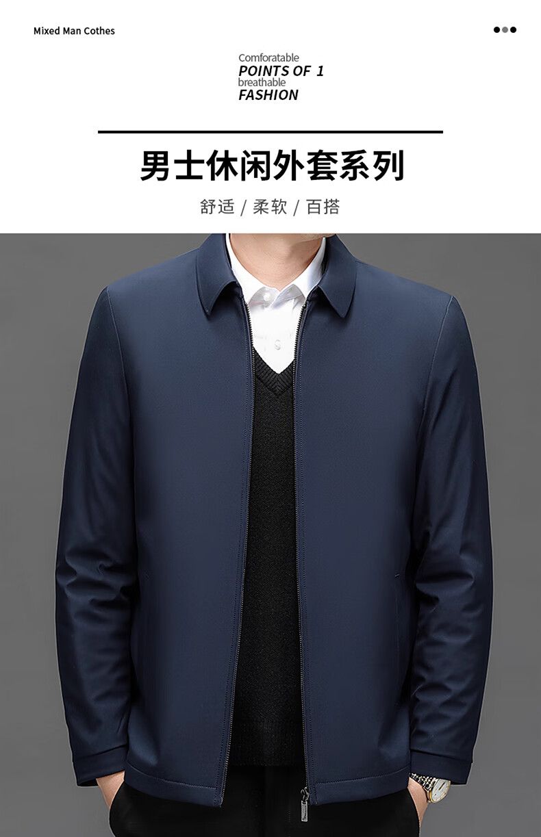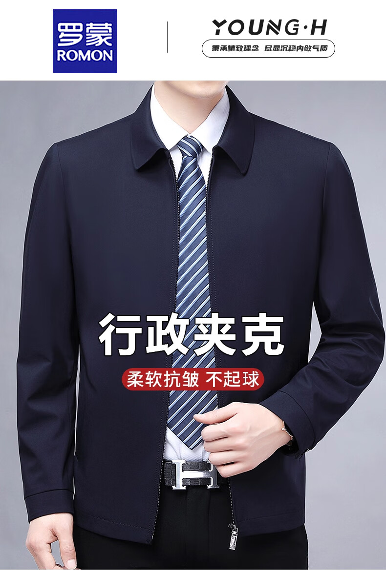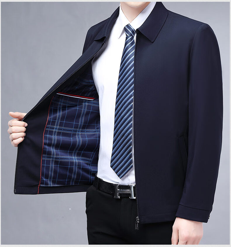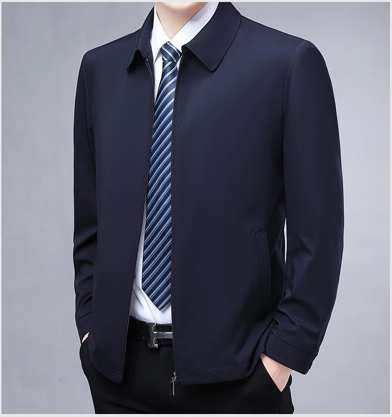 Luo Meng High-end Executive Jacket Men's 2025 Spring and Autumn Business Casual Jacket Leader Secretary Cadre Style Middle-aged Jacket Navy Blue Lapel XL (180) Recommended 140-155 Jin Jin equals 0.5 kg