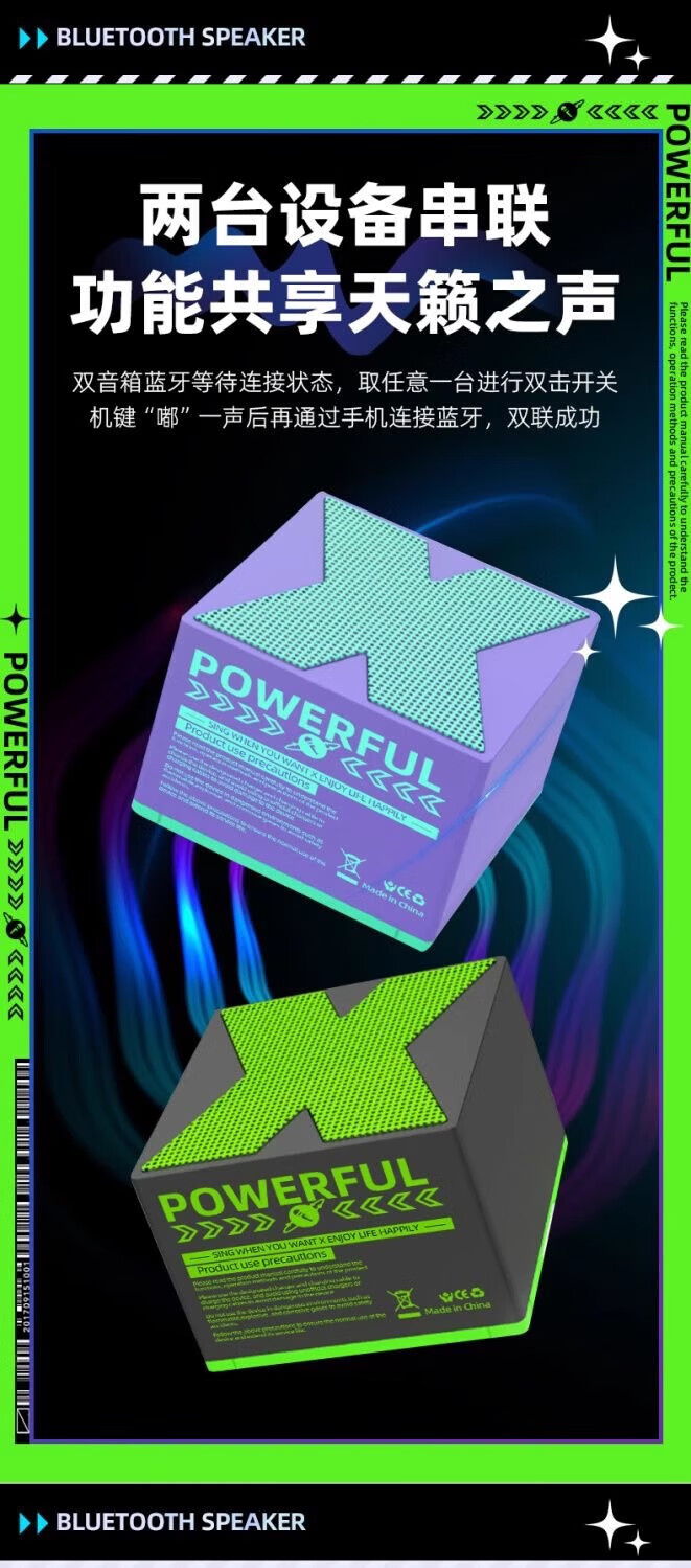 Trendy Car Wireless Bluetooth Audio Subwoofer Treble Quality Mini Series Small Portable Speaker X3 Electric Green - Panoramic Surround Berlin Sound Quality + Series