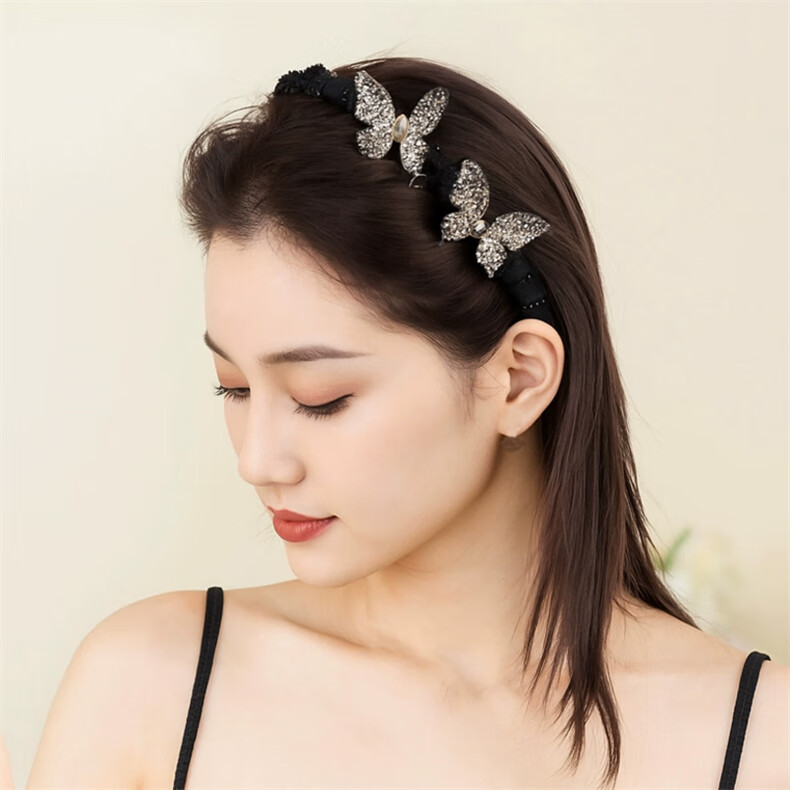 Wanyao light luxury high-end rhinestone starlight butterfly tooth comb hairband women's 2025 new high skull headband hairpin headwear starlight butterfly hairband