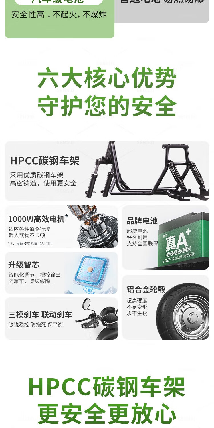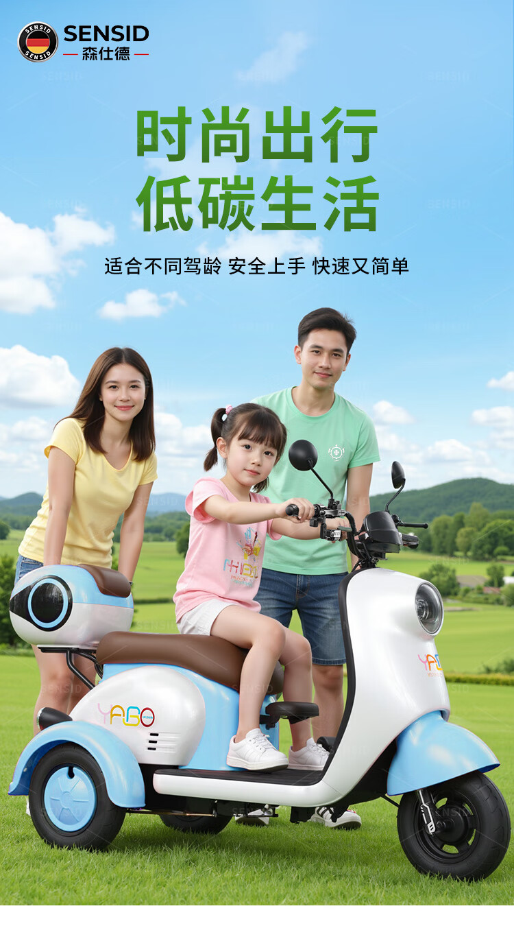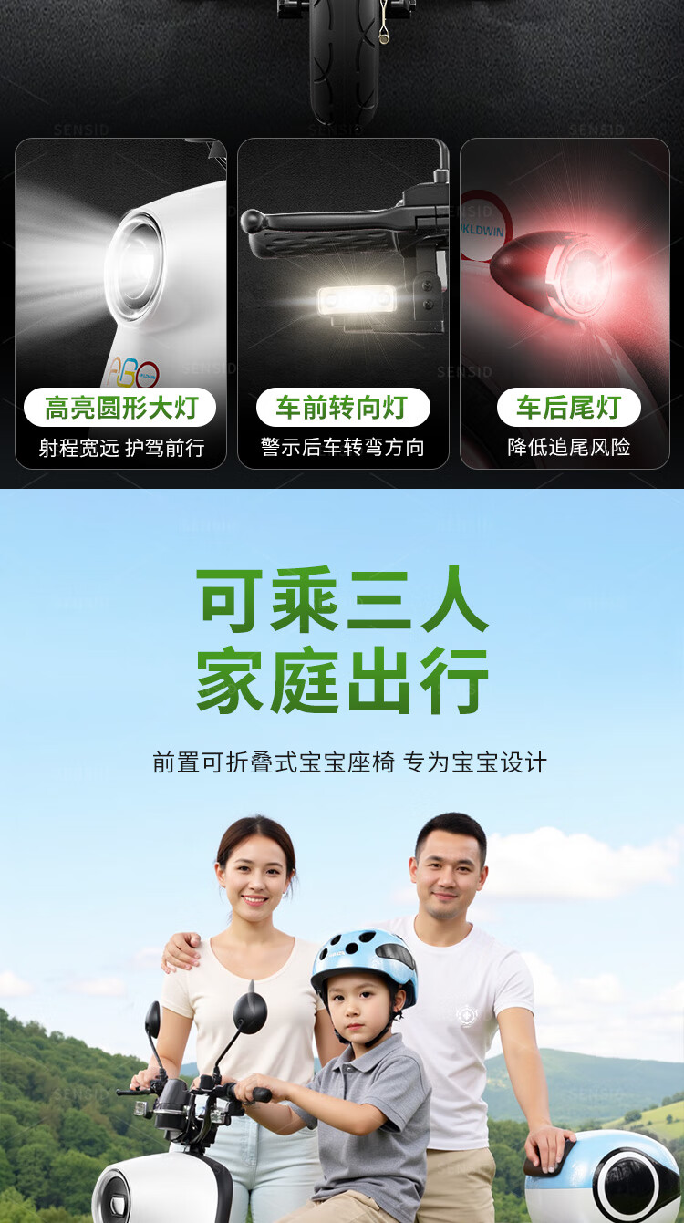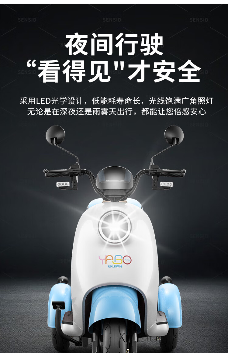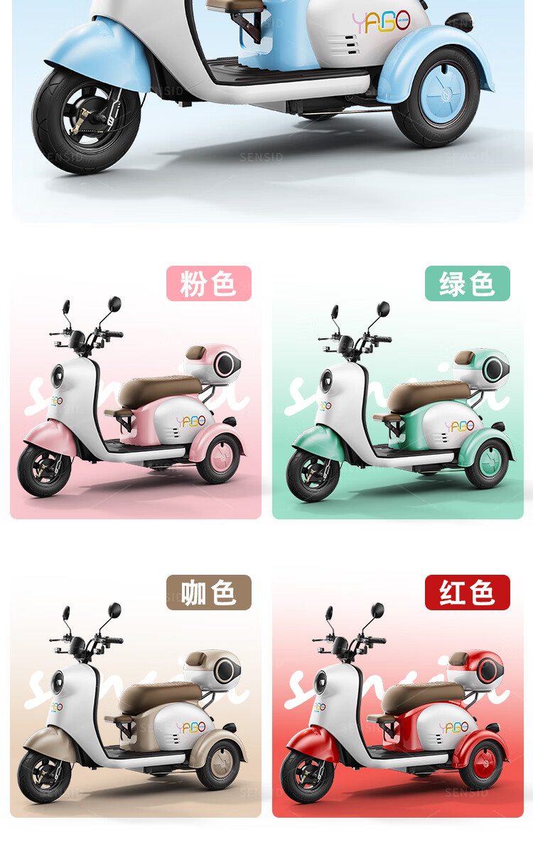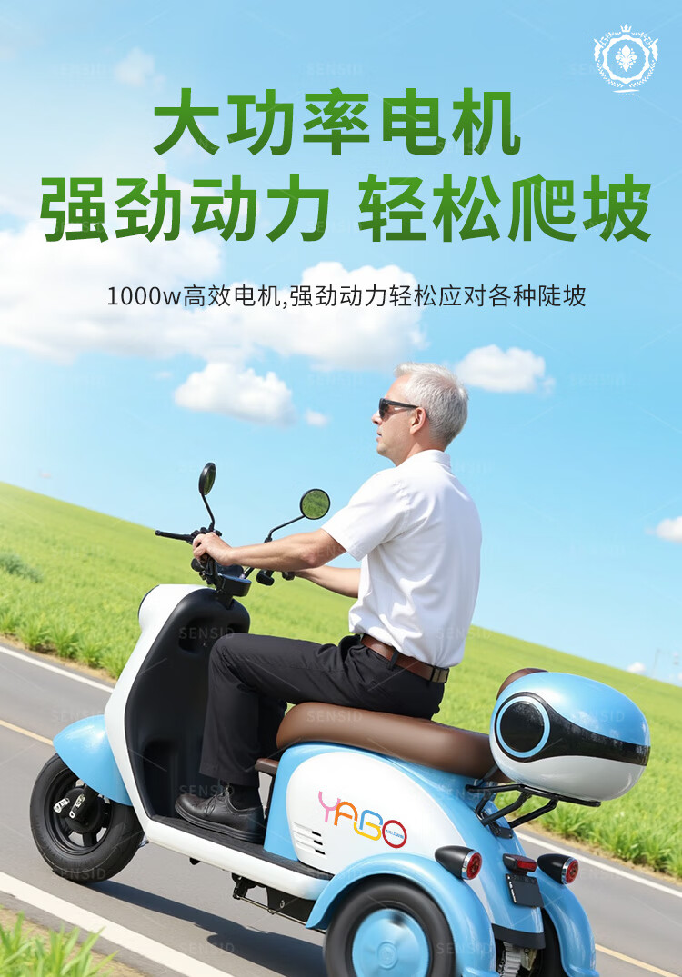Senshide Beetle electric tricycle small household electric tricycle for the elderly to pick up and drop off children battery car city version 48V24A Chaowei Black Gold + battery life 90 miles