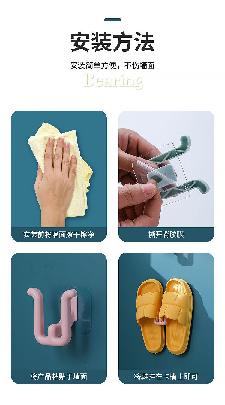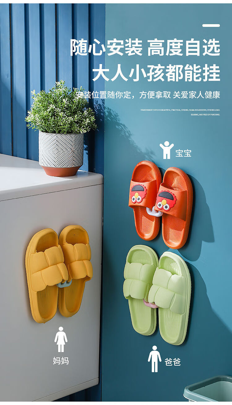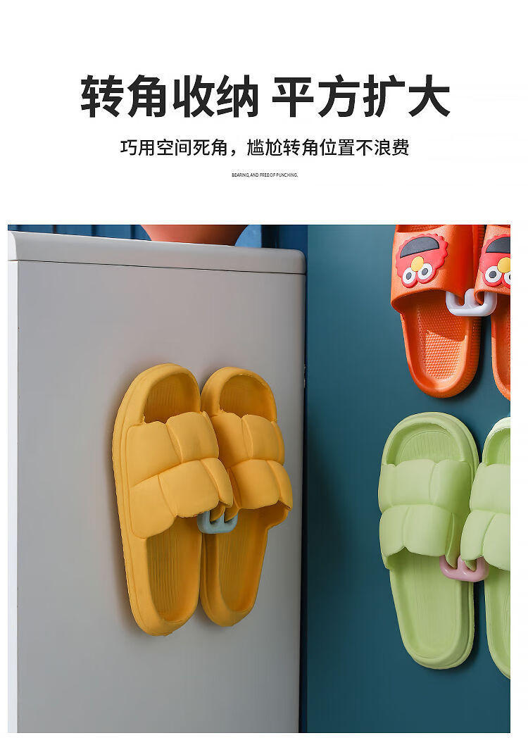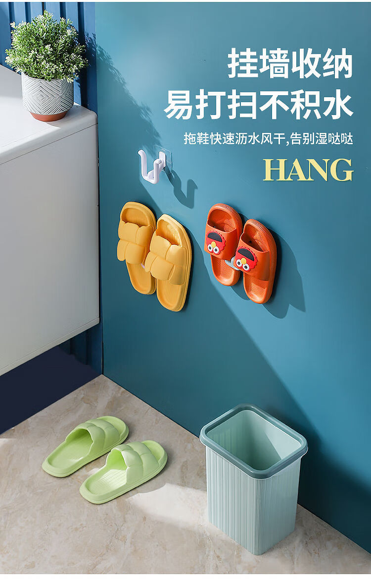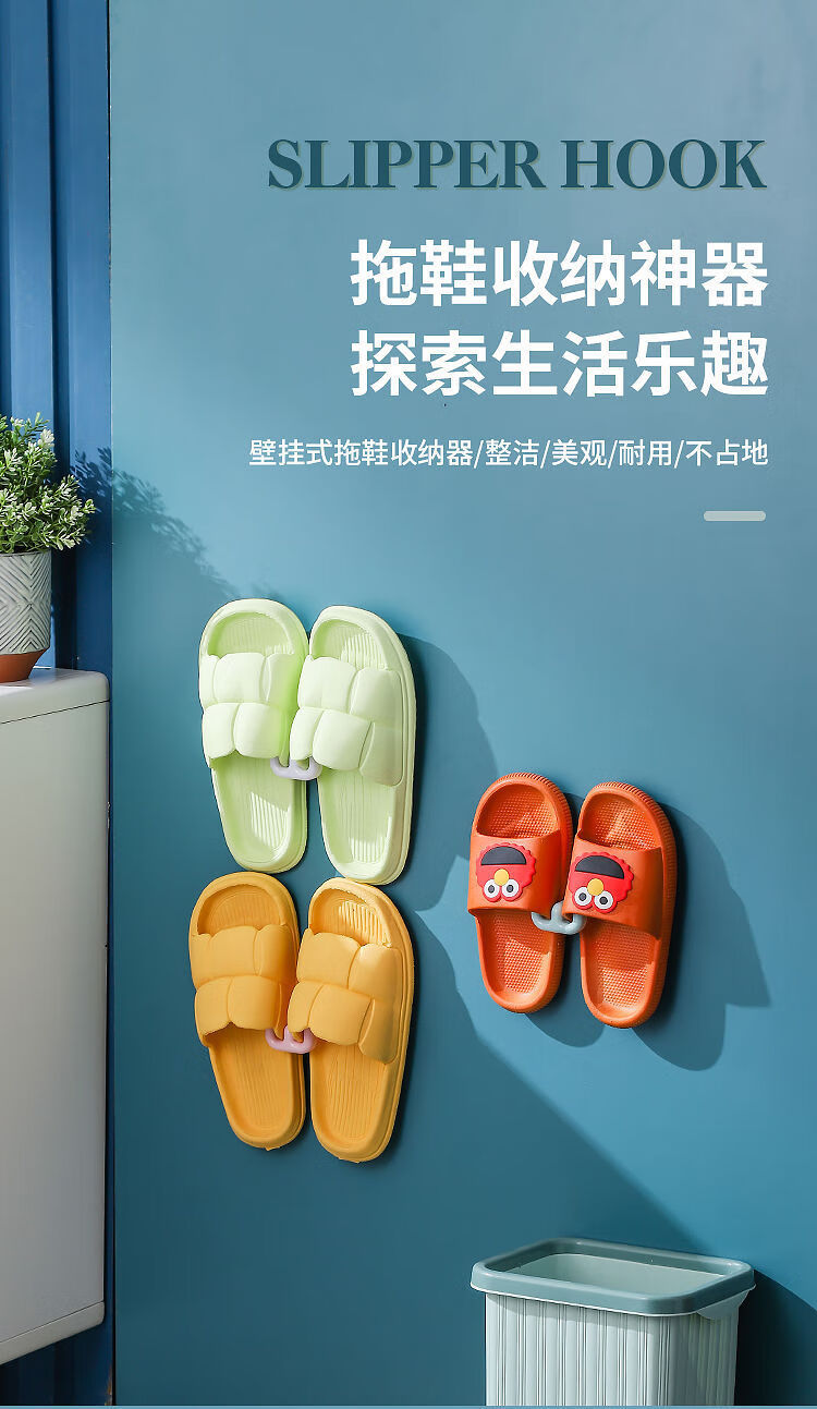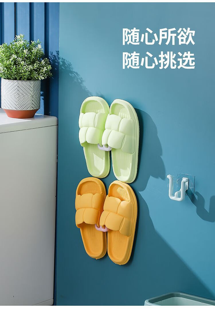 Bathroom slipper rack wall-mounted indoor hook no punching bathroom storage shoe rack sticky hook bathroom slipper rack 3 slipper racks (random colors)