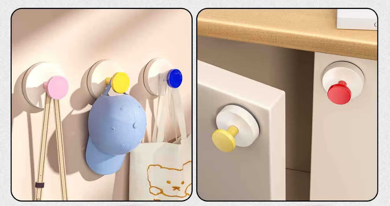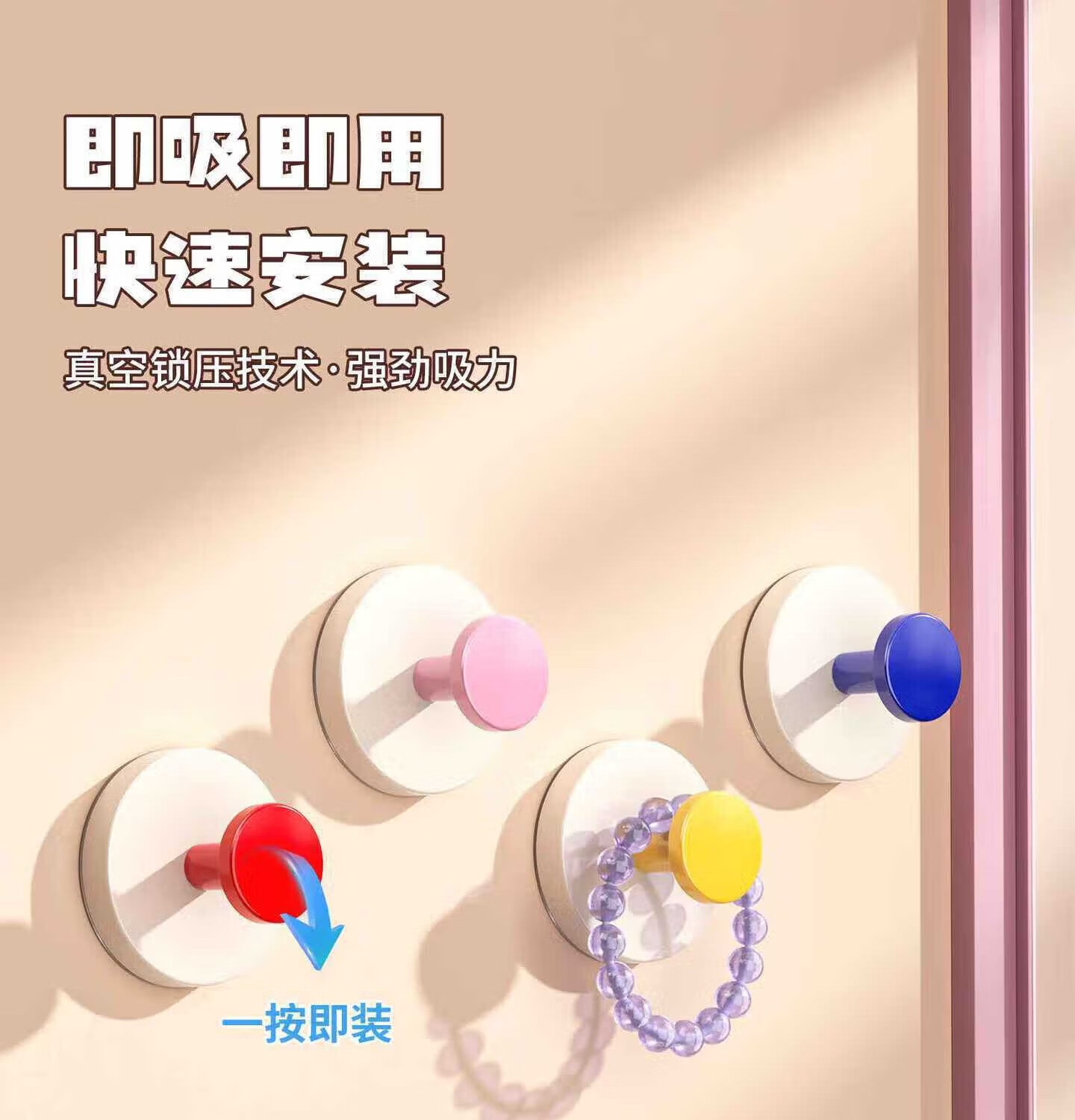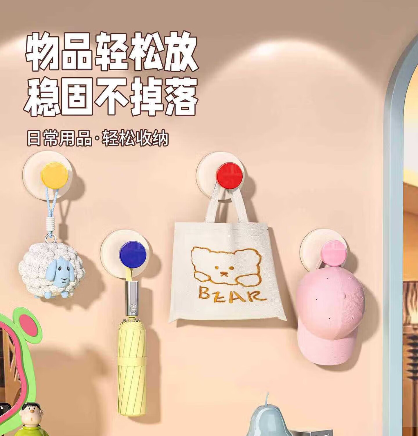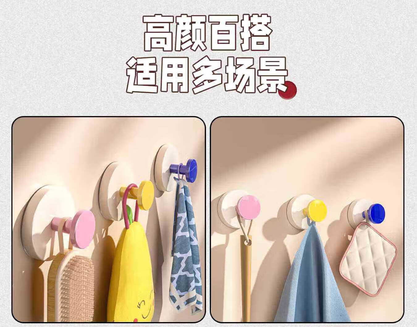 Dopamine suction cup hooks, strong load-bearing, no punching, bathroom toilet hooks, adhesive door key storage rack, 3 dopamine suction cup hooks (random colors)
