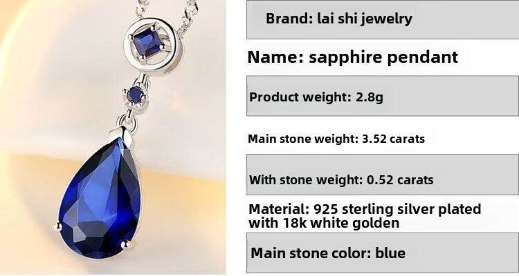 Sapphire Pendant Women's Colorful Gemstone Tanzanite Necklace Sterling Silver Plated 18K Gold Fashionable Colorful Treasure Treasure