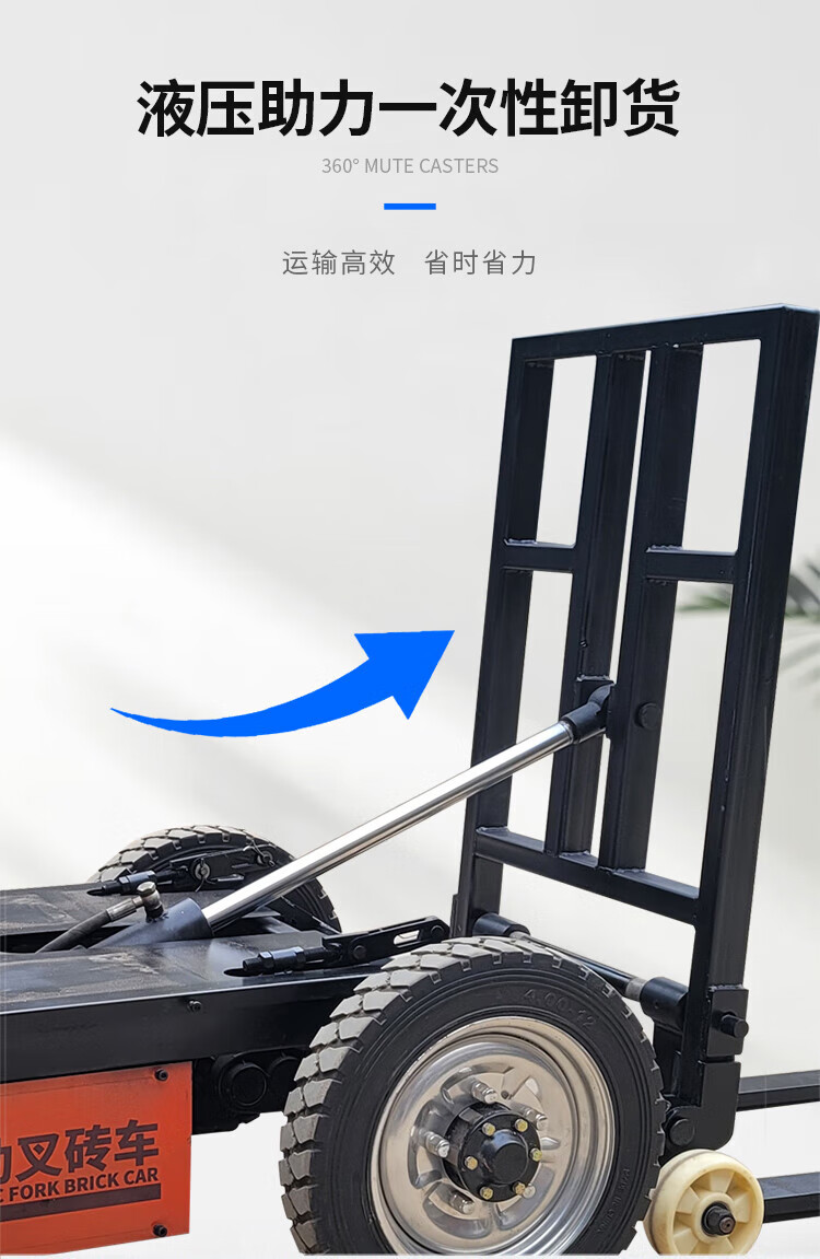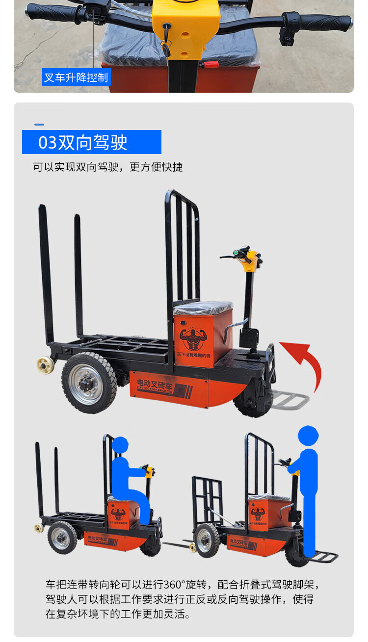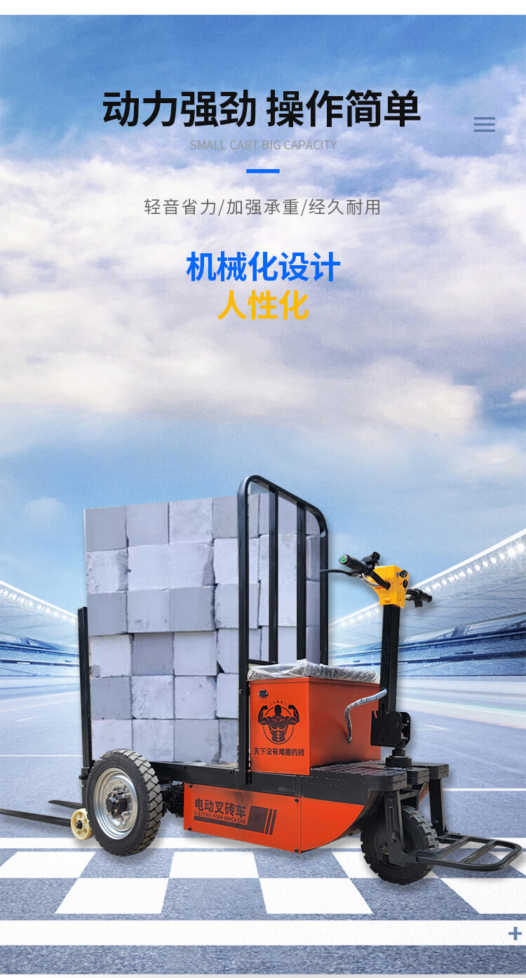 BAI MU GE Engineering Electric Three-wheeled Brick Pulling Truck Hydraulic Dump Self-Top Back Brick Truck Fully Automatic Dump Truck Type Fork Brick Construction Site Electric Dump Forklift Brick Truck (Standing Ride Standard Version)