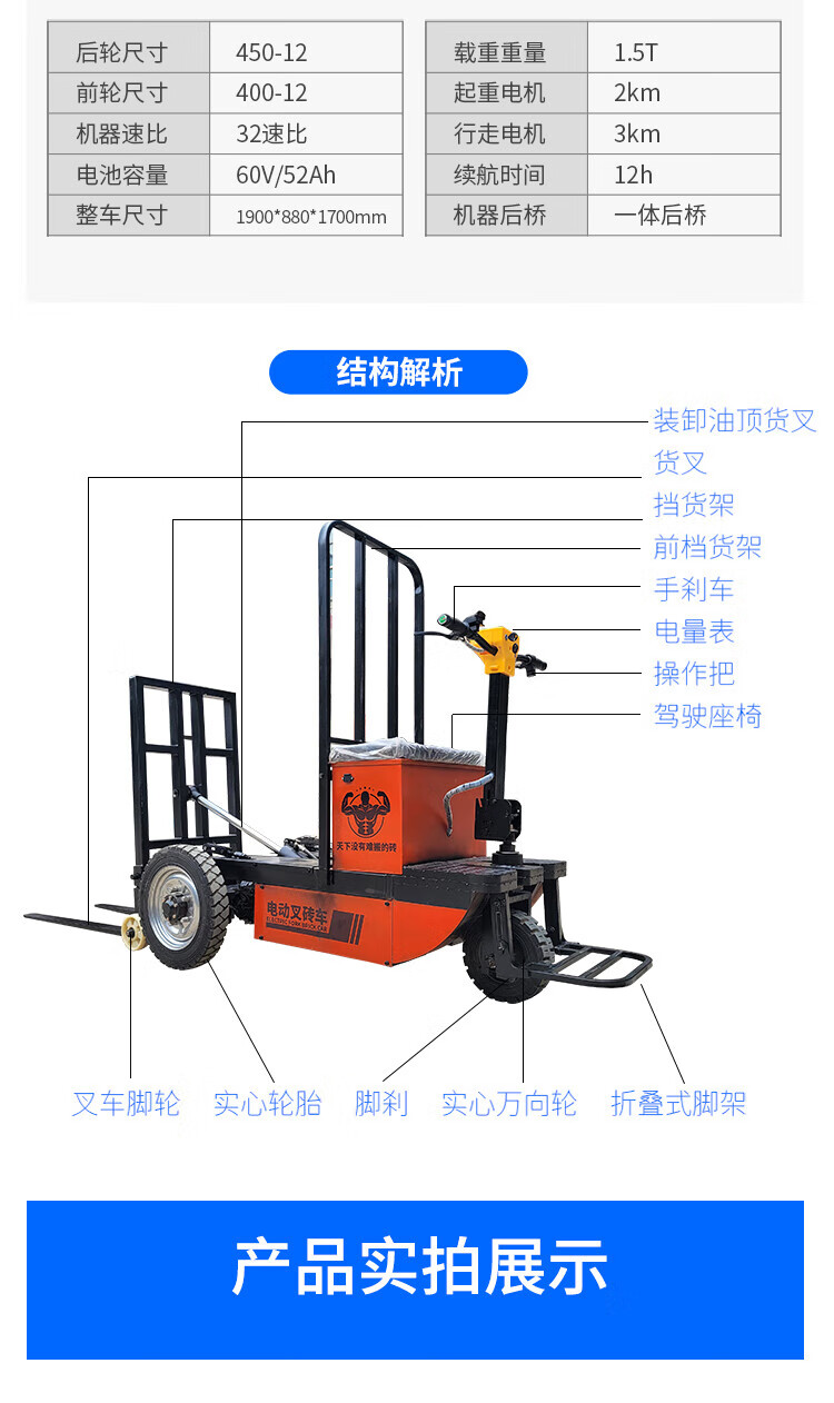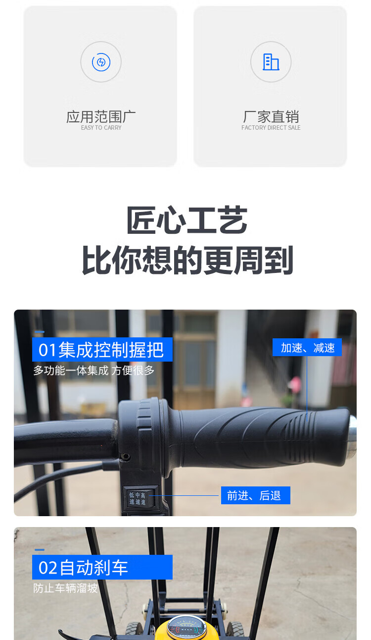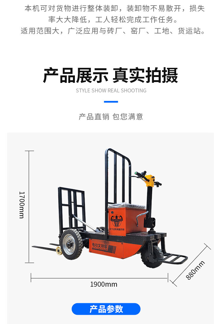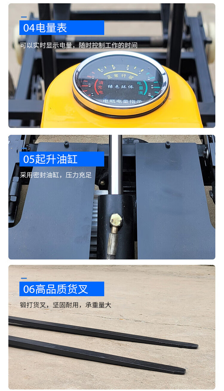 BAI MU GE Engineering Electric Three-wheeled Brick Pulling Truck Hydraulic Dump Self-Top Back Brick Truck Fully Automatic Dump Truck Type Fork Brick Construction Site Electric Dump Forklift Brick Truck (Standing Ride Standard Version)