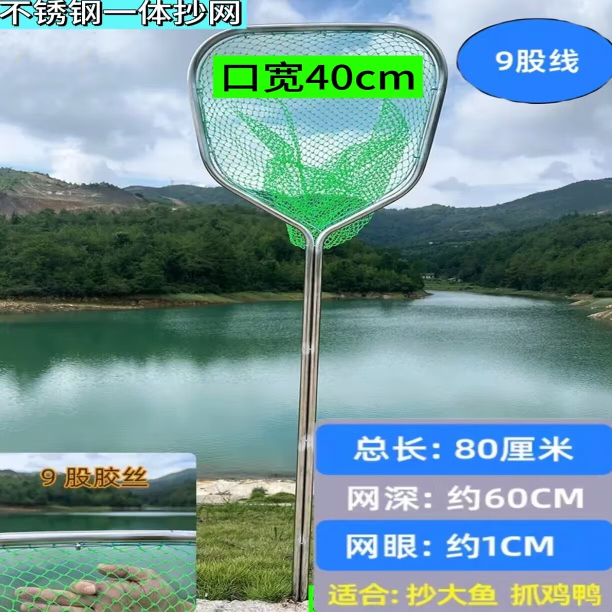 Super strong and durable one-piece stainless steel copy net for big fish and big things, fishing net copy net bag, fish copy net supplies, total length 80 cm, 42 strands of plastic wire mesh, mesh 2.5cm