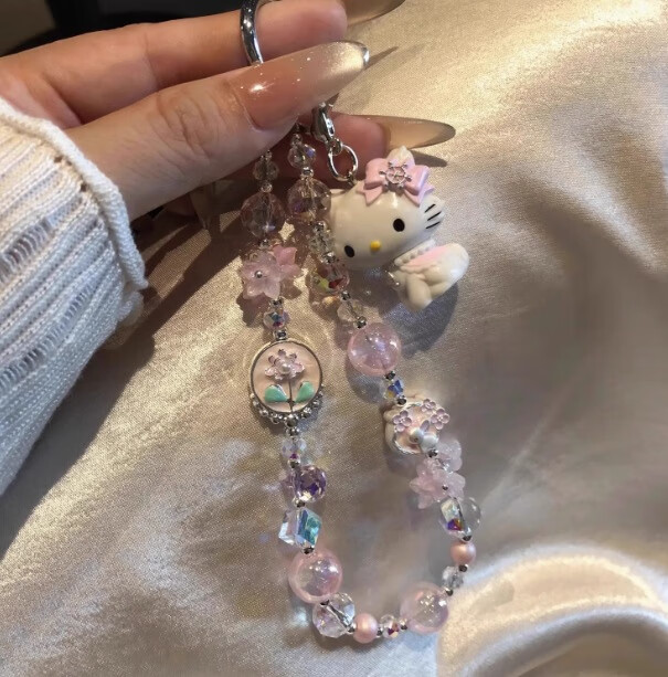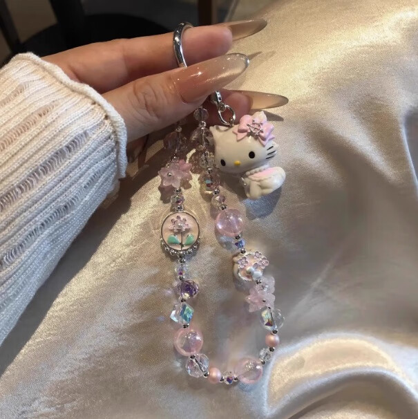 Xingyin mobile phone lanyard wrist hanging chain beaded girl's shiny high-end short chain anti-lost and fall-resistant dopamine cute little fresh pink pink control girl's heart kt lanyard pendant mobile phone lanyard wrist hanging chain Mary cat flower + TPU transparent patch