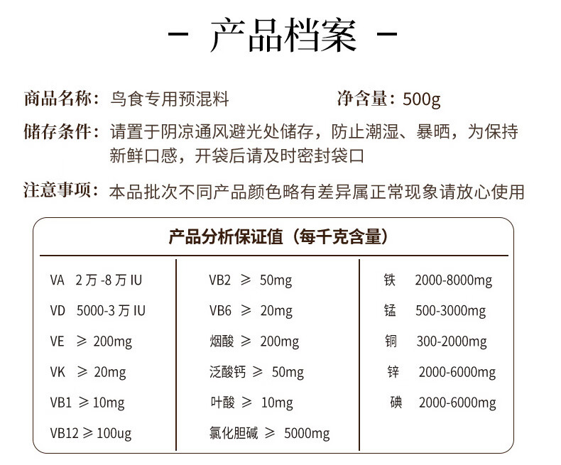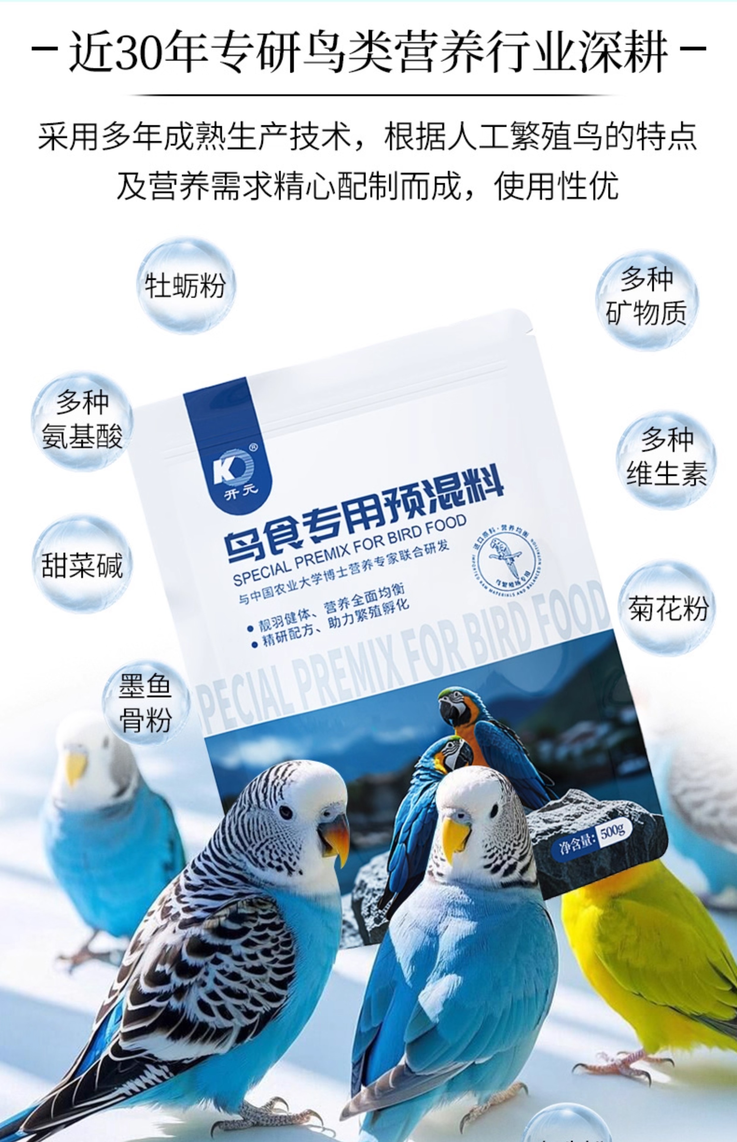 Kaiyuan bird special premix bird food feed additive egg millet bird food nutritional powder amino acid breeding egg production 100g
