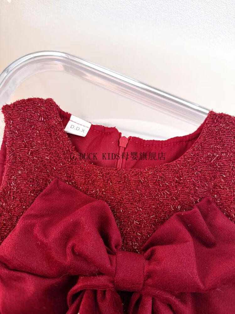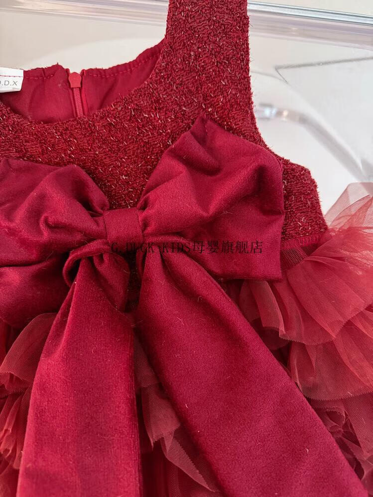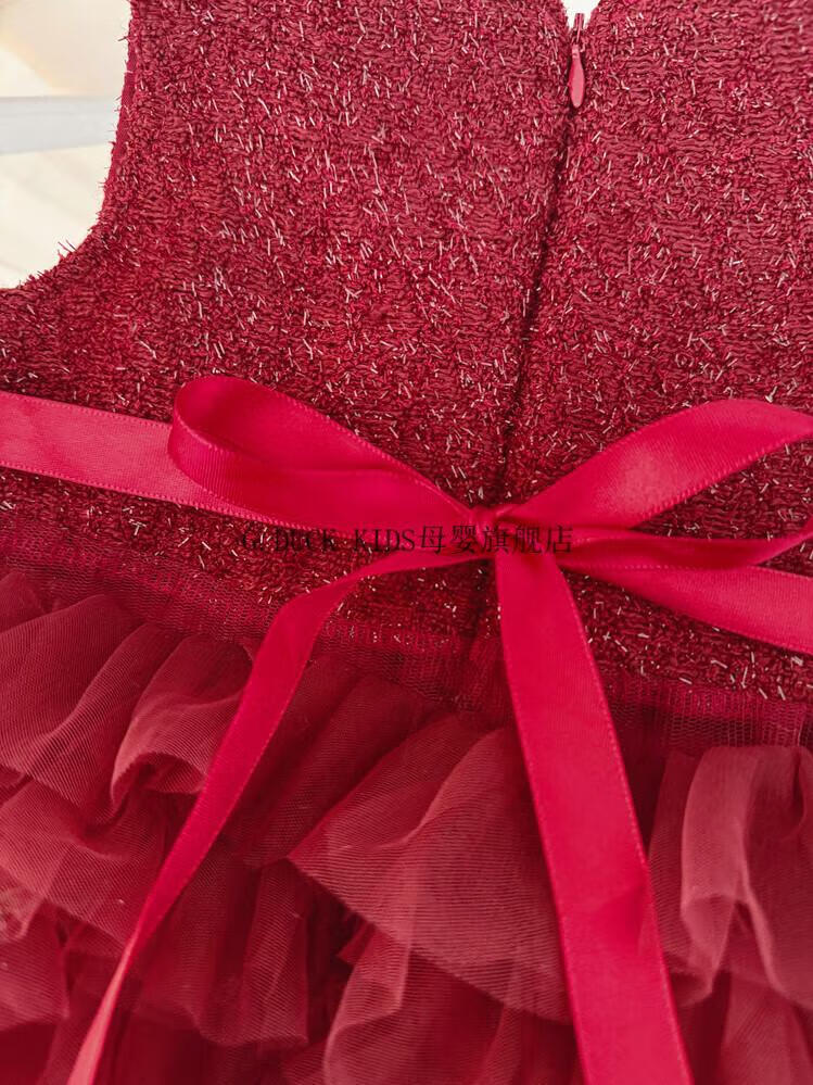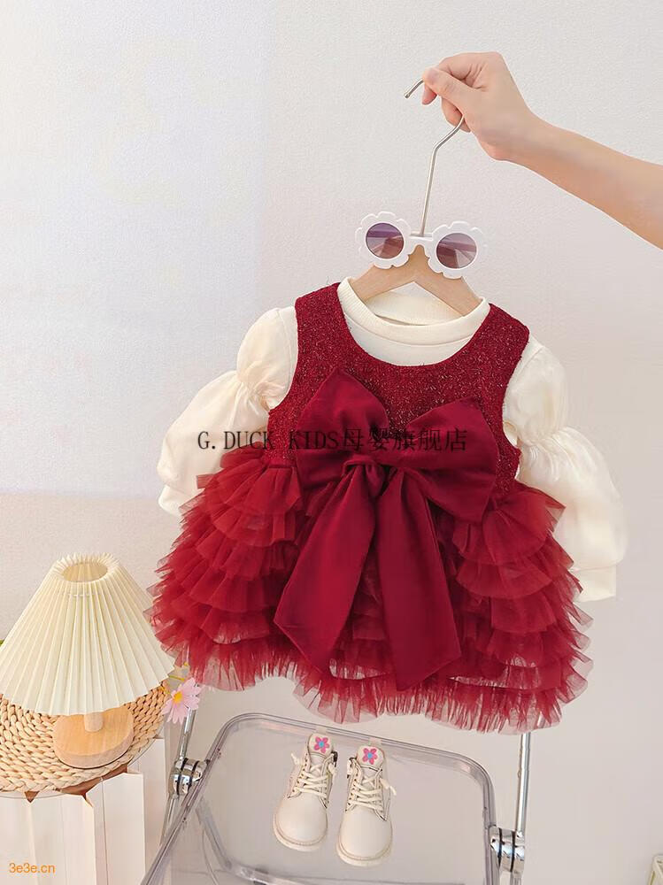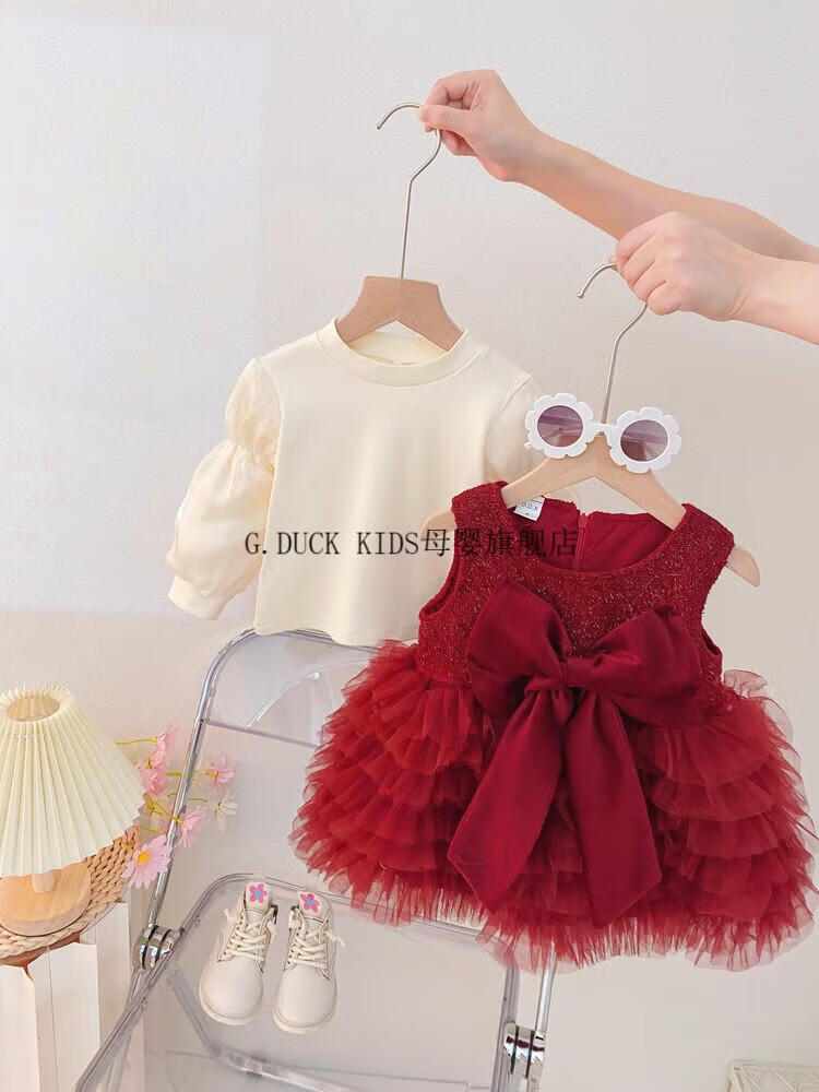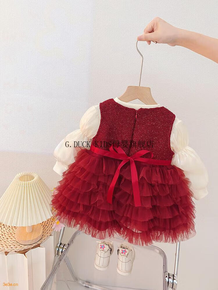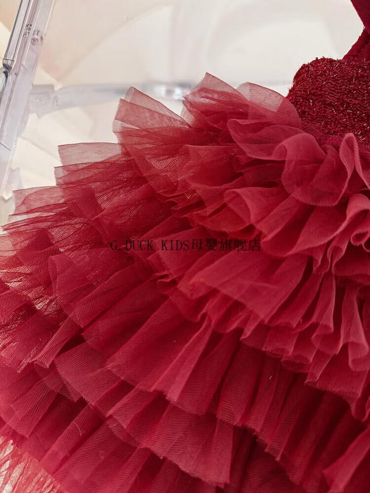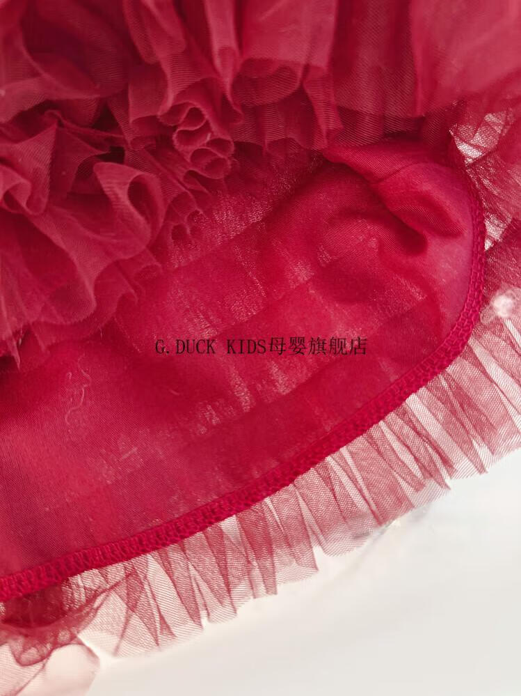 G.duck little yellow duck one-year-old baby dress girl dress autumn full moon party princess dress big bow tutu skirt red 90 cm