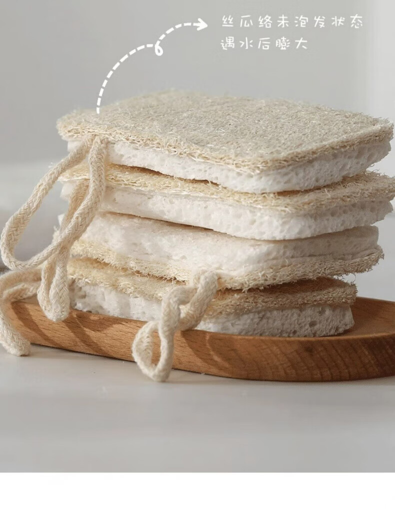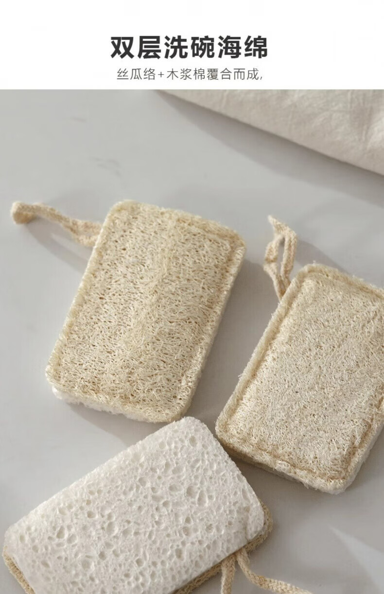 AILUKI Japanese loofah dishcloth sponge double-layer loofah pulp scouring pad kitchen scrubbing pot special cleaning and decontamination Japanese quality loofah_4 pcs_with lanyard
