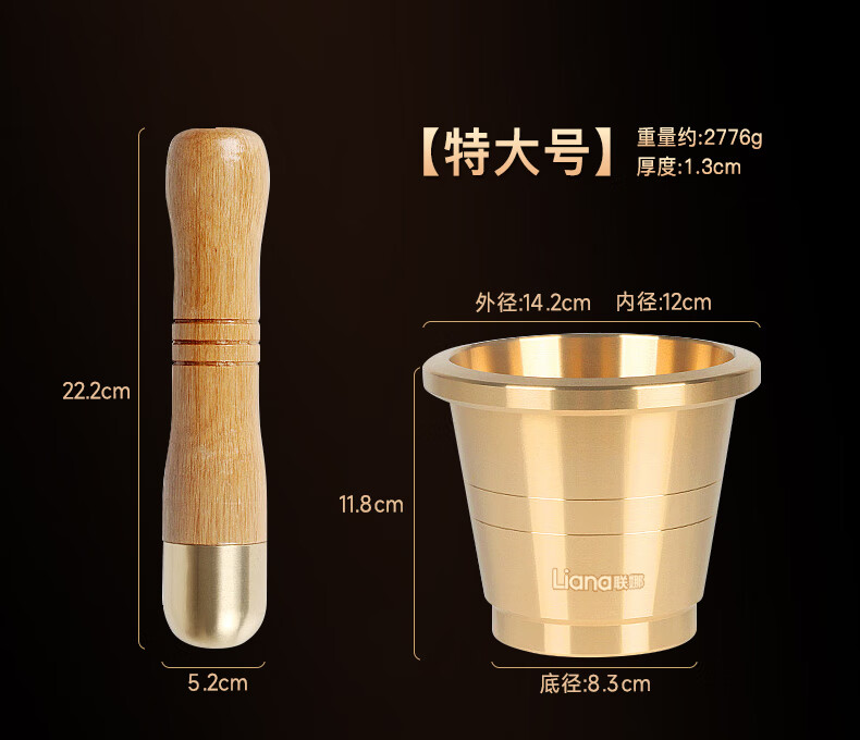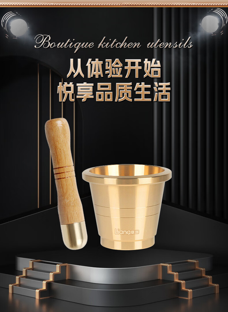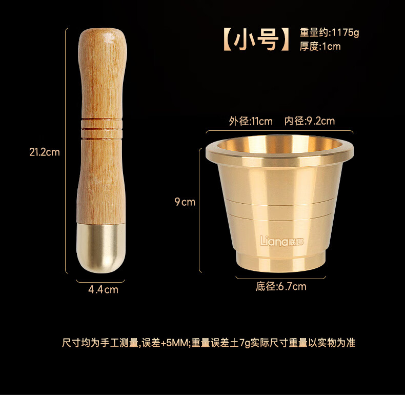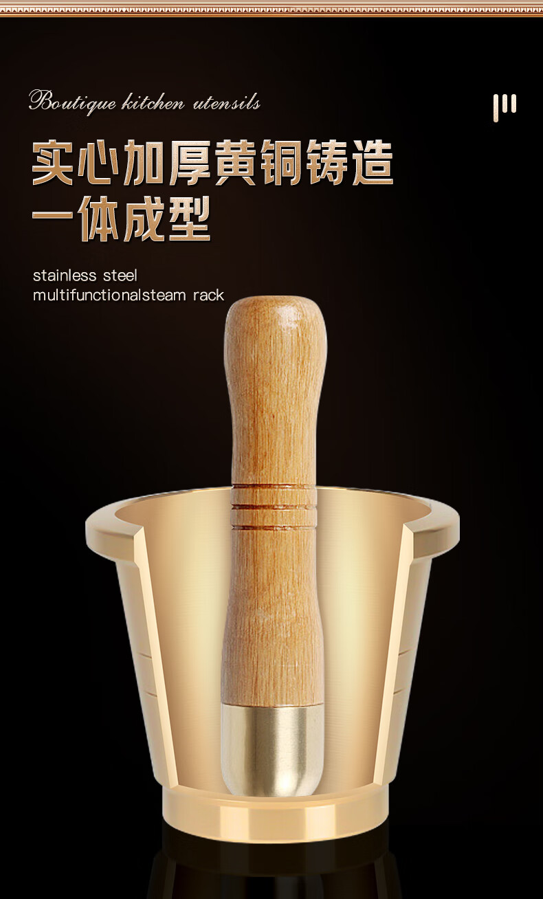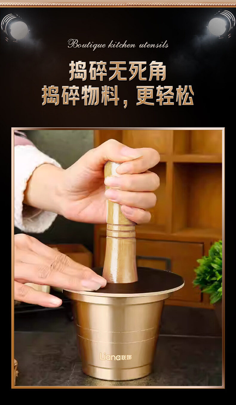 Lianna brass solid garlic pounder copper cup medicine cup Chinese medicine pound medicine jar medicine bowl kitchen grinder medicine jar jar grinding extra thick brass garlic pounder small size free 4-piece set