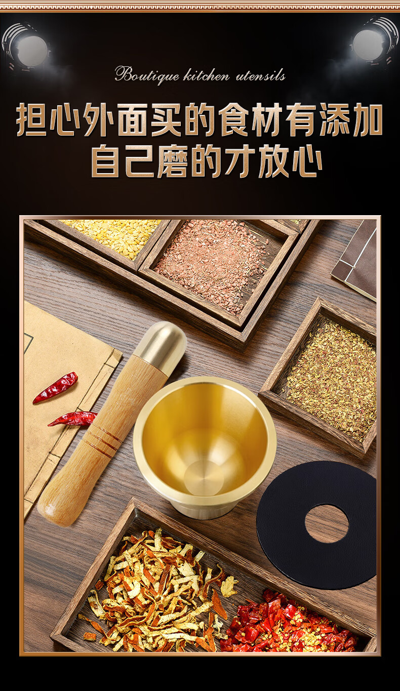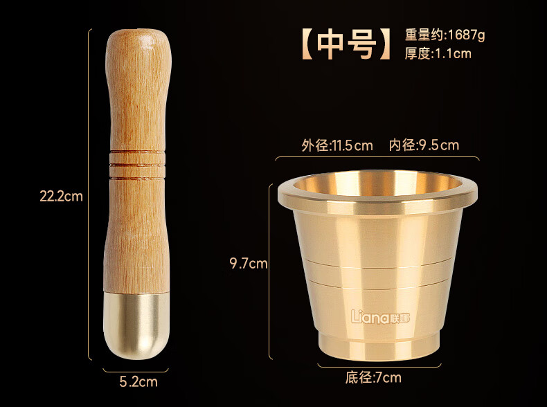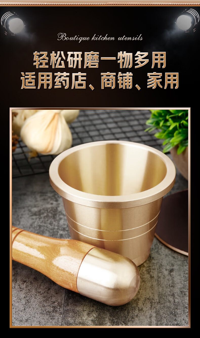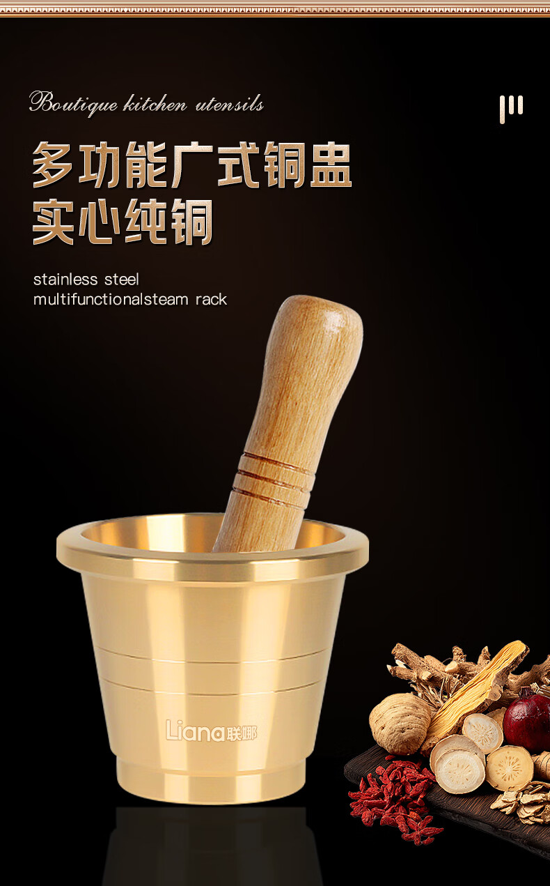 Lianna pure copper medicine jar household garlic pounder garlic masher Chinese medicine pounder medicine cup medicine mortar medicine jar mortar copper cup extra thick brass garlic pounder small size free 4-piece set
