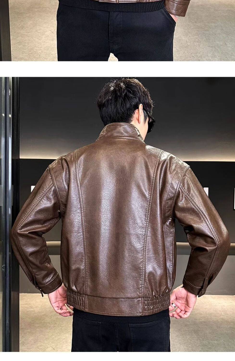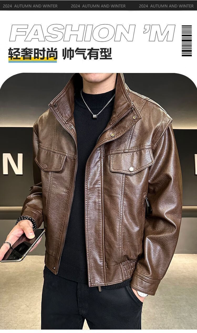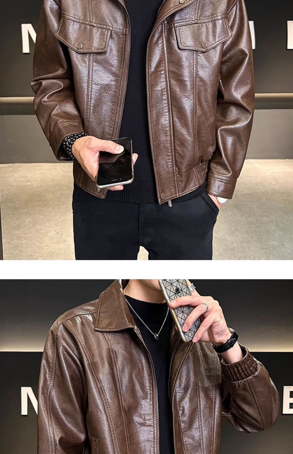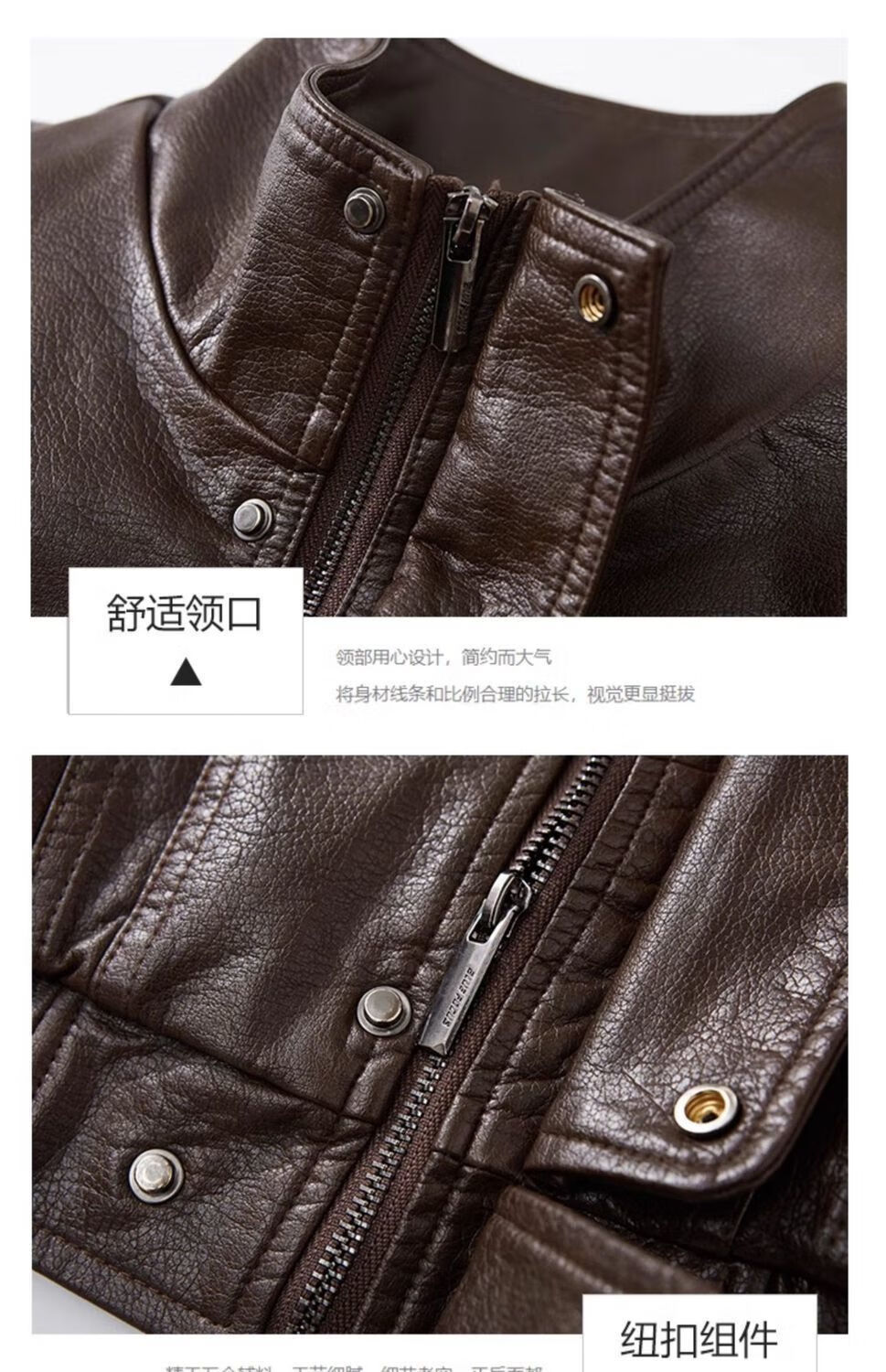 Playboy (PLAYBOY) Haining Motorcycle Leather Jacket Business Casual Lapel New Trendy Handsome Slim Men's Leather Jacket Short Style Brown 4XL Recommended 170-190 Jin Jin equals 0.5 kg