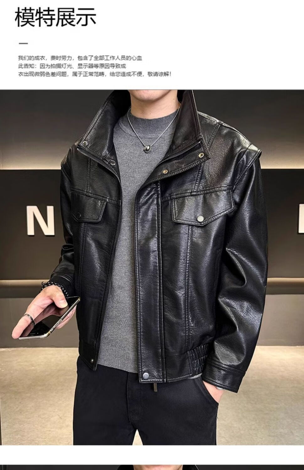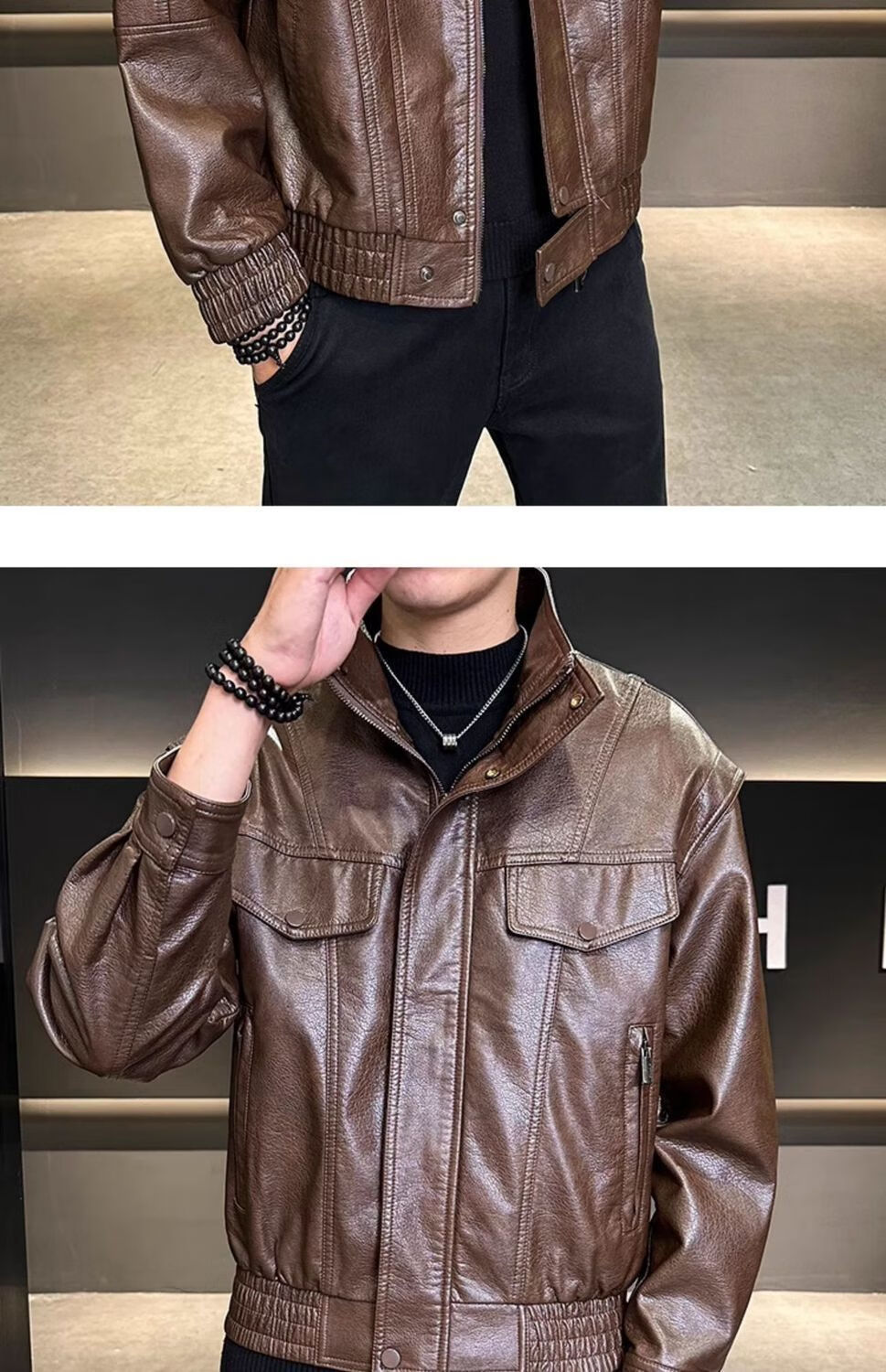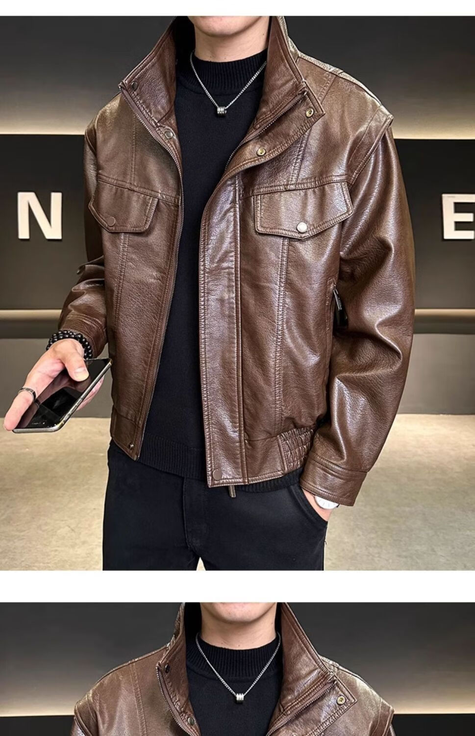 Playboy (PLAYBOY) Haining Motorcycle Leather Jacket Business Casual Lapel New Trendy Handsome Slim Men's Leather Jacket Short Style Brown 4XL Recommended 170-190 Jin Jin equals 0.5 kg