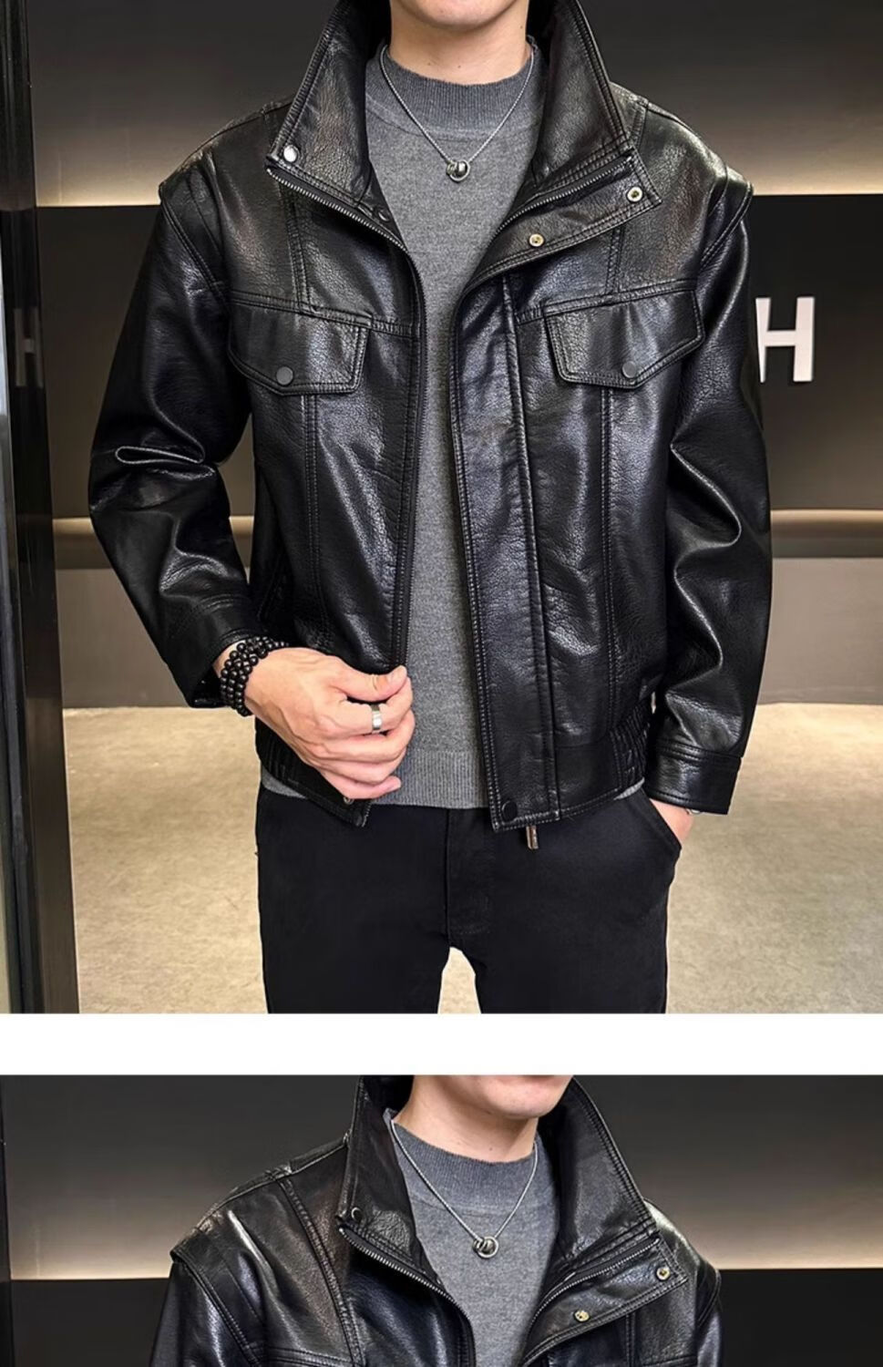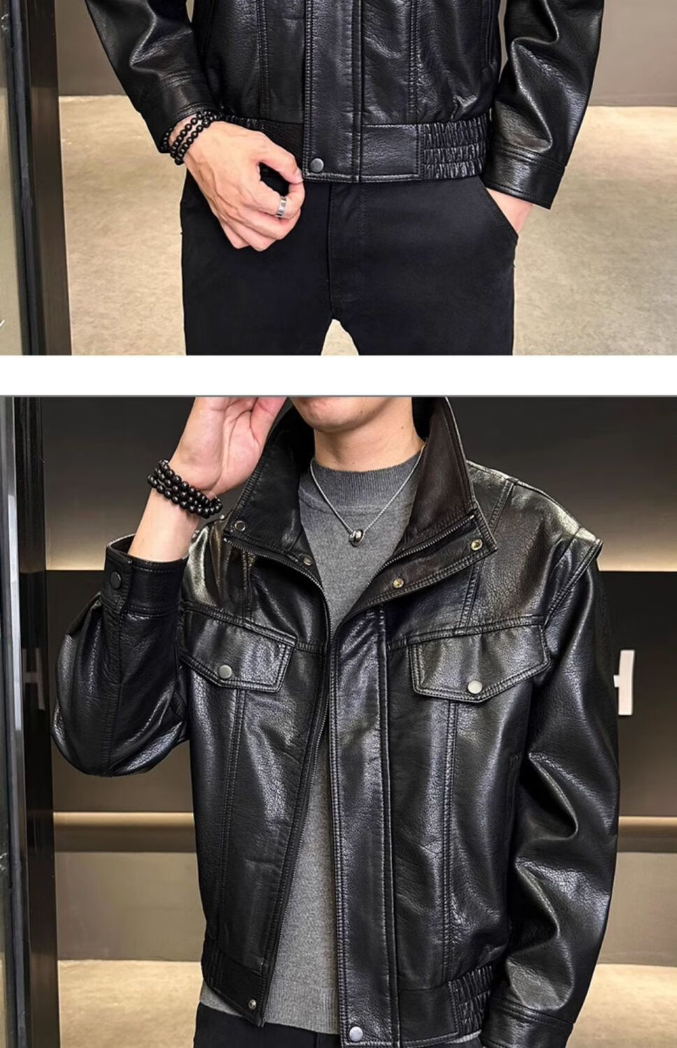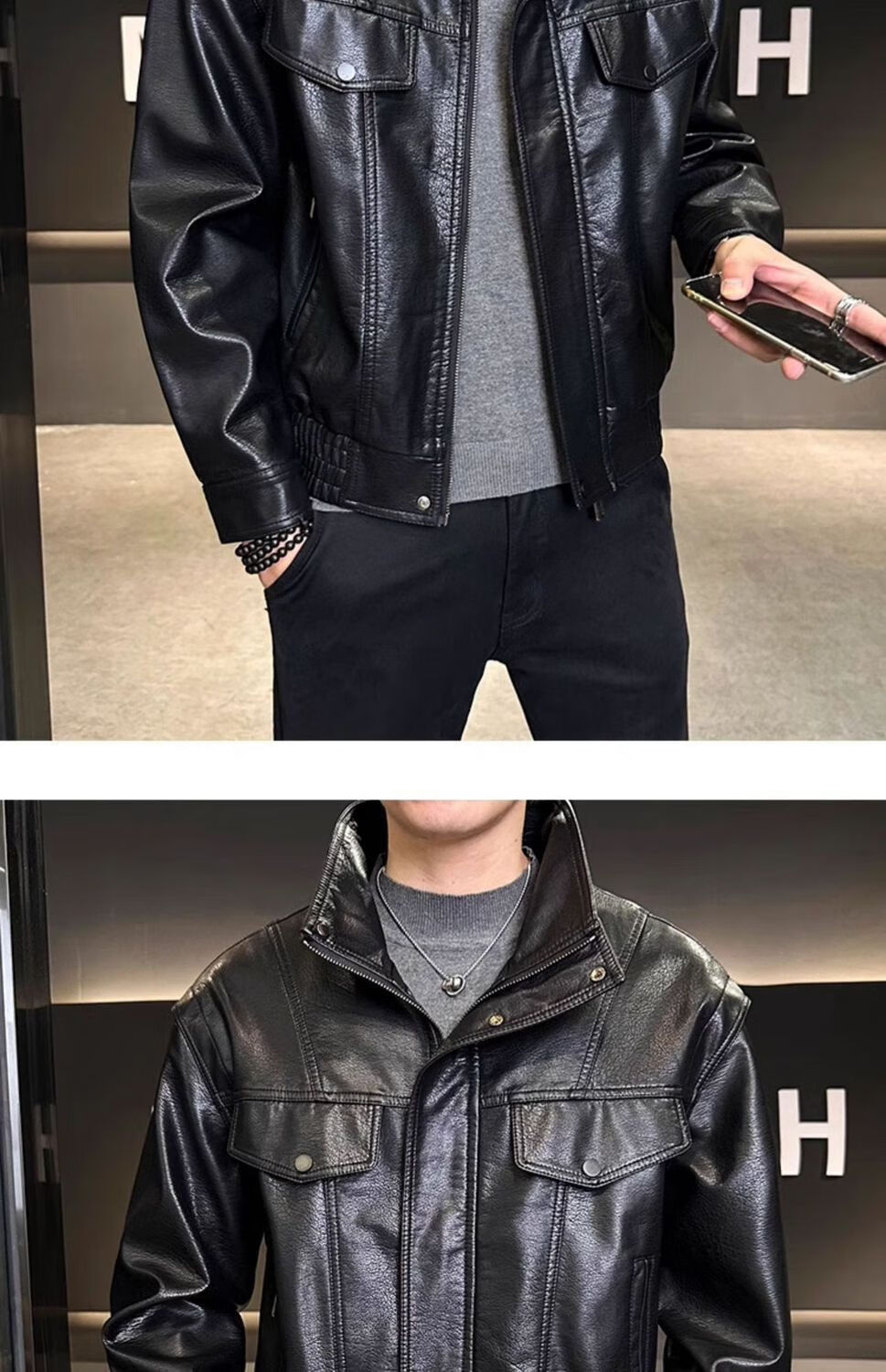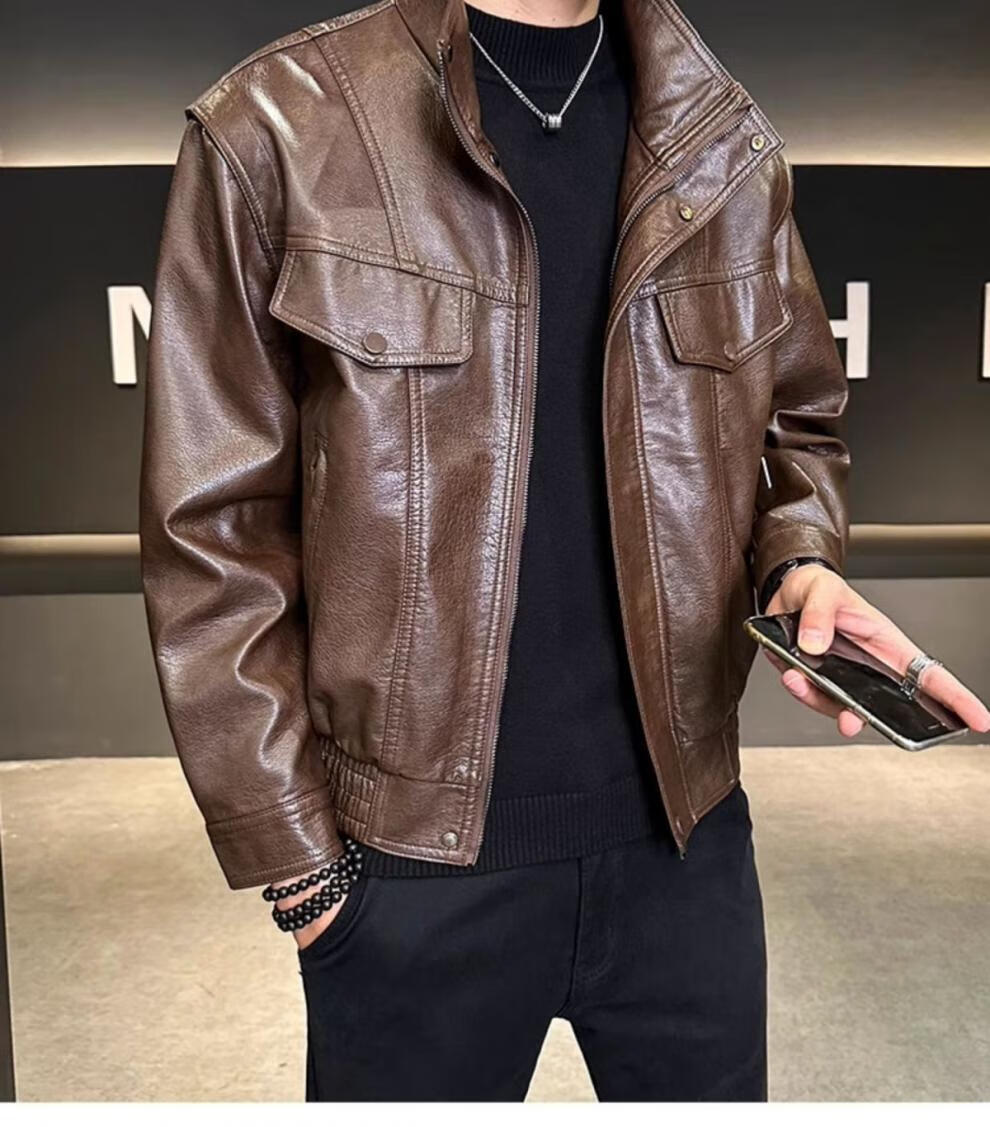 Playboy (PLAYBOY) Haining Motorcycle Leather Jacket Business Casual Lapel New Trendy Handsome Slim Men's Leather Jacket Short Style Brown 4XL Recommended 170-190 Jin Jin equals 0.5 kg