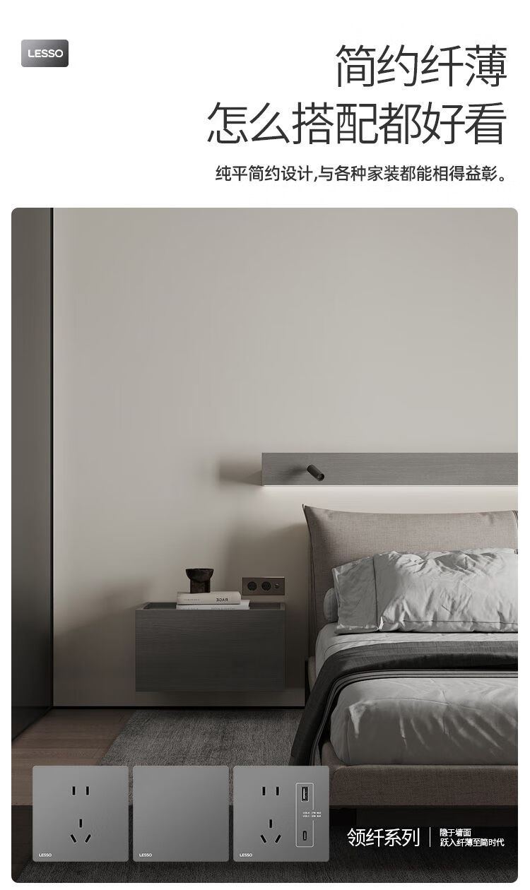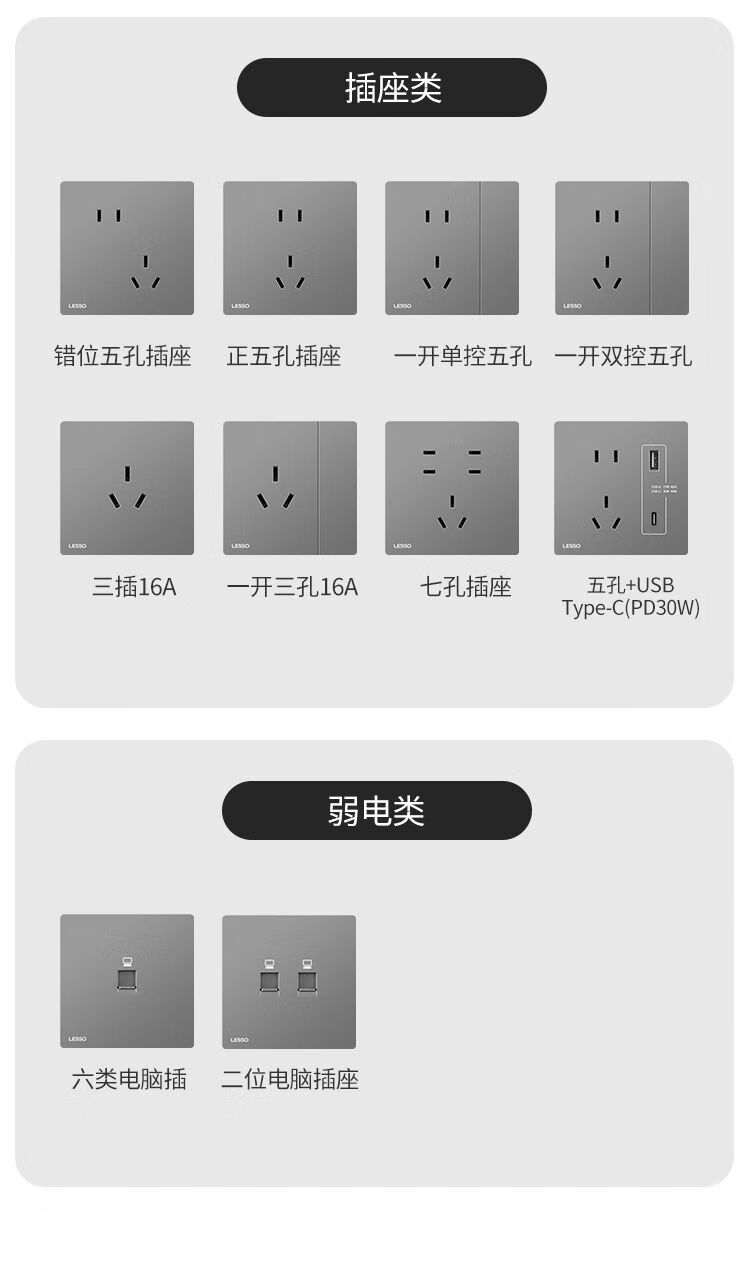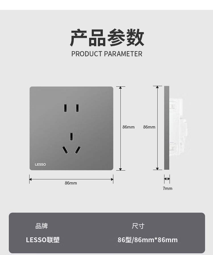 Liansu switch socket panel 86 type household power panel concealed air conditioner 16a one open five-hole gray ultra-thin upgraded L1 slim-five-hole socket