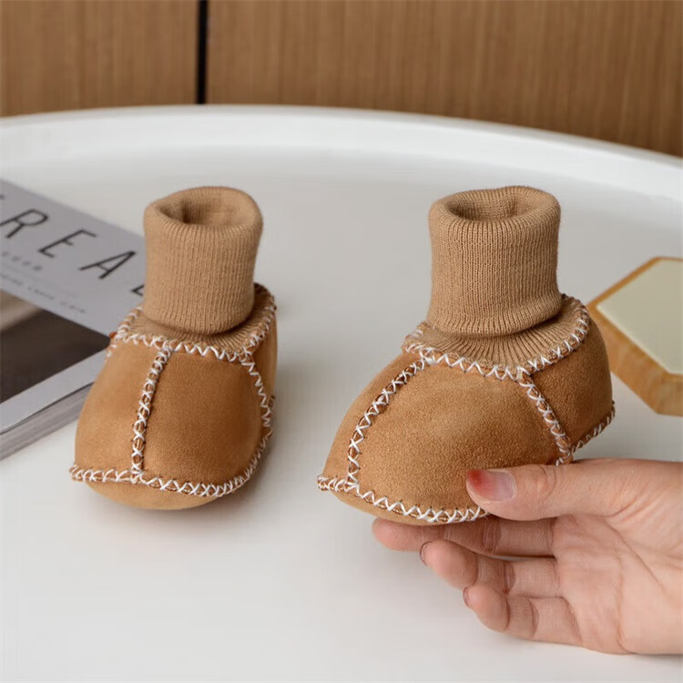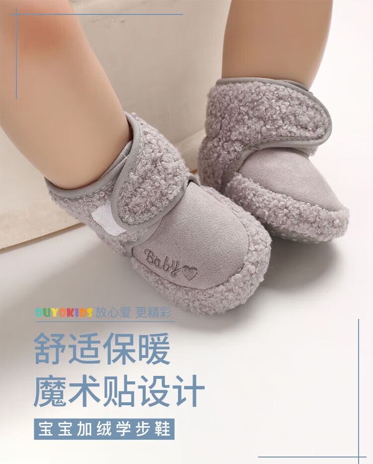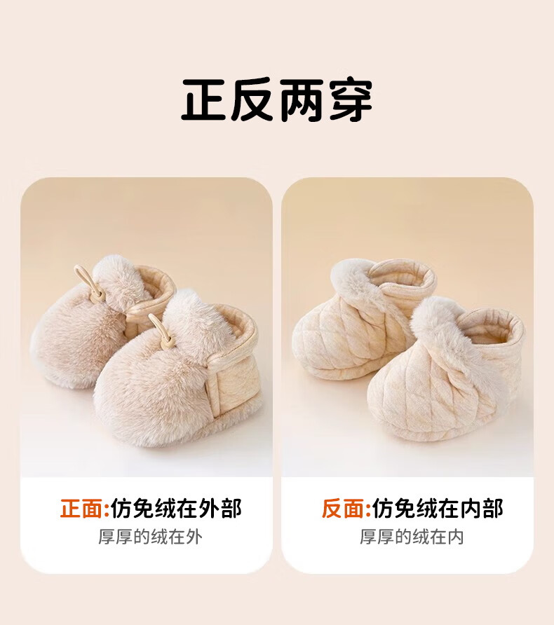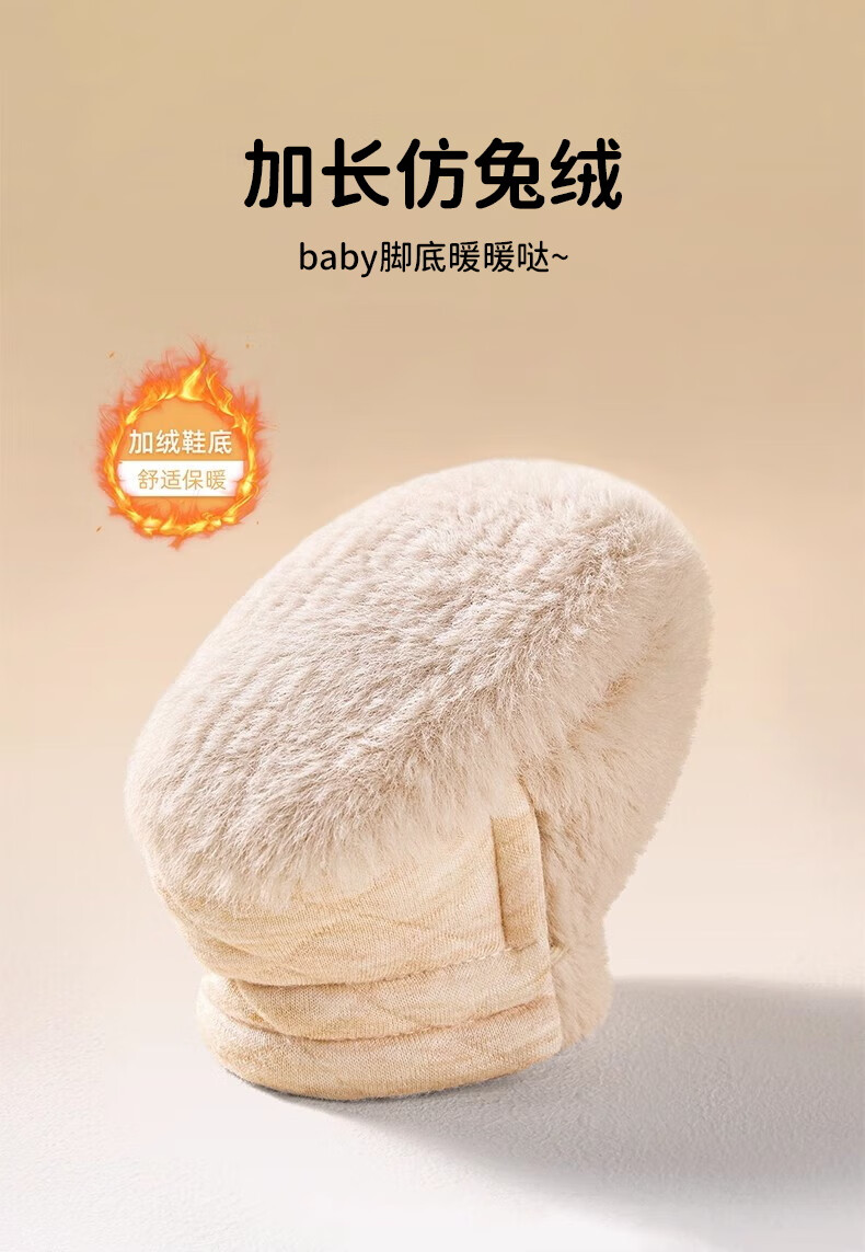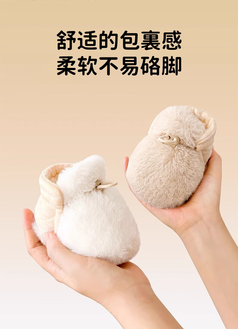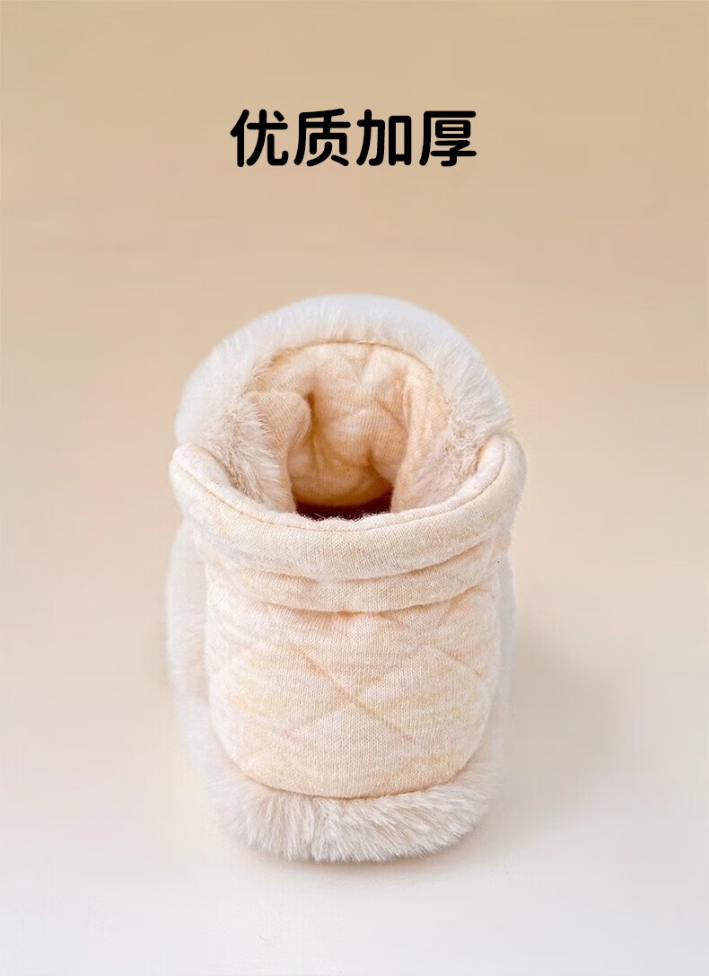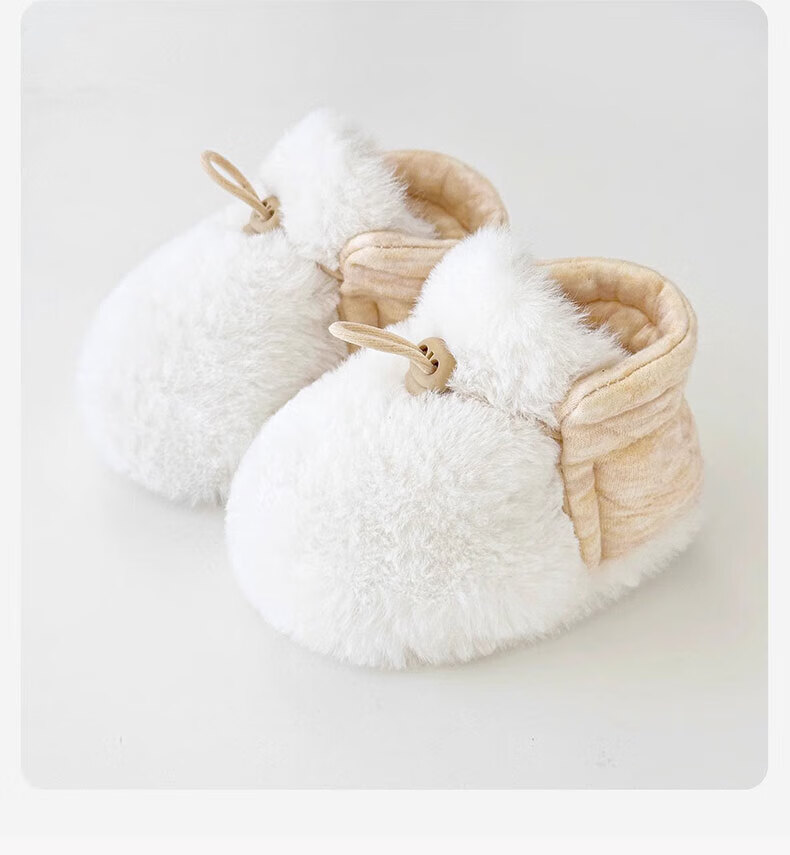 Ouyu newborn baby cotton shoes 0-6-12 months baby autumn and winter warm furry foot socks indoor and outdoor toddler shoes velvet thickened double-sided wearable (off-white stars) (inner length 12CM) 1 pair one size 12