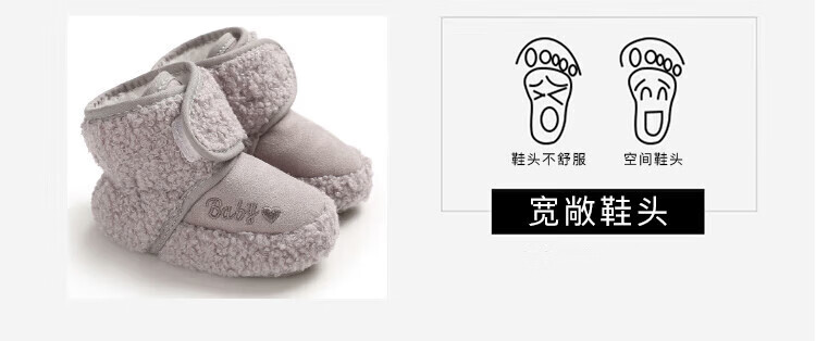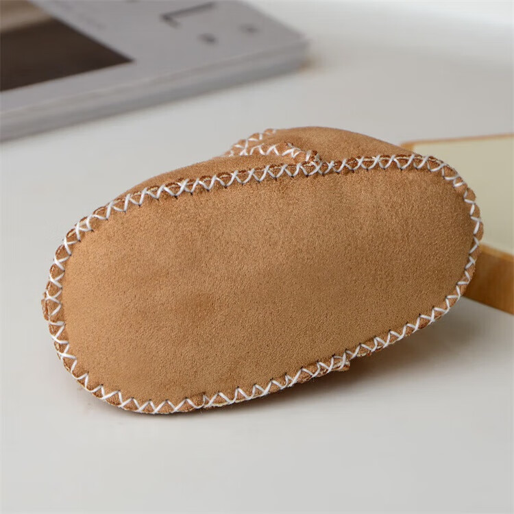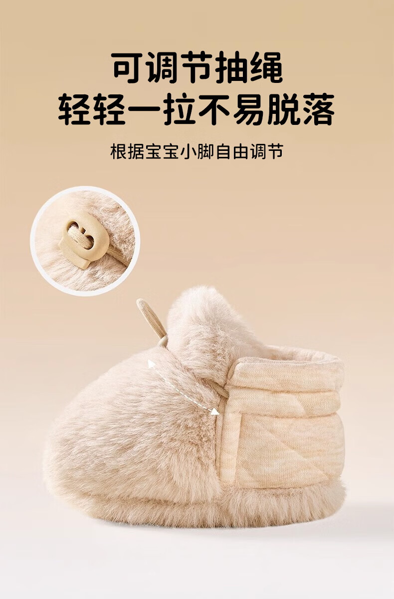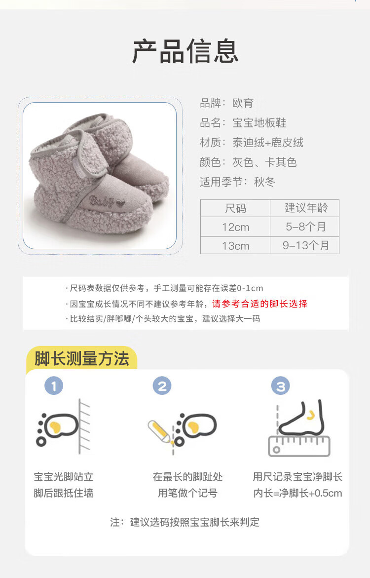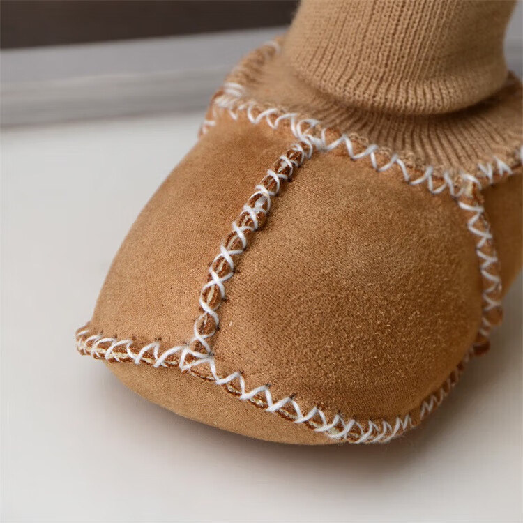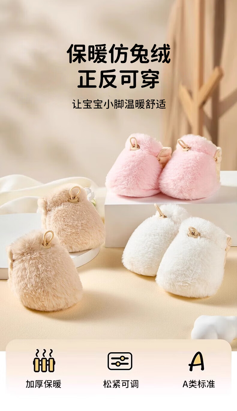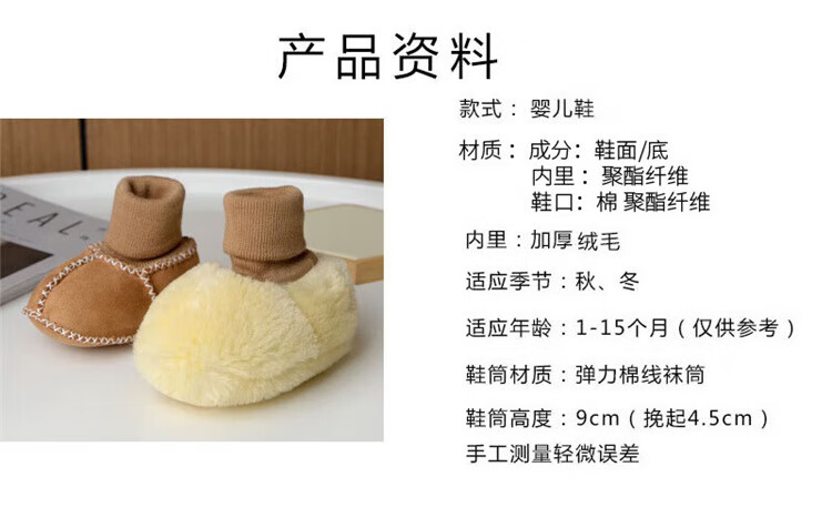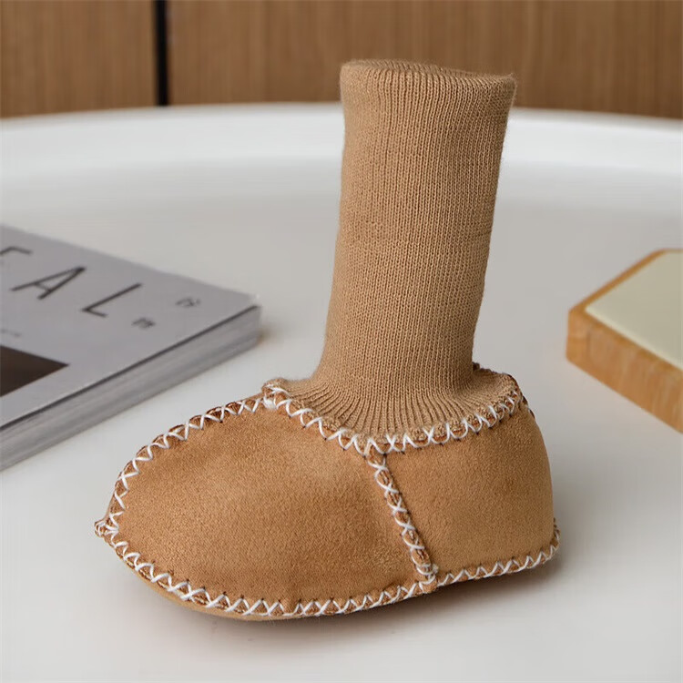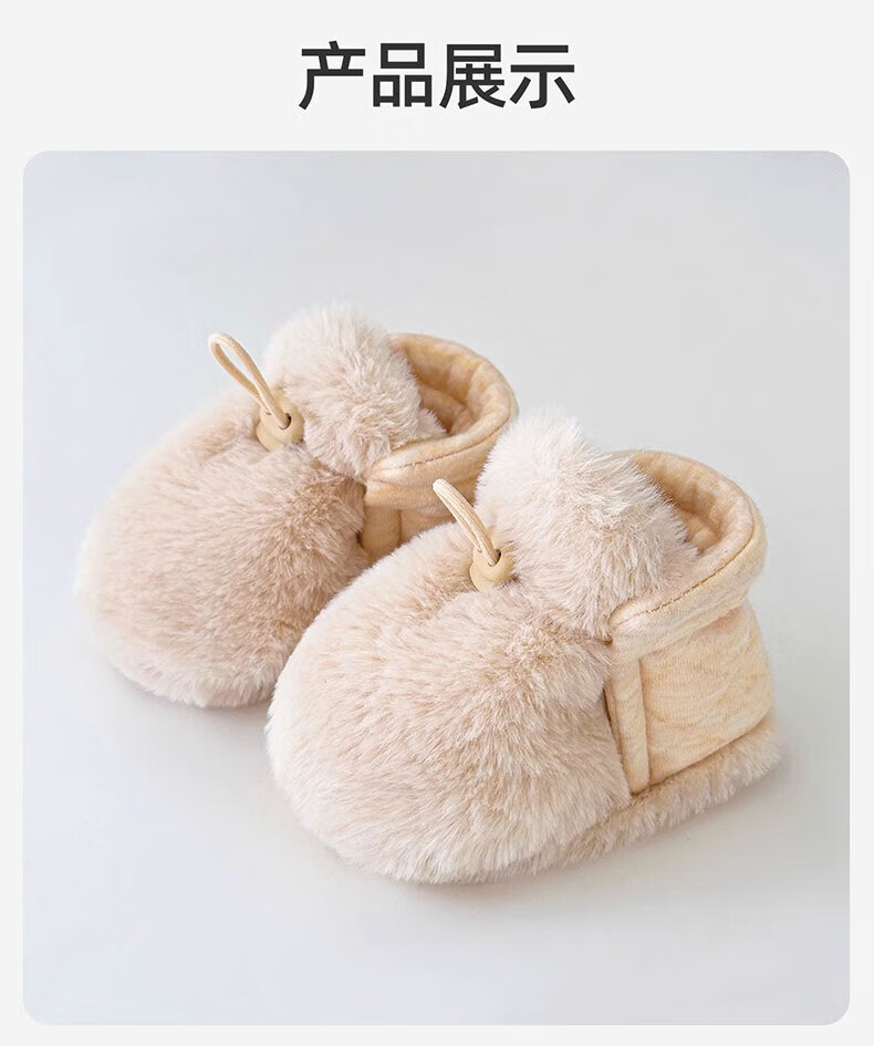 Ouyu newborn baby cotton shoes 0-6-12 months baby autumn and winter warm furry foot socks indoor and outdoor toddler shoes velvet thickened double-sided wearable (off-white stars) (inner length 12CM) 1 pair one size 12