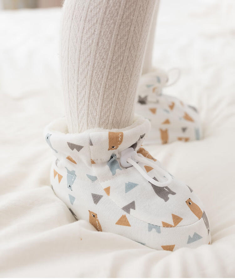 Ouyu Newborn Baby Cotton Shoes 0-1 Autumn and Winter Soft Soled Foot Covers Baby Toddler Shoes Thickened for 3-6-12 Months Cute Bear Lamb Velvet Inner Length 12CM, Recommended for 0-12 Months