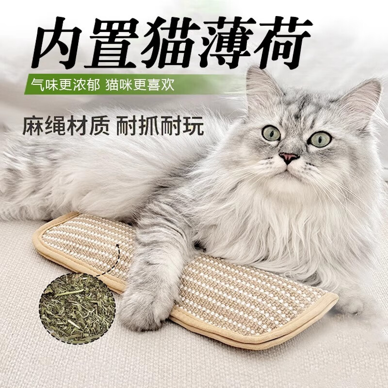 Qi Oh Cat Toy Cat Mint Pillow Self-Enjoyment Relieve Boredom Teeth Grinding Resistant Bite Cleaning Cat Scratching Board Energy-consuming Pet Supplies Small Cat Scratching Pillow Toy Contains Cat Mint
