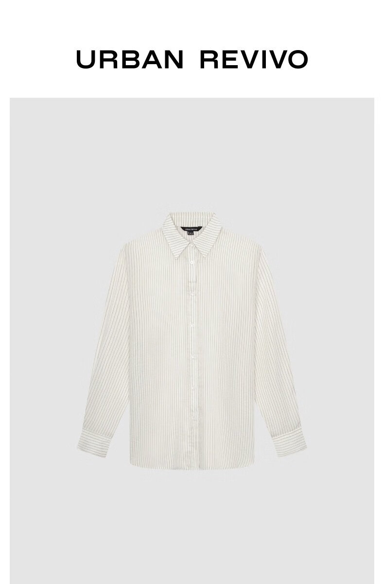 UR2026 Spring new women's temperament commuting lapel pinstripe cardigan shirt UWM250136 off-white stripes (loose) M