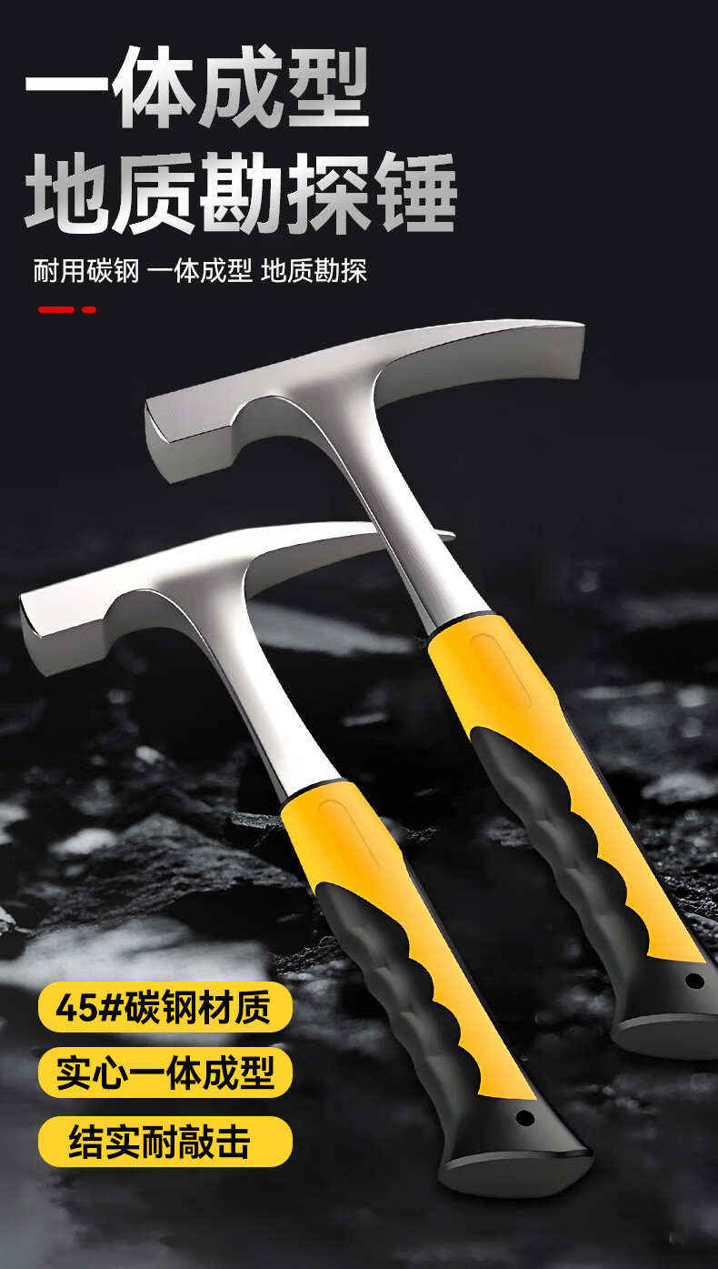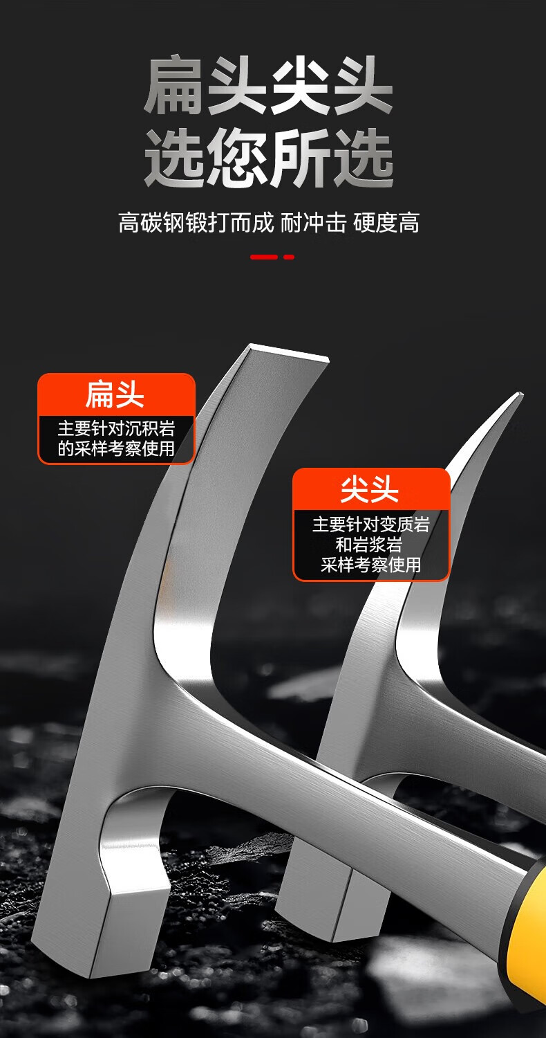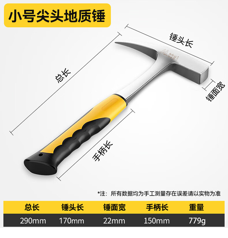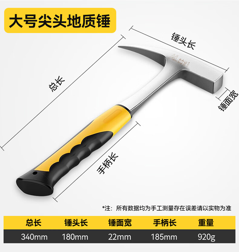 MYTEC geological hammer, professional geological exploration tool, multifunctional pointed flat head integrated hammer, mountaineering quarrying hammer, mining hammer, light pointed geological hammer, small size