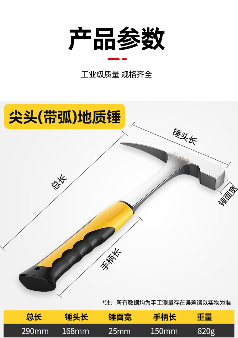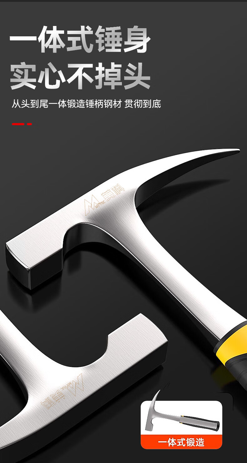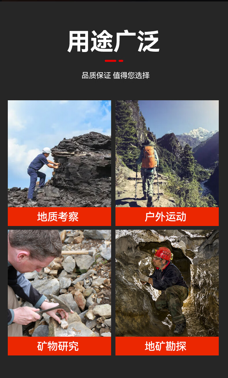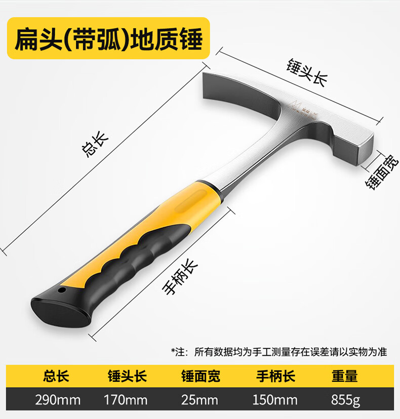 MYTEC geological hammer, professional geological exploration tool, multifunctional pointed flat head integrated hammer, mountaineering quarrying hammer, mining hammer, light pointed geological hammer, small size